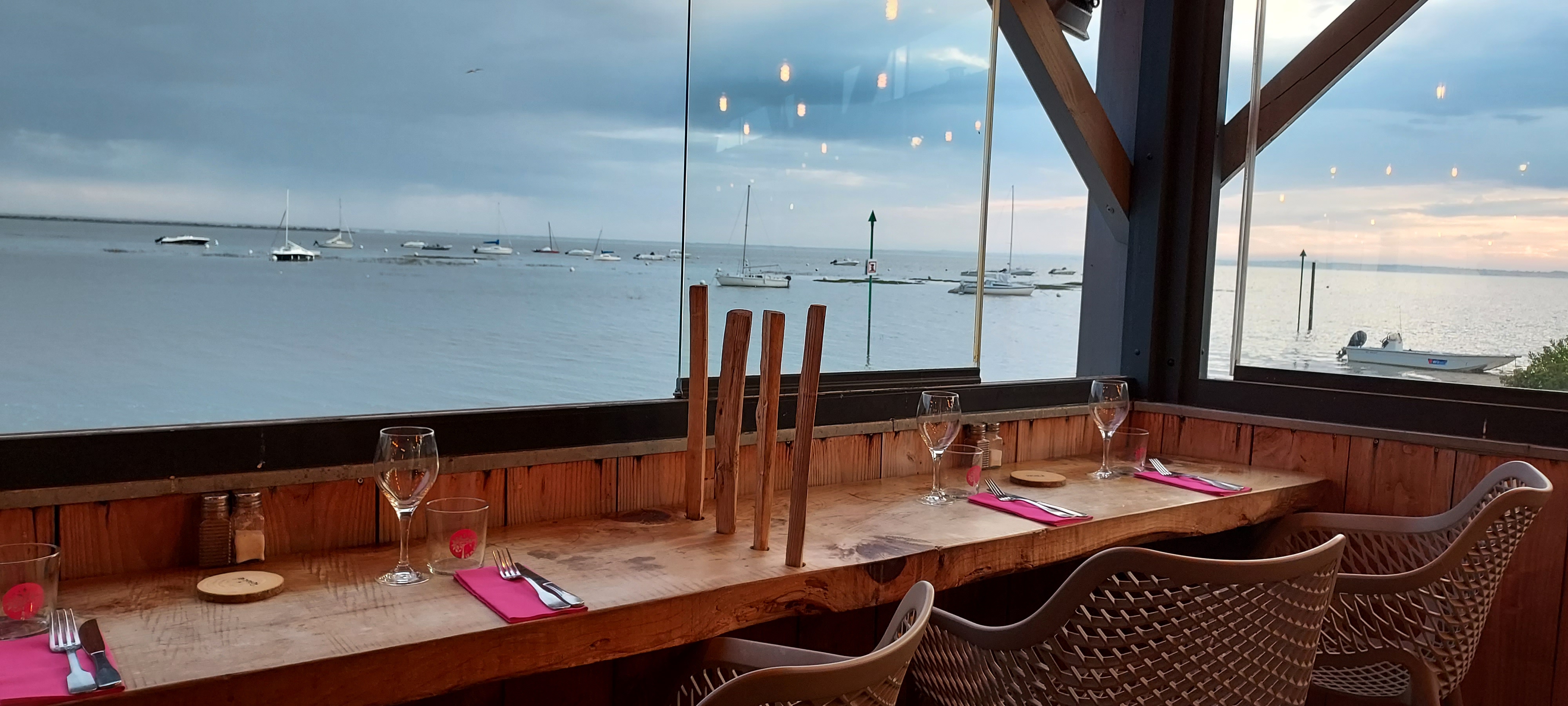 Cadre incroyable, magnifique. Vue sur le bassin. Service sympathique et ambiance conviviale et chaleureuse.