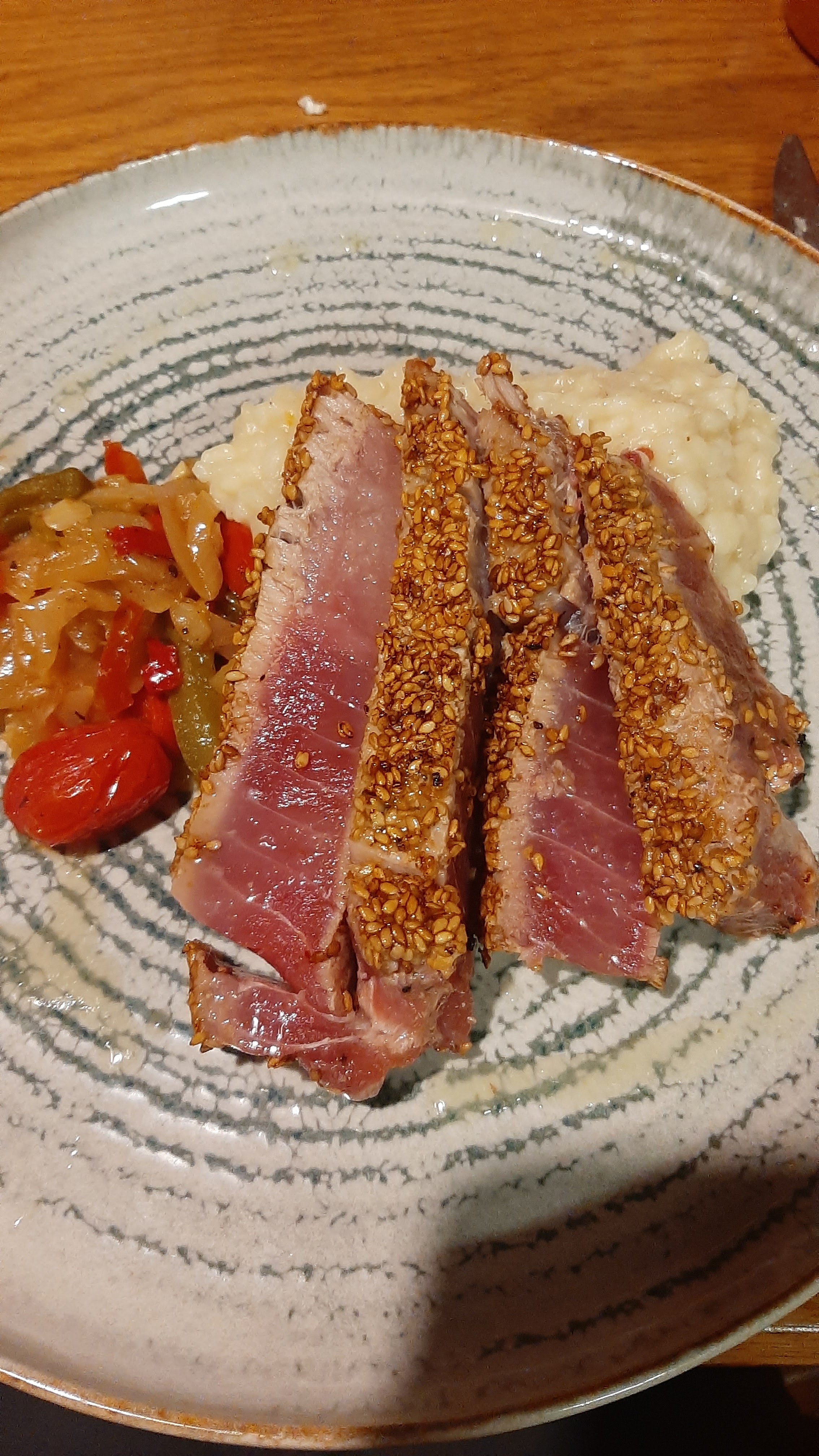 Nous avons été déçus par les plats commandés. Le carpaccio de saumon était fade, la chair baignait dans l'eau. Le tataki de thon manquait d'assaisonnement (une marinade aurait été appréciée par exemple) et n'était pas assez saisi sur les côtés. La cuisson saignante des filets mignons n'a de plus pas été respectée et les pommes de terre étaient limite tièdes. Enfin, c'est dommage de servir des tomates insipides au mois de mars. Néanmoins le service était rapide et la serveuse agréable.