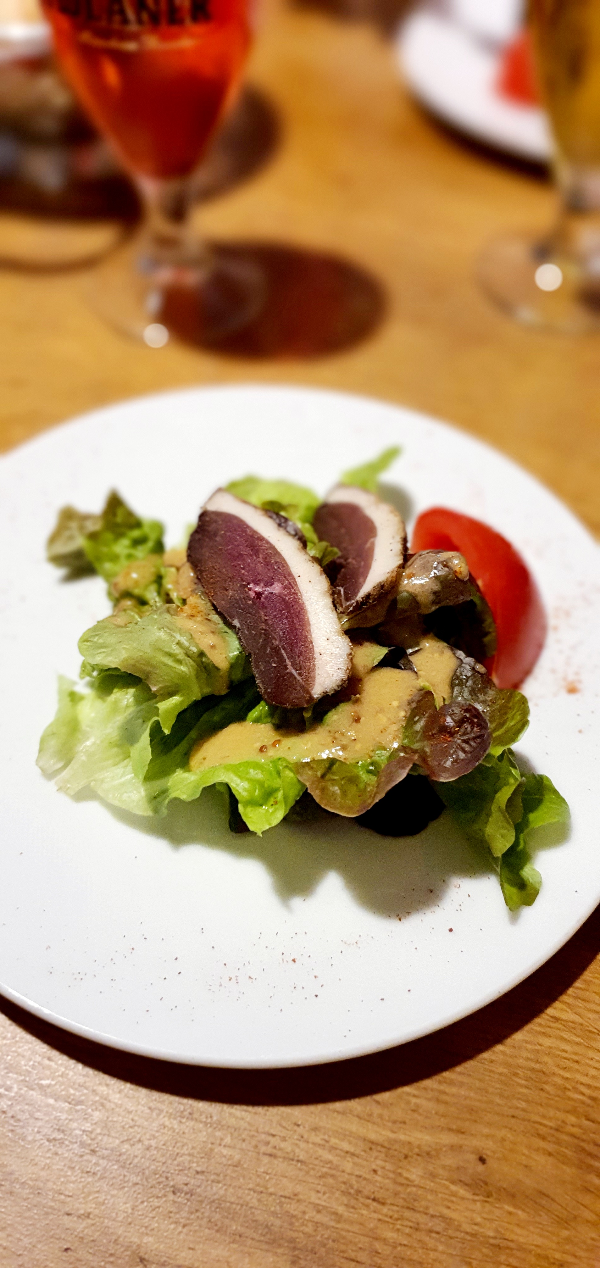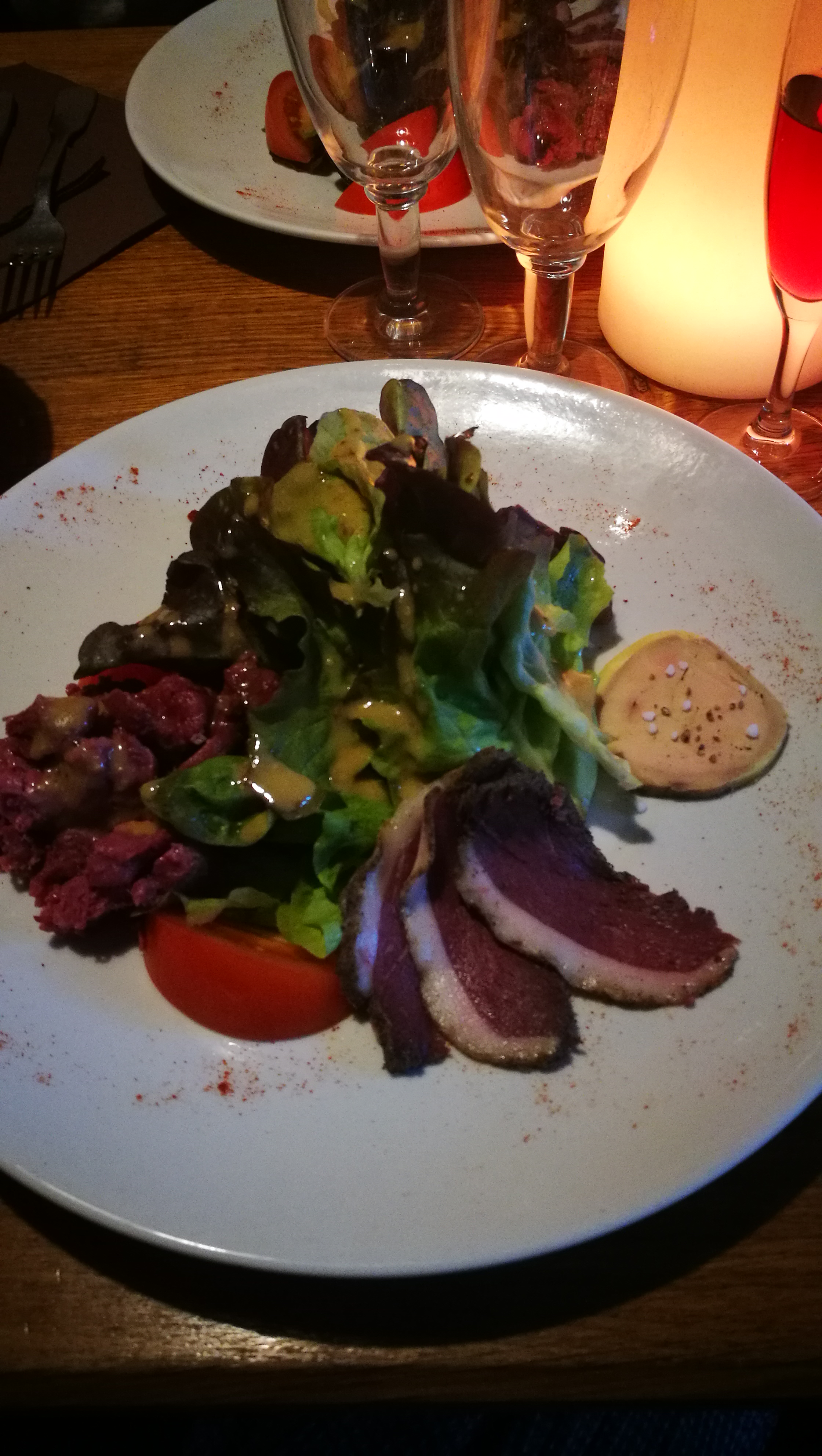 Je suis déçu. C'est la 3iem fois que je vient mangé ici et les fois d'avant se sont très bien passé mais j'ai était déçu de mon expérience d'aujourd'hui. Le camembert rôti était très bon mais l'assaisonnement de la salade était trop amère. Le magret en croûte sauce miel était ridiculement petit. J'avais limite plus de pomme de terre que de viande. J'avait précisément dit que je voulais la viande saignante, je l'ai eu à point. Le tataki de thon était coupé trop grossièrement et était beaucoup trop salé. Point positif le personnel et très professionnel et agréable. Je conseil quand même, je pense qu'il y avait beaucoup de monde et ce n'est que la première fois que cela arrive les autres fois c'était très bien passé.