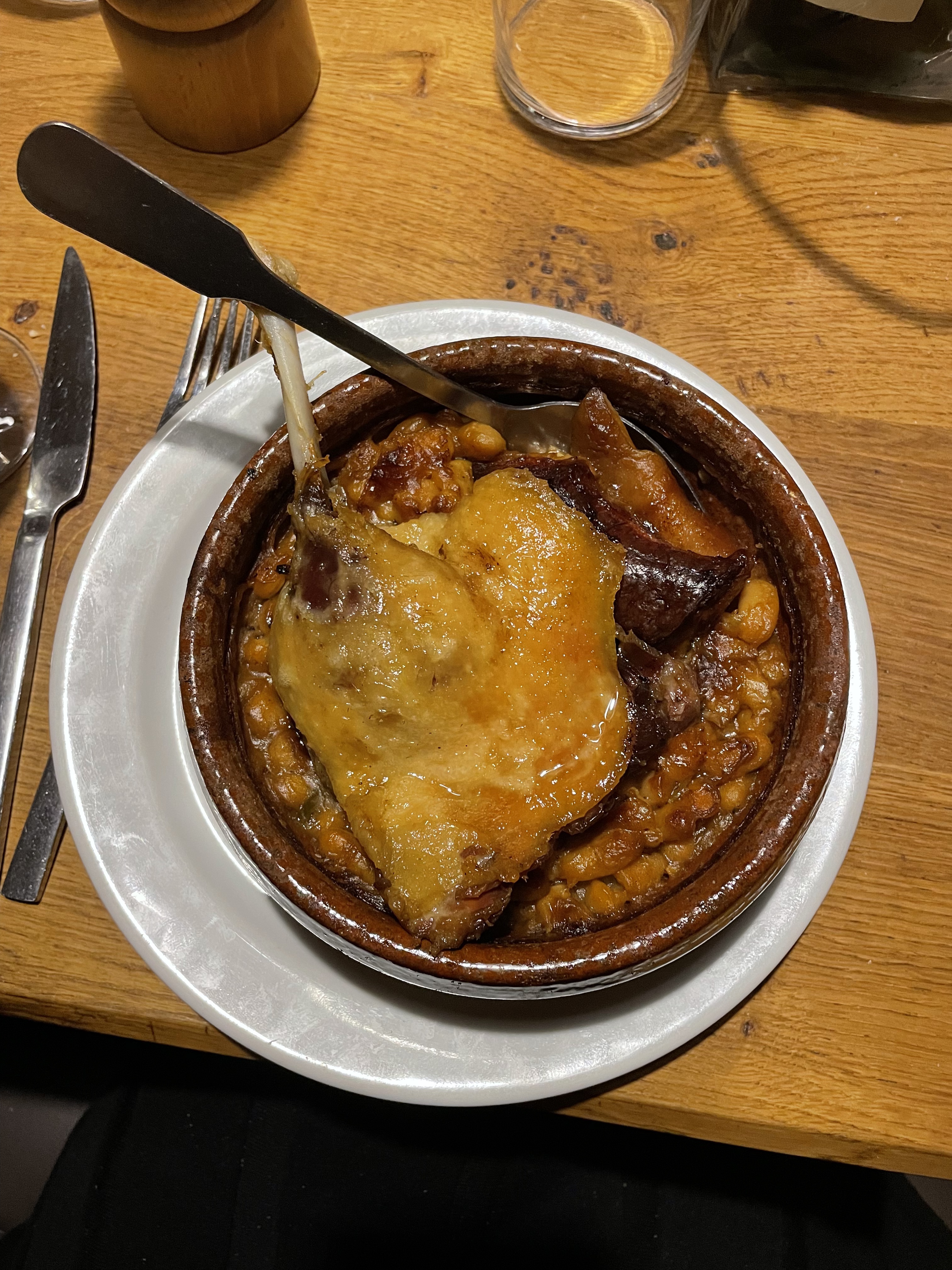Probablement le meilleur cassoulet que j’ai jamais mangé de ma vie. La saucisse de Toulouse était savoureuse et le canard confit s'est effondré.