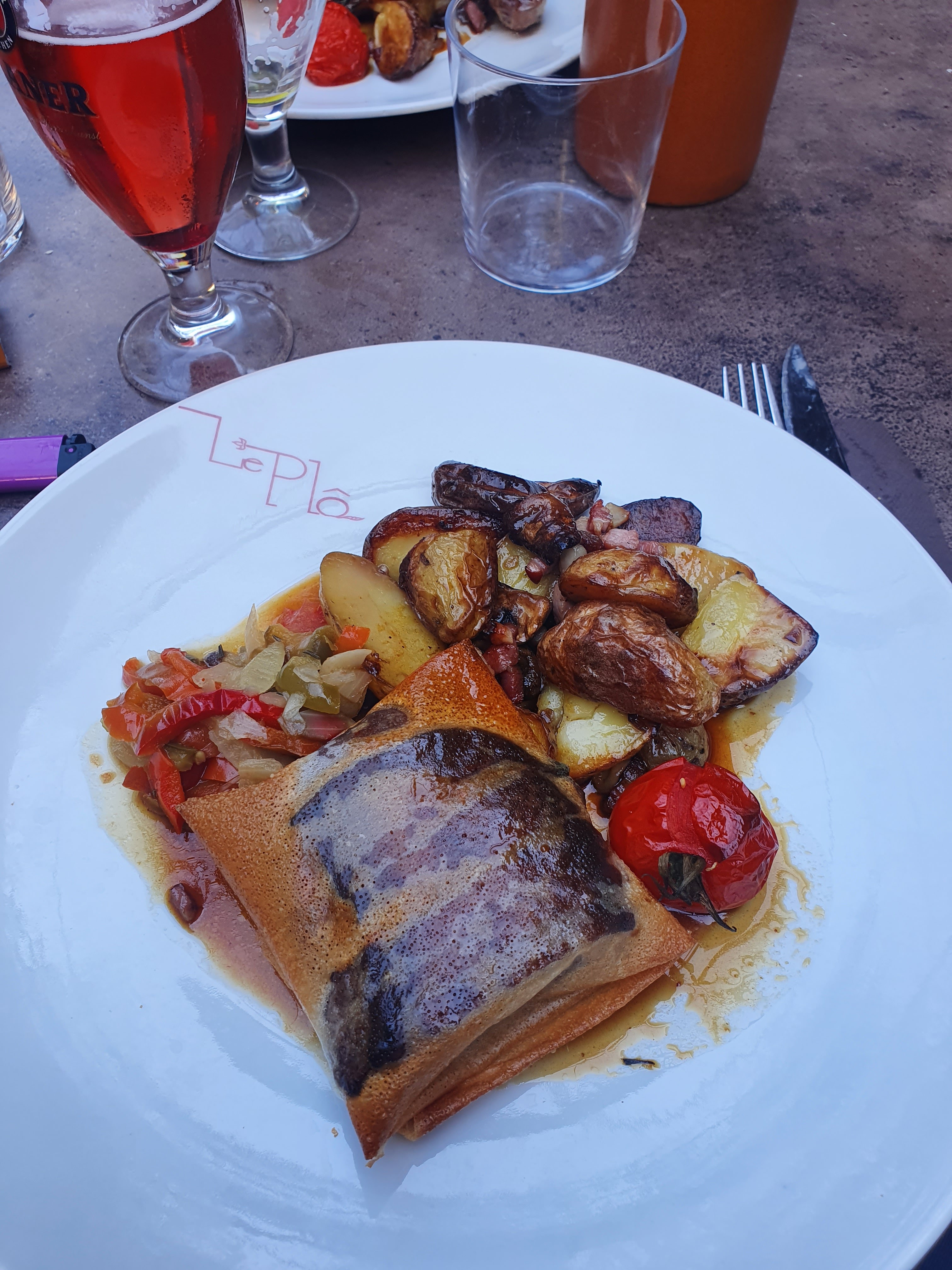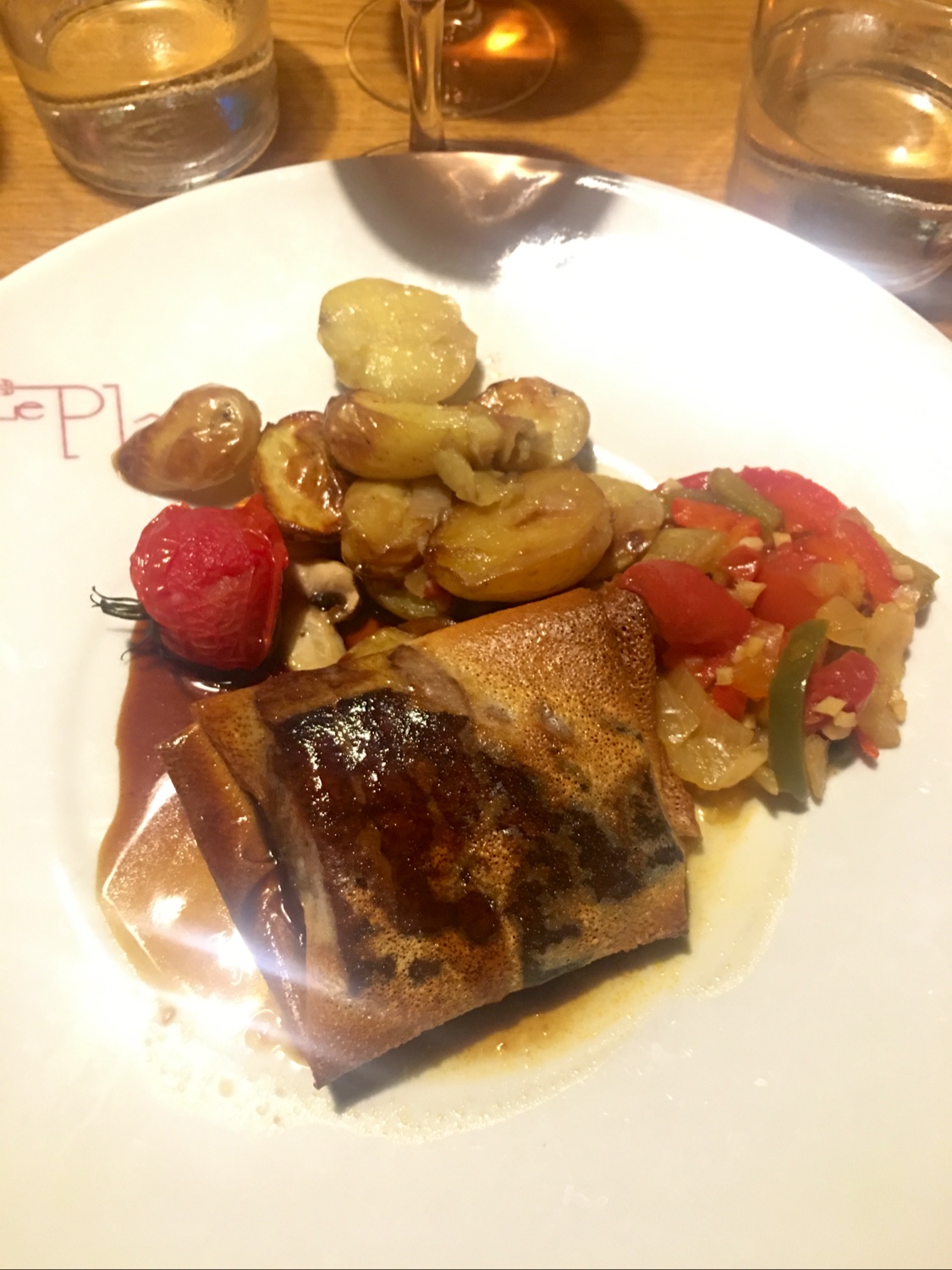 Super adresse dans la Cité fortifiée de Carcassonne, menu à 27 euros avec entrée plat dessert le soir, je vous recommande le croquant de canard (magret de canard roulé dans une feuille de brick) et sauce au miel, portions généreuses, cuisson parfaitement respectée. Le restaurant ne prend pas de réservation, pour le soir, je vous conseille de vous y rendre vers 19h/19h30, cela vous permettra de coiffer au poteau les Espagnols et d'avoir une table 😄