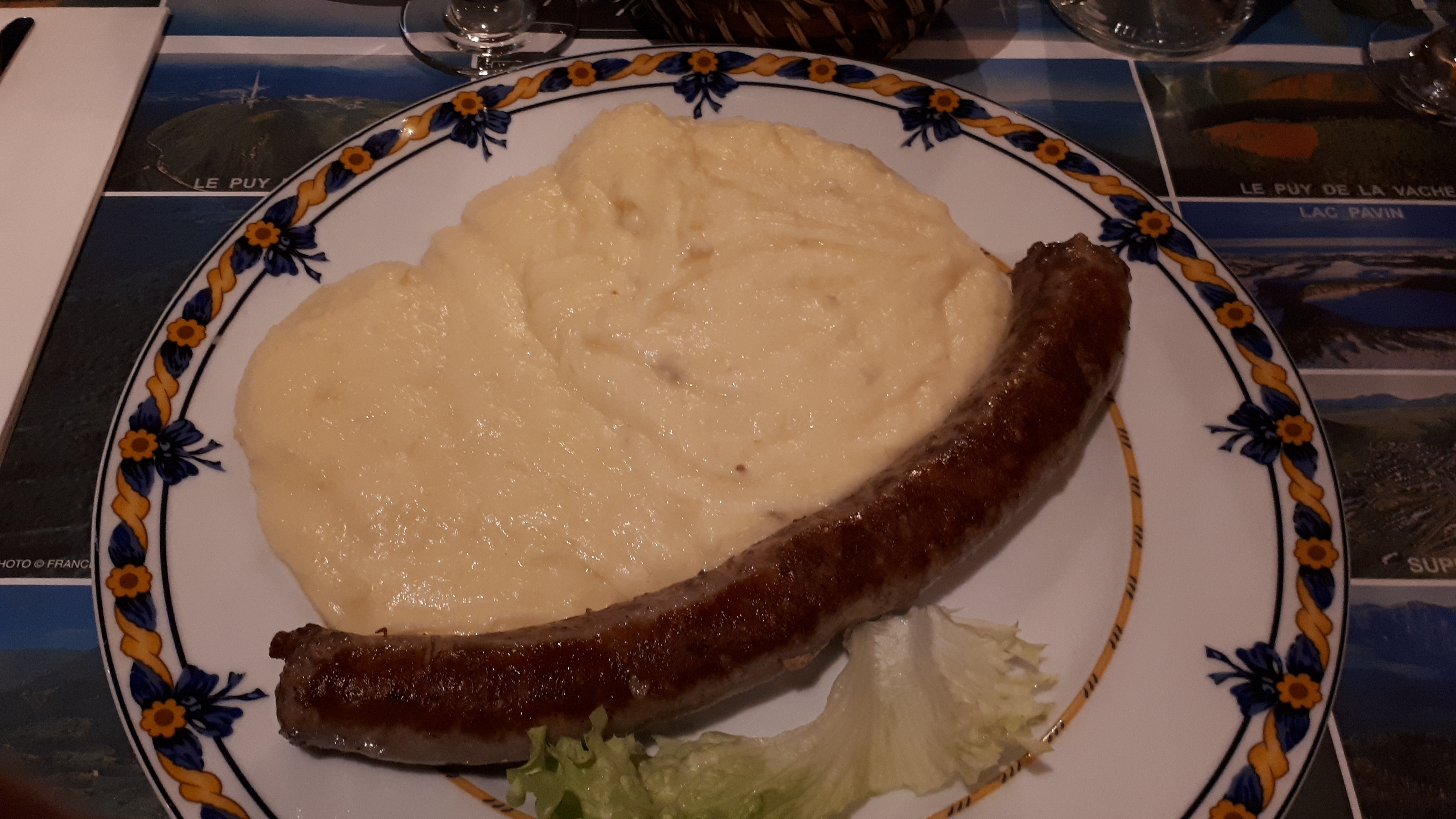 Un restaurant avec une ambiance boisé, très chaleureux pour y manger des produits bien auvergnats ! Truffade ou Aligot chacun son camp mais les deux sont bons servis avec une bonnes viandes : magret de canard, ou saucisse sur la photo. Et la qualité est au rendez-vous ! Deux plats parfaits pour ce réchauffer avec un dessert du siècle composée d’une tarte aux pommes et crème brûlée en un qui est parfait pour finir !