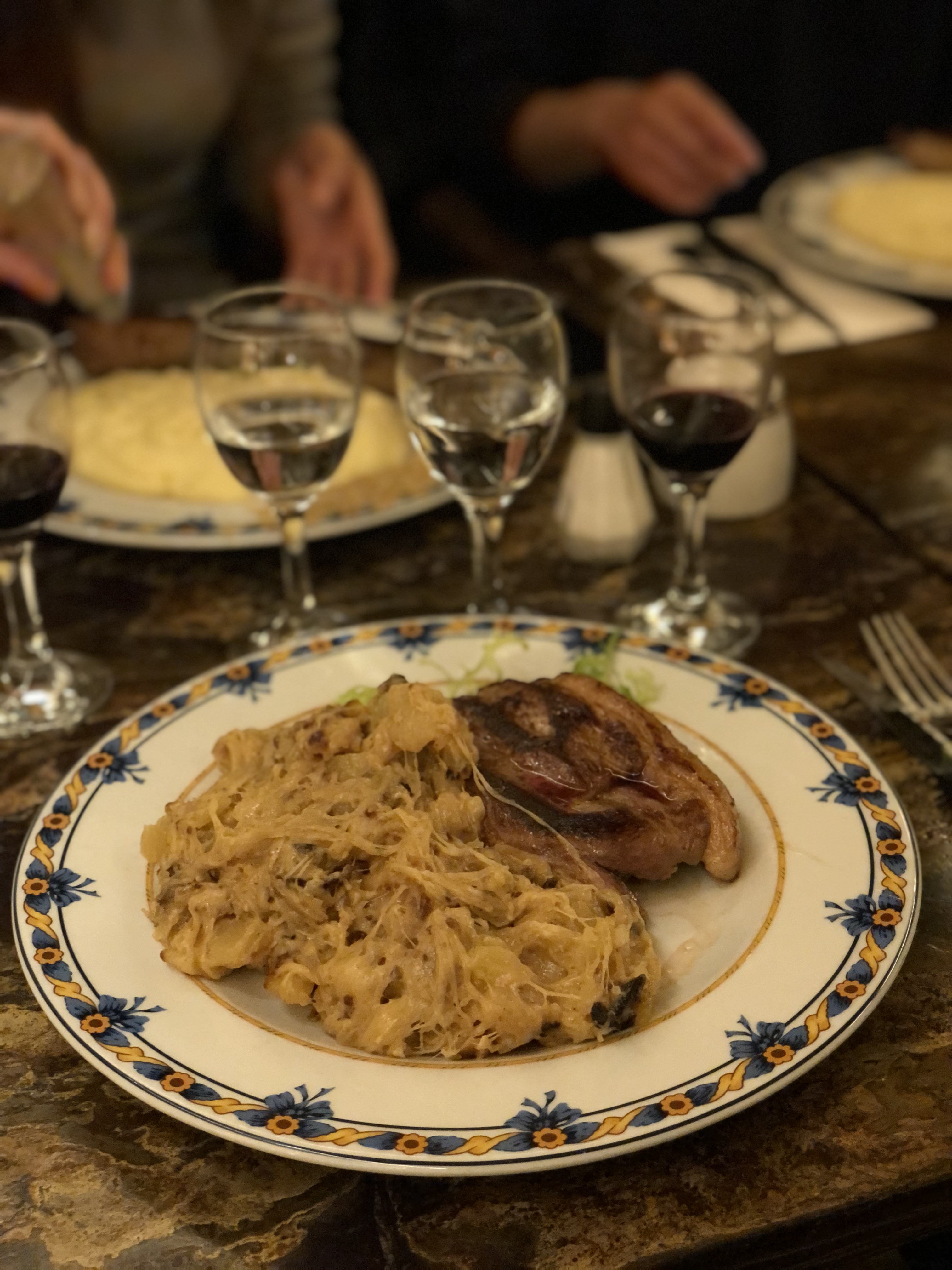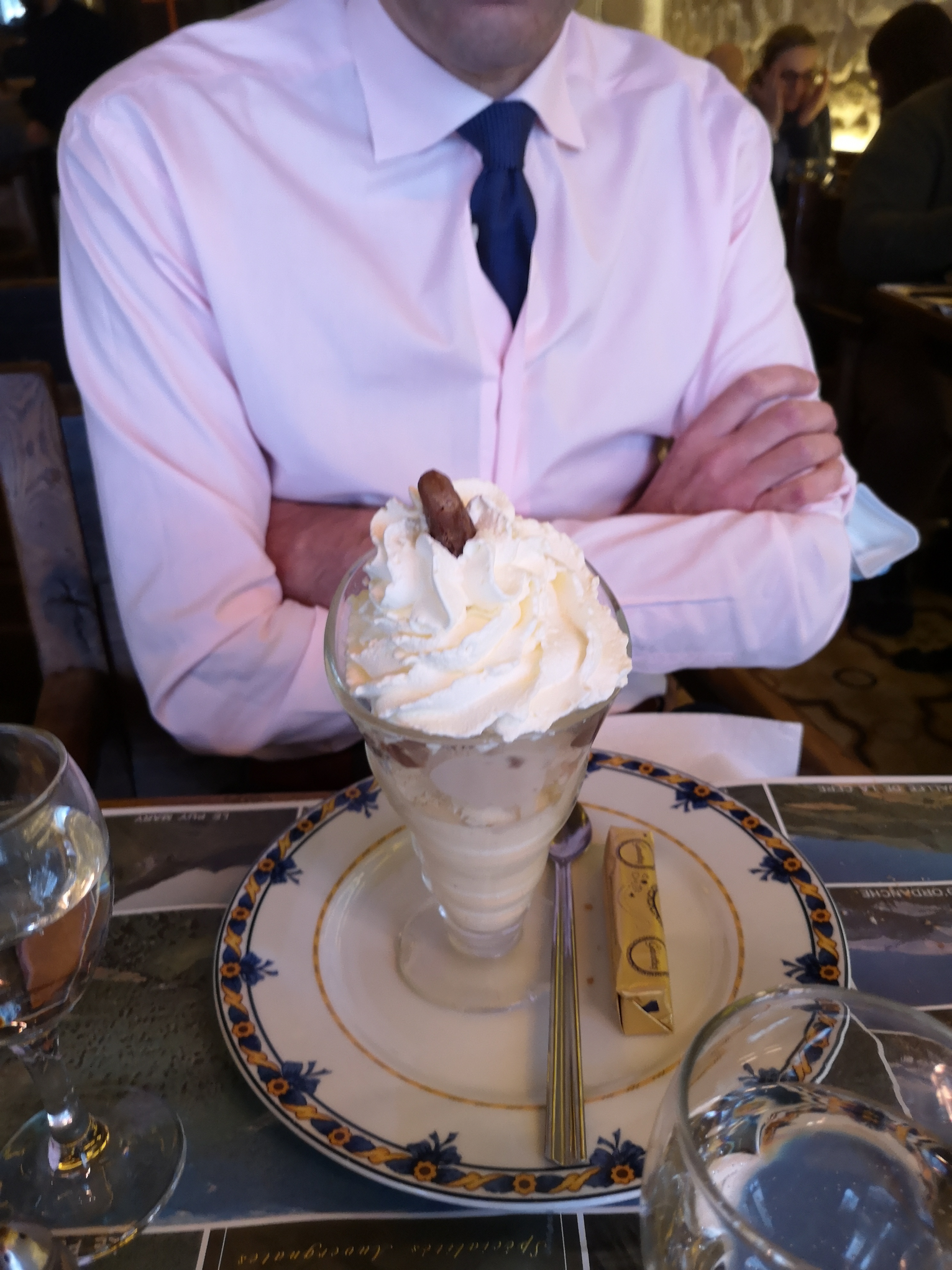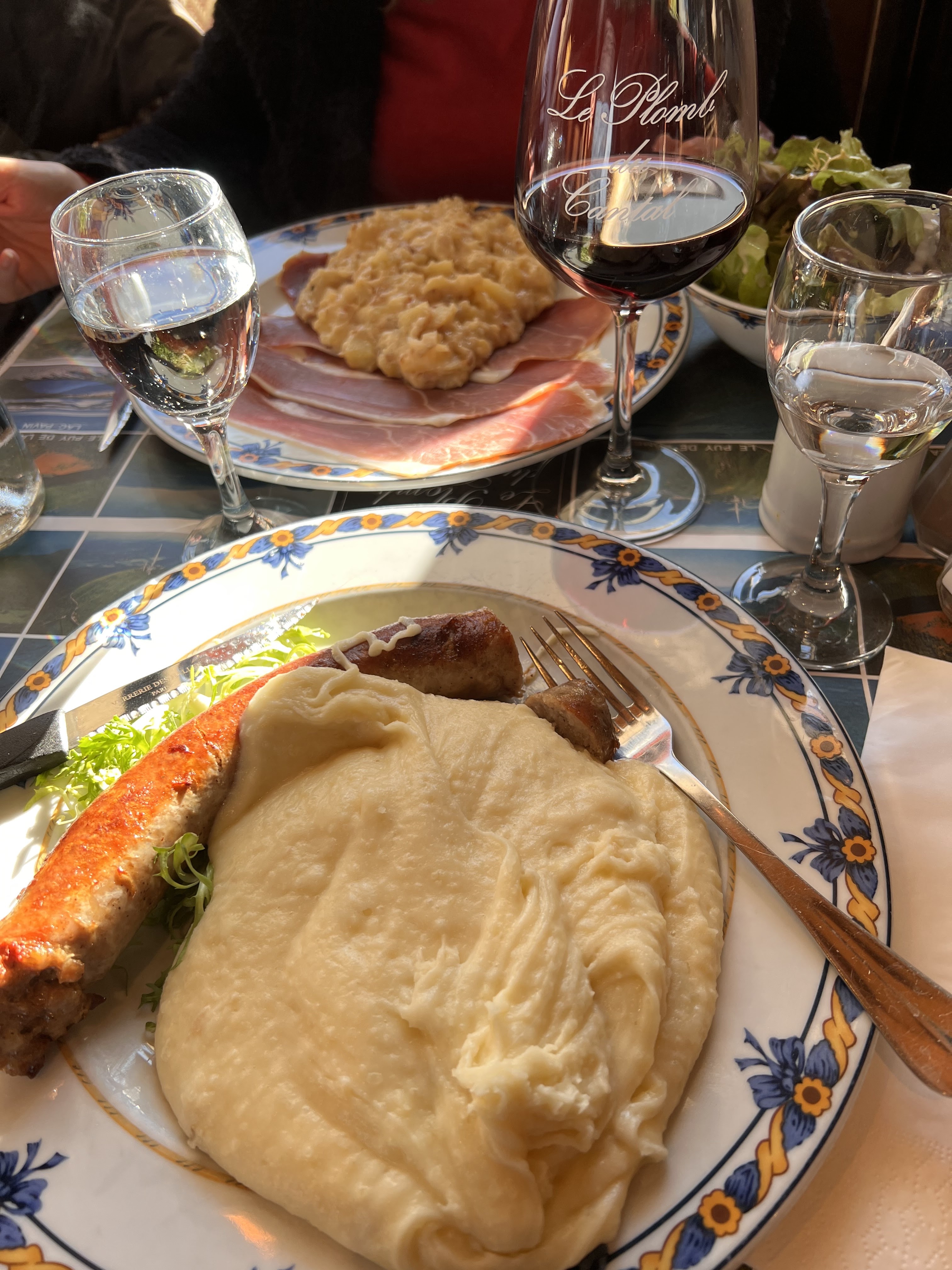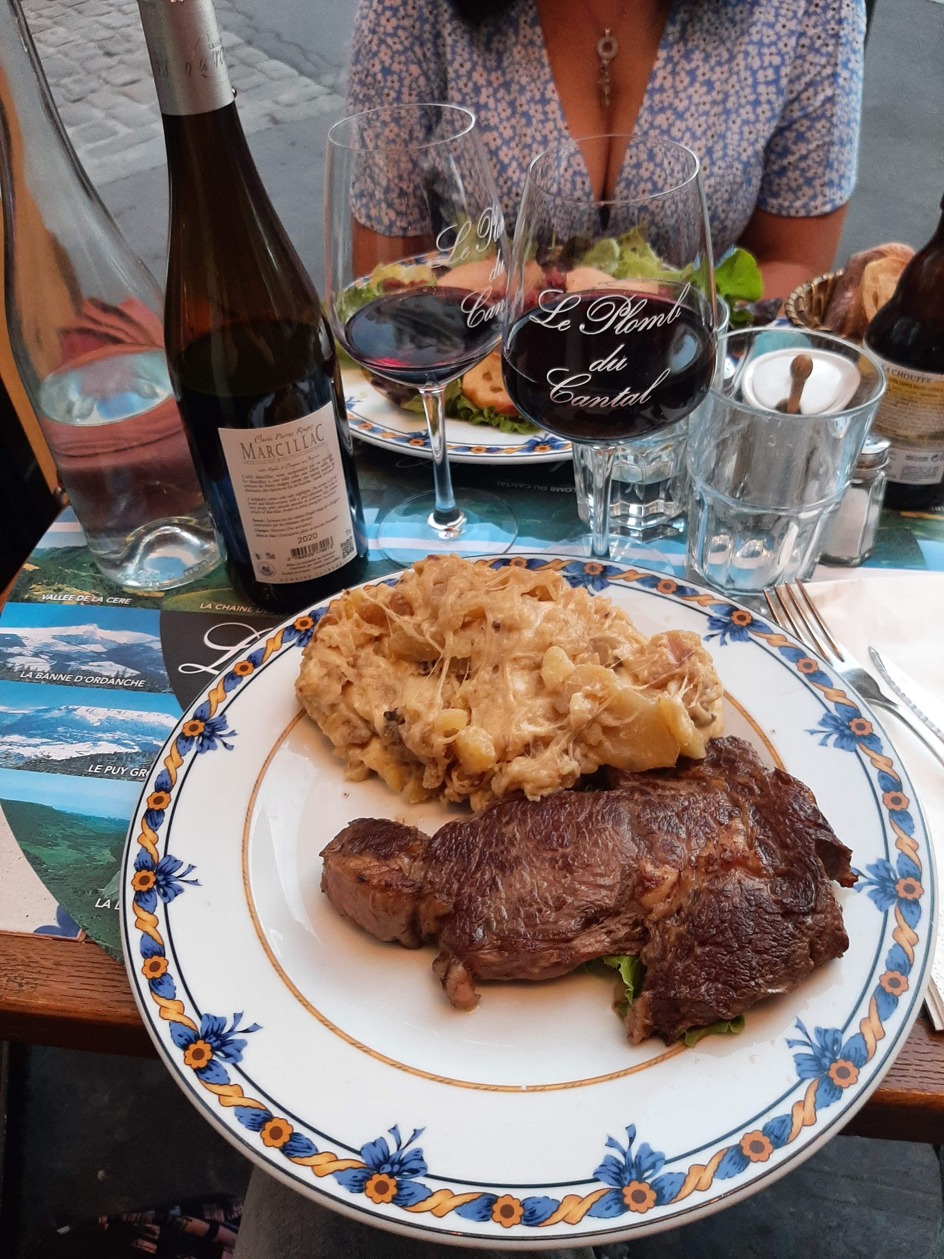 Bien au chaud sous le radiateur de terrasse, nous nous sommes tranquillement « explosé le bide » avec les spécialités auvergnates. Les serveurs sont impeccablement odieux et n’hésiteront pas à vous juger si vous prenez de la suze. Sans rire, ils sont très sympathiques et nous avons bien rigolé avec eux ! Les plats étaient très copieux et savoureux. Attention quand même, si vous cherchez un endroit pour un date, la quantité d’ail dans la truffade ne jouera pas du tout en votre faveur par la suite.