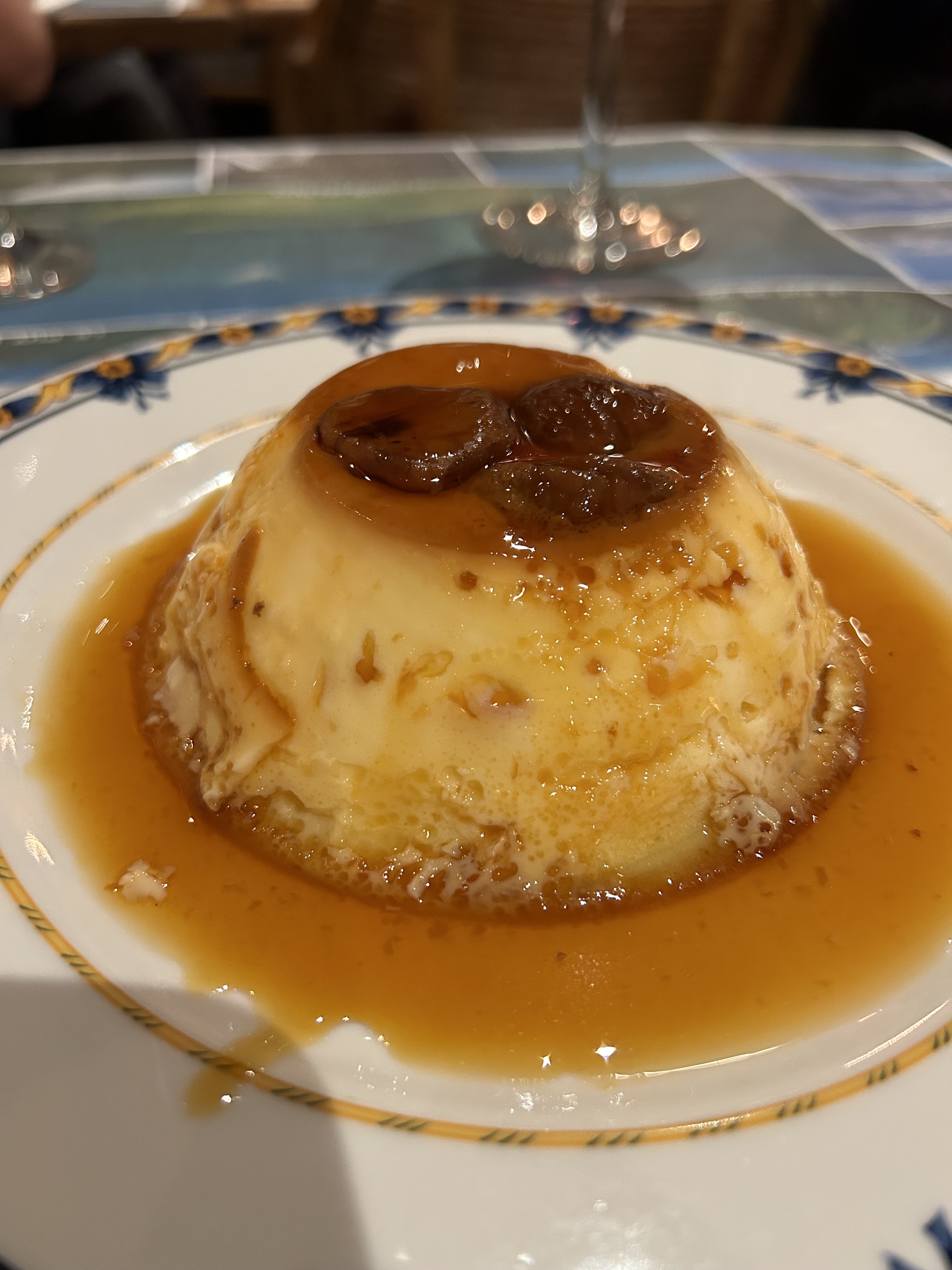 A force de passer devant ce restaurant, je me suis laissé tenté. J’ai été installé sur une table haute sur le trottoir, avec une vue sympa sur le trottoir. J’ai commandé un confit de canard avec des frites maison (21,50€) et un flan aux châtaignes (6,80€). Le confit est très bon. Les frites sont servies sans sel, ce qui est une très bonne idée, car elles sont très bonnes en l’état. Le flan est pas trop sucré, ce qui le rend succulent. Par contre les châtaignes incrustées dedans sont inutiles. Le serveur est très sympa. Au final j’ai très bien mangé. J’espère avoir l’occasion d’y retourner.