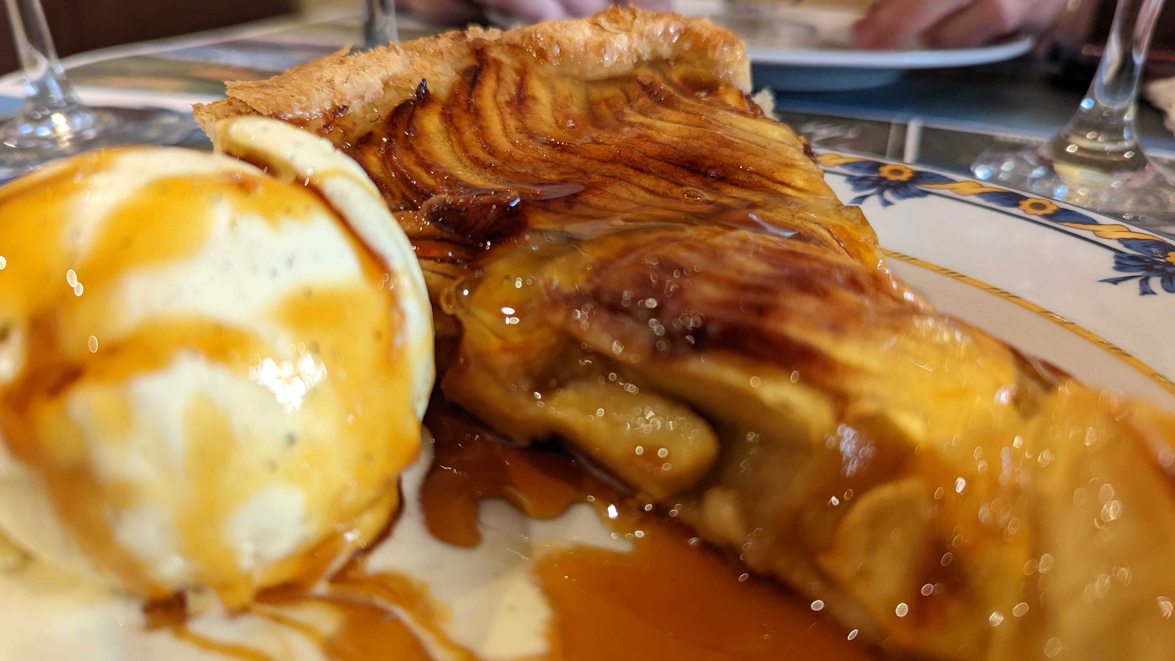 Très bon accueil, on est allé boire un verre et jecme suis laissée tenter par une tarte pomme boule vanille et chocolat chaud par gourmandise. Juste gigantesque😱 la tarte et très bonne. J'y retournerai pour dîner.😋