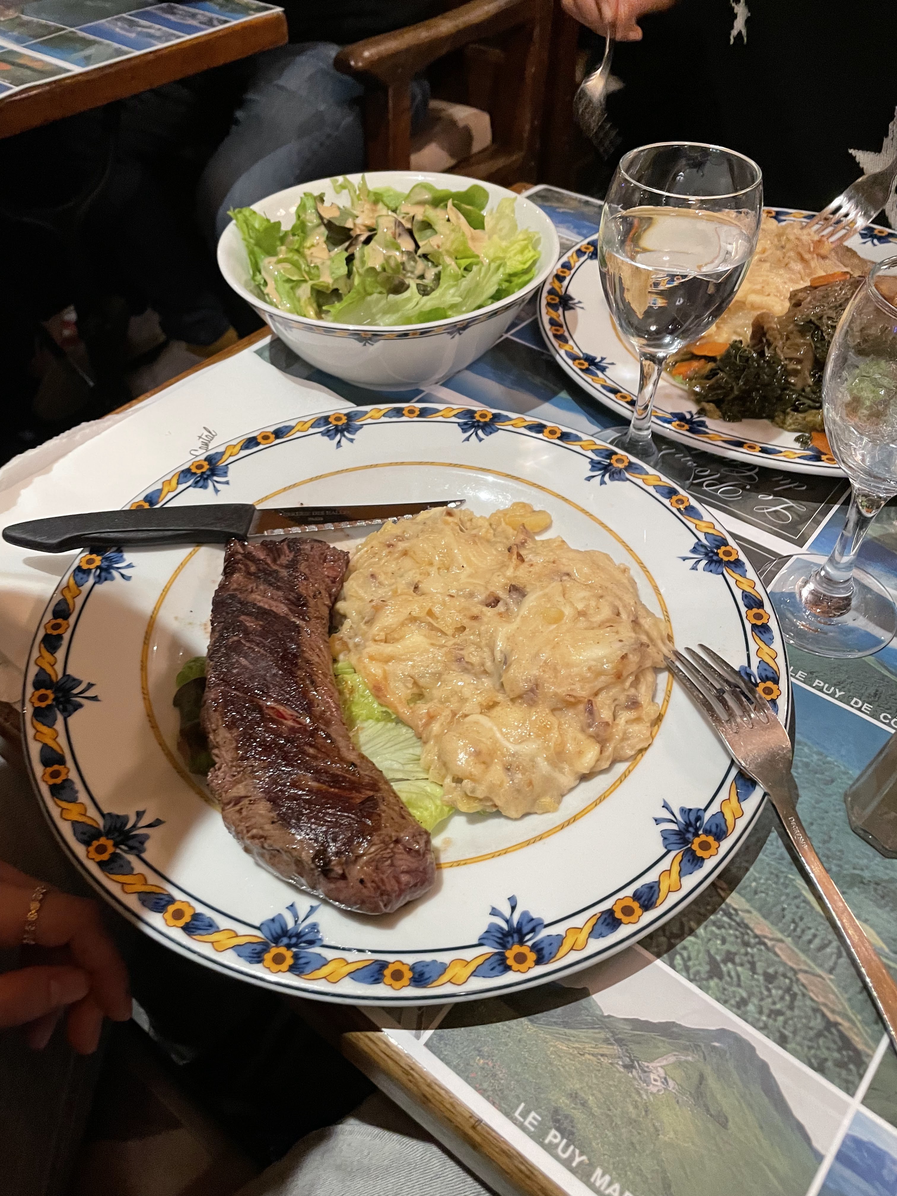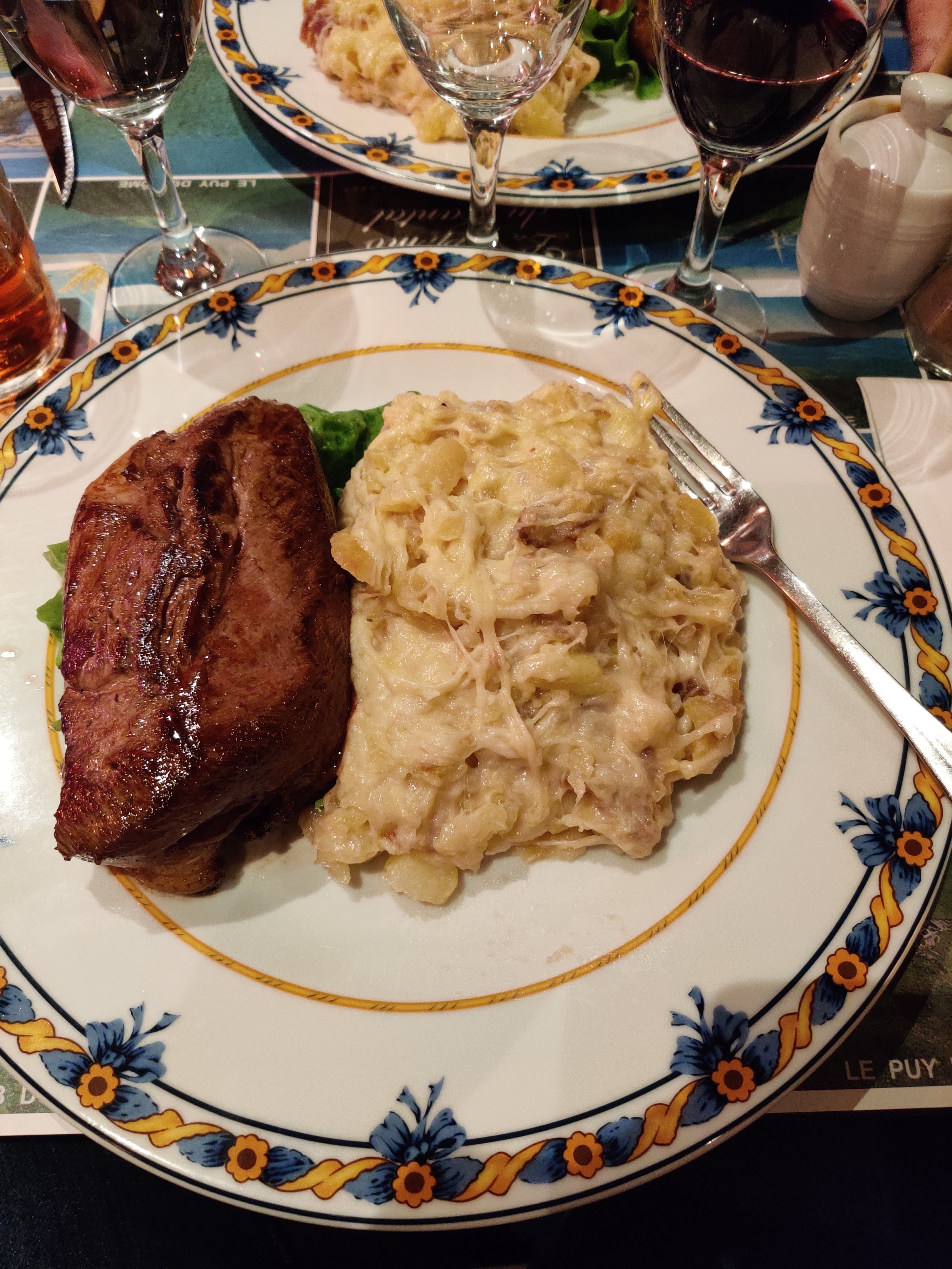 Les classiques auvergnats, plats copieux. Par contre c’est assez optimisé côté disposition des tables et du coup plutôt serré le soir.