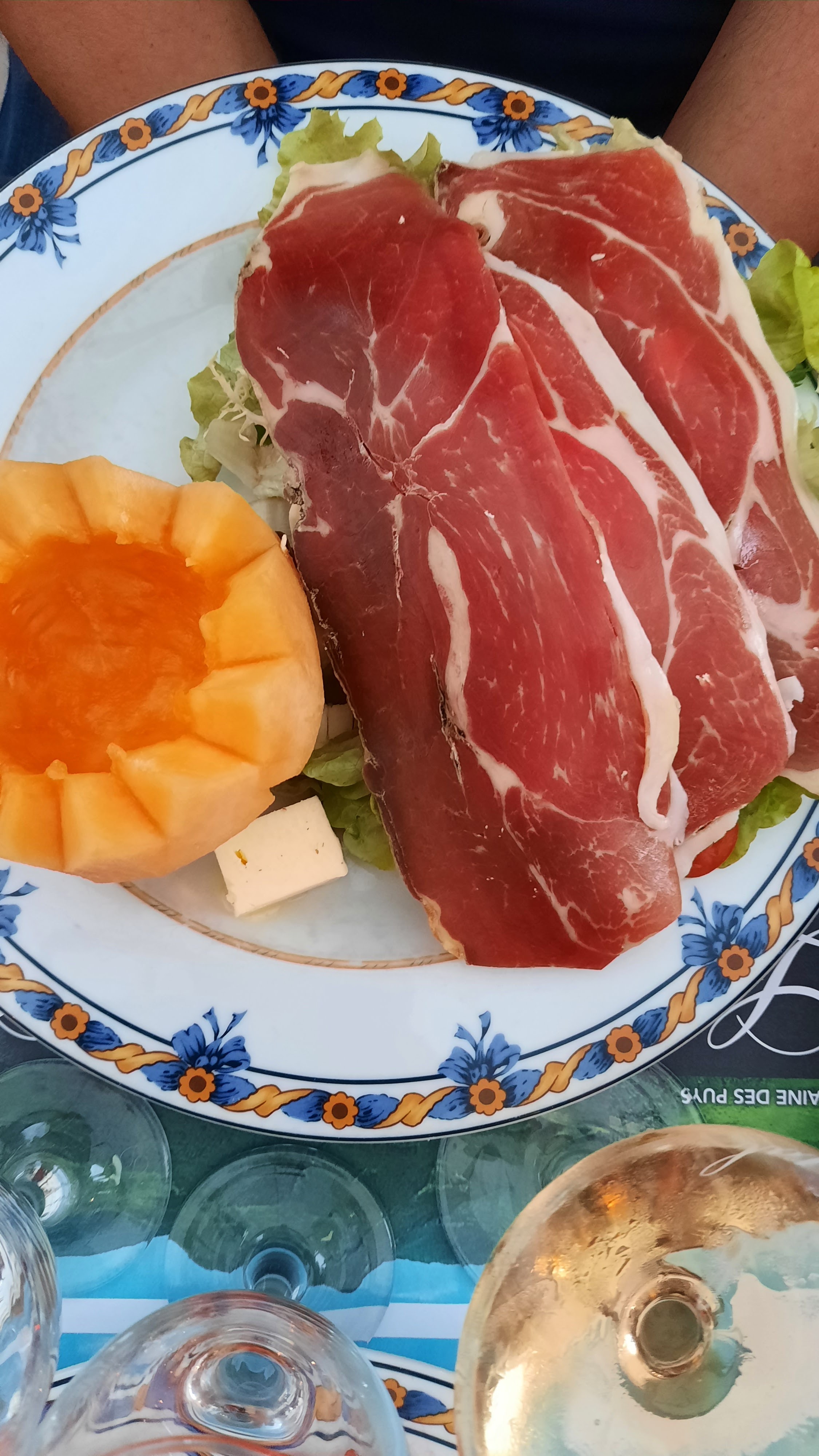 j’avoue il faisait trop chaud pour l’aligot ou la truffade mais cette salade est magnifique (salade fraîcheur avec cantal tomates melon fraises et framboises) Super personnel gentil la déco correspond il manque les puys en vrai mais faut pas trop en demander Je recommande les yeux fermés et j’ai hâte de revenir