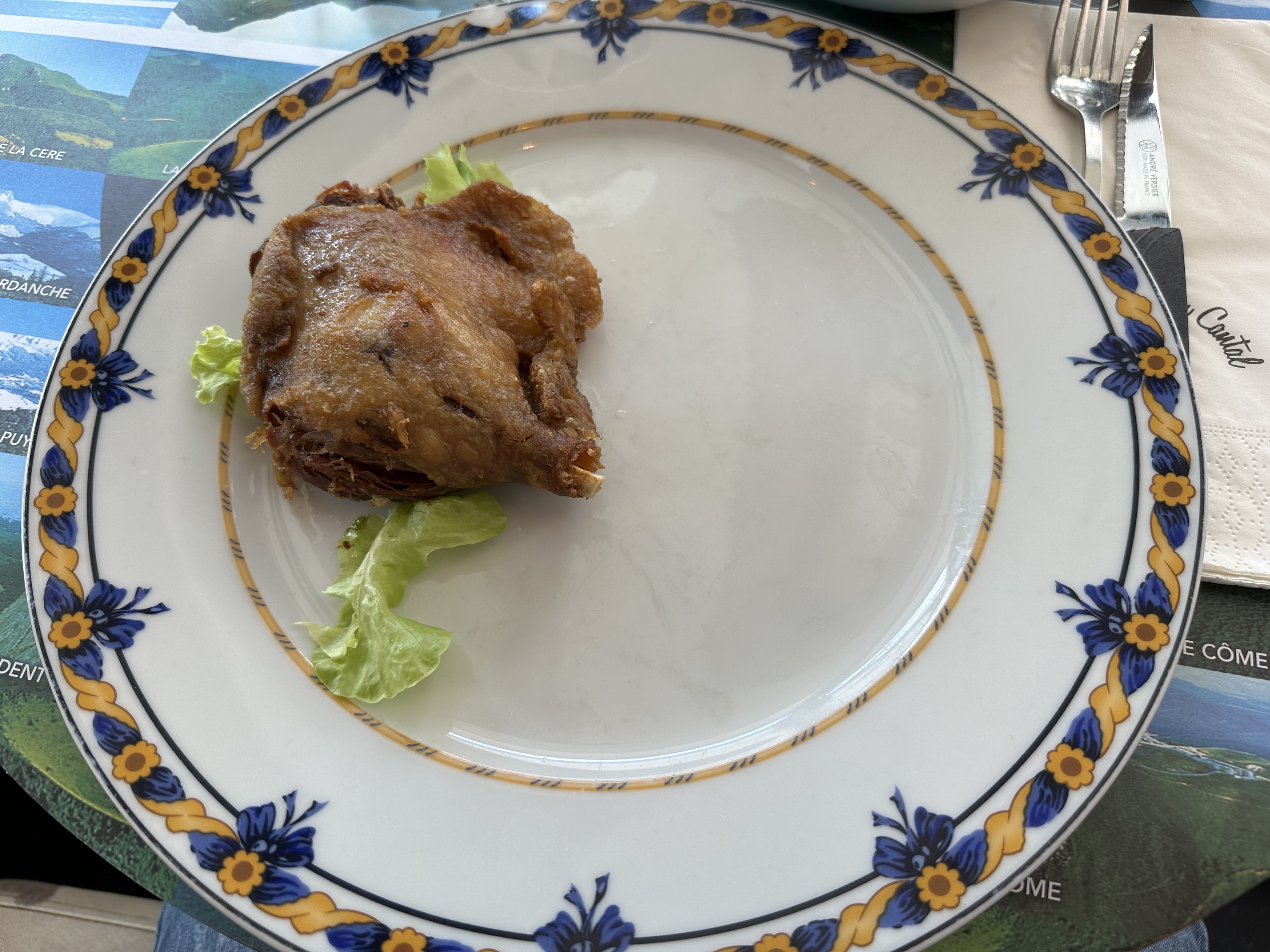 Étant déjà venu une fois et j'avais à peine goûter leur aligot, qu'il me fallait de revenir. J'ai donc pris ça plus une salade frisée lardons et croûtons, le tout que je mélange après. EXCELLENT !!! Avec un peu de vin blanc (avec modération) !