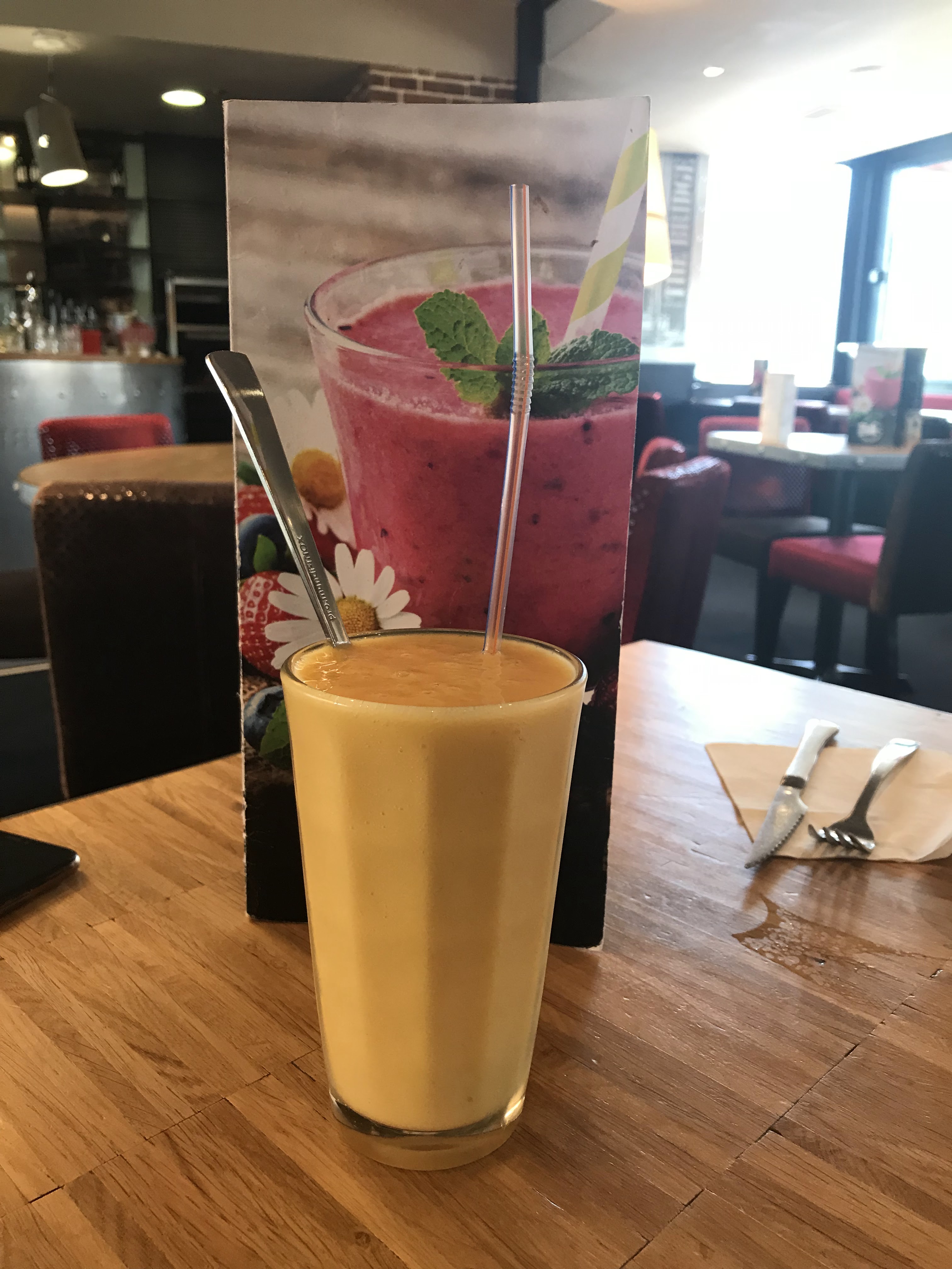 Nous nous sommes arrêté pour une petite pause shopping qui s’est transformée en goûter. Le lieu nous a paru très accueillant les équipes souriantes. Nous avons craqué pour une gaufre et 2 smoothies mangue passion. La gaufre n’avait rien d’exceptionnel mais nous ne sommes pas certains qu’elle était faite maison. Mais globalement nous avons passé un bon moment