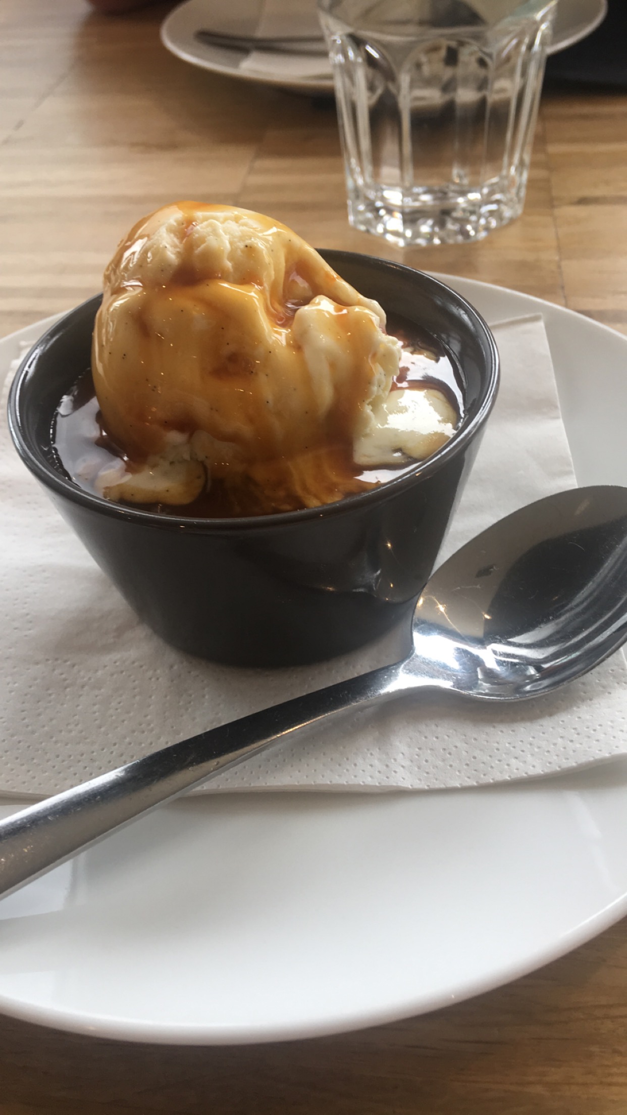 service un peu lent dû au nombre important de clients. banoffee excellent, mais des différences notables de courtoisie entre les serveurs...