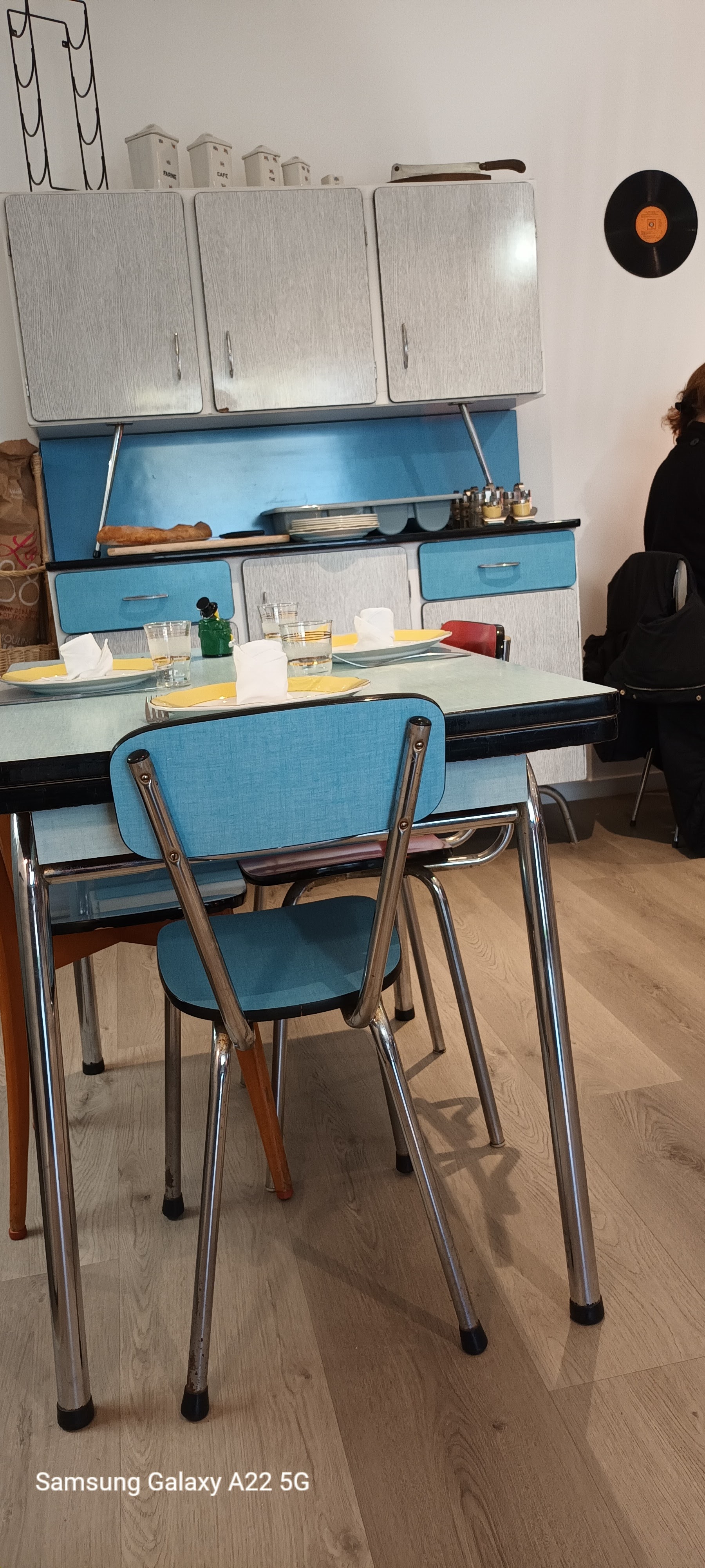 Restaurant comme je les adore. Je cherchais un endroit où manger. Très agréable surprise en arrivant. Une déco vraiment originale avec ce mobilier en formica et tous ces petits objets anciens répartis dans la salle. Le repas était très bon, le dessert pareil. Et le service au top. Frédéric si j'ai bien retenu son prénom est aux petits soins avec le sourire et sa bonne humeur. Si j'habitais pas aussi loin (Bordeaux, en déplacement professionnel) j'y serai revenu avec grand plaisir. Merci pour le service, merci pour la qualité des plats et merci de m'avoir fait voyager dans une époque que je n'ai pas connu.