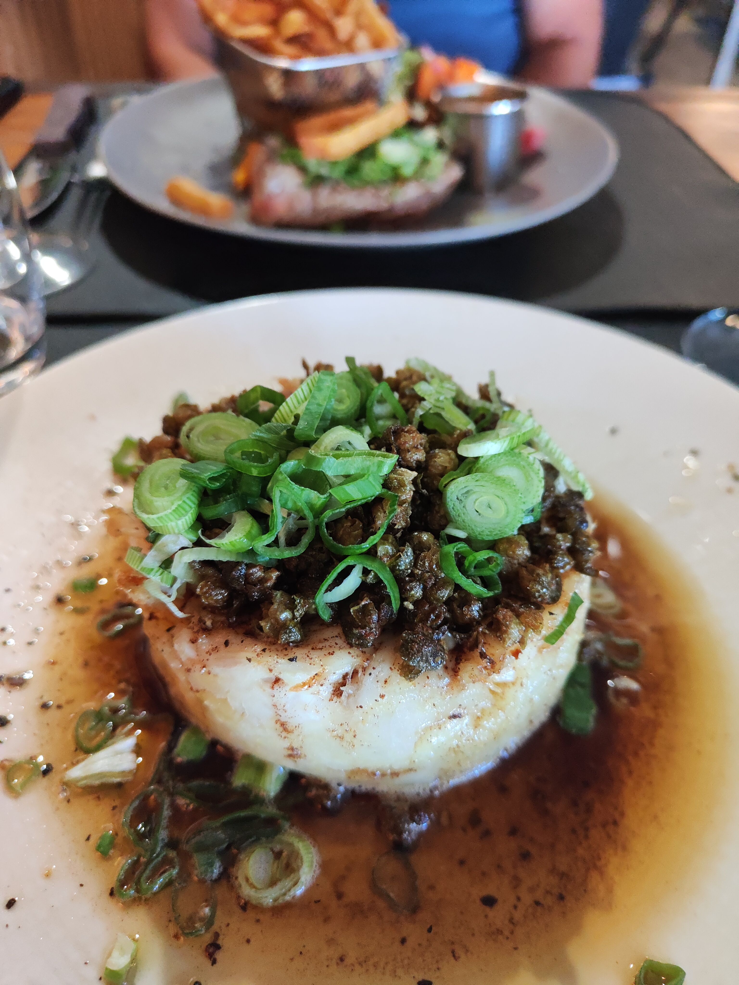 Excellente adresse. Repas savoureux et original : Calamar snackés sur risotto (riz noir), sauce chorizo On recommande chaudement !