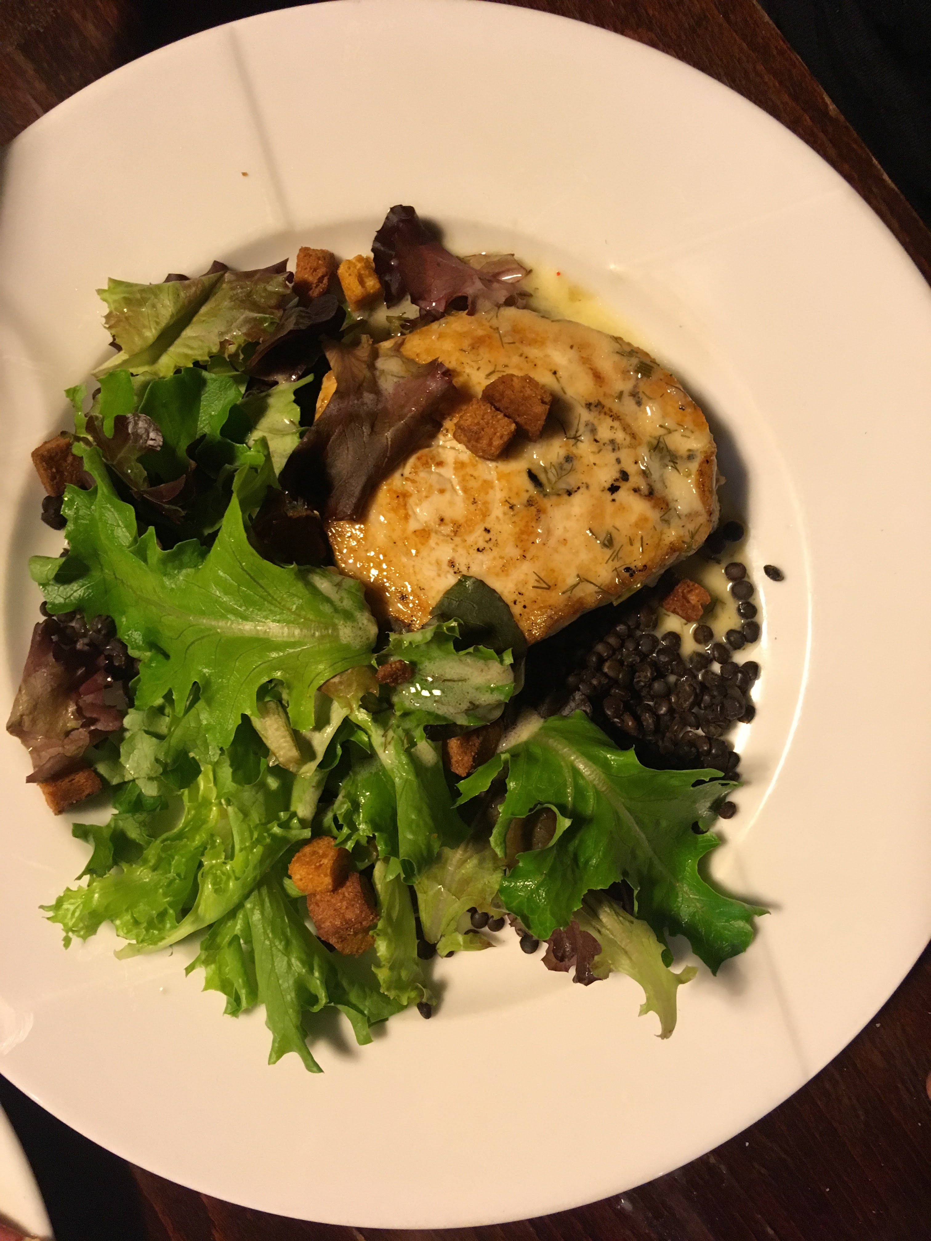 Utilisation créative de bons ingrédients, poisson parfaitement cuit, excellent pain, fromage et desserts, personnel adorable.