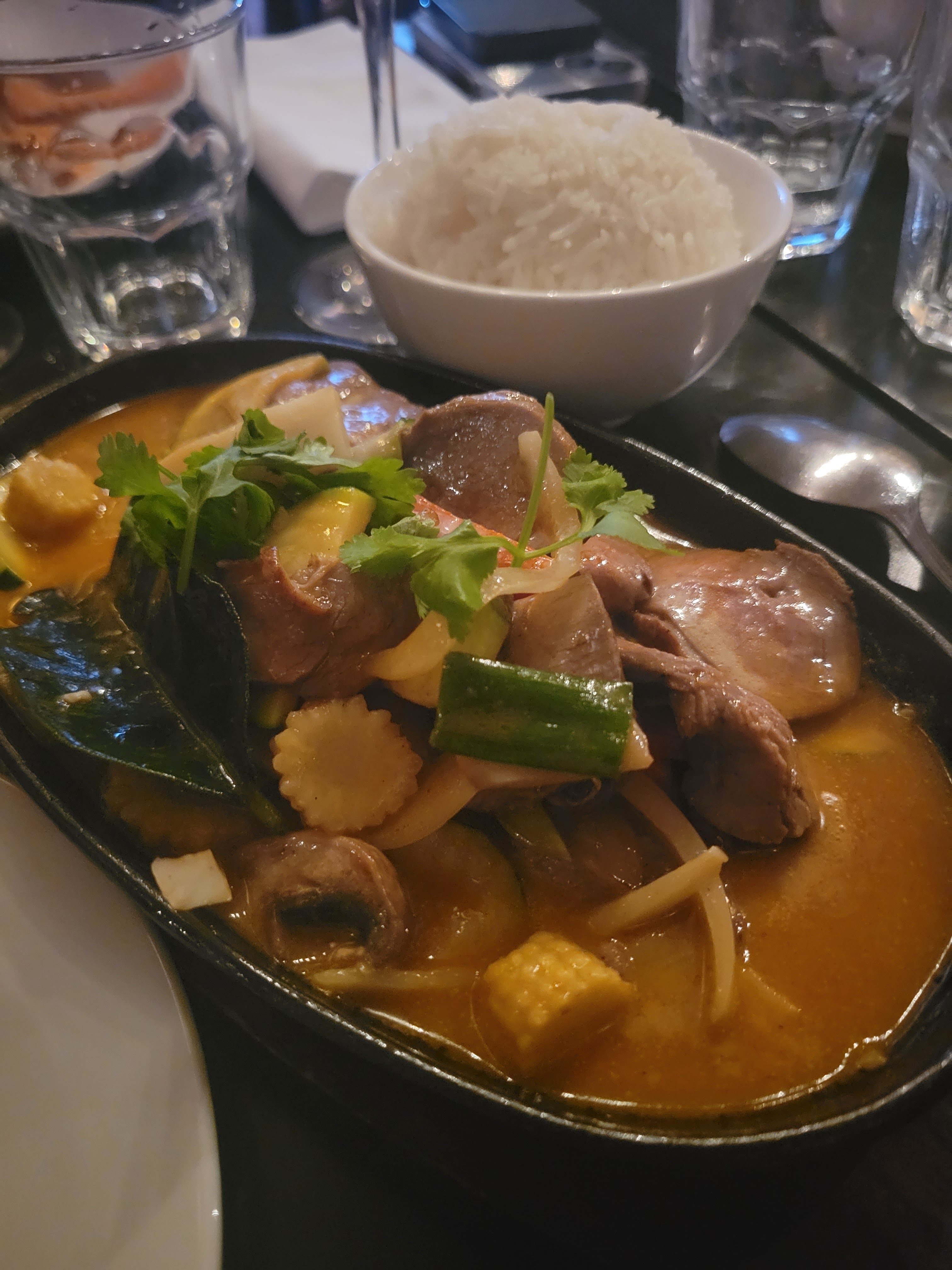 Bonne soupe tom ka khai. Plats savoureux et de qualité (sauce du canard laqué à revoir par contre) , mais attention il faut prévoir l'accompagnement à part. À recommander toutefois