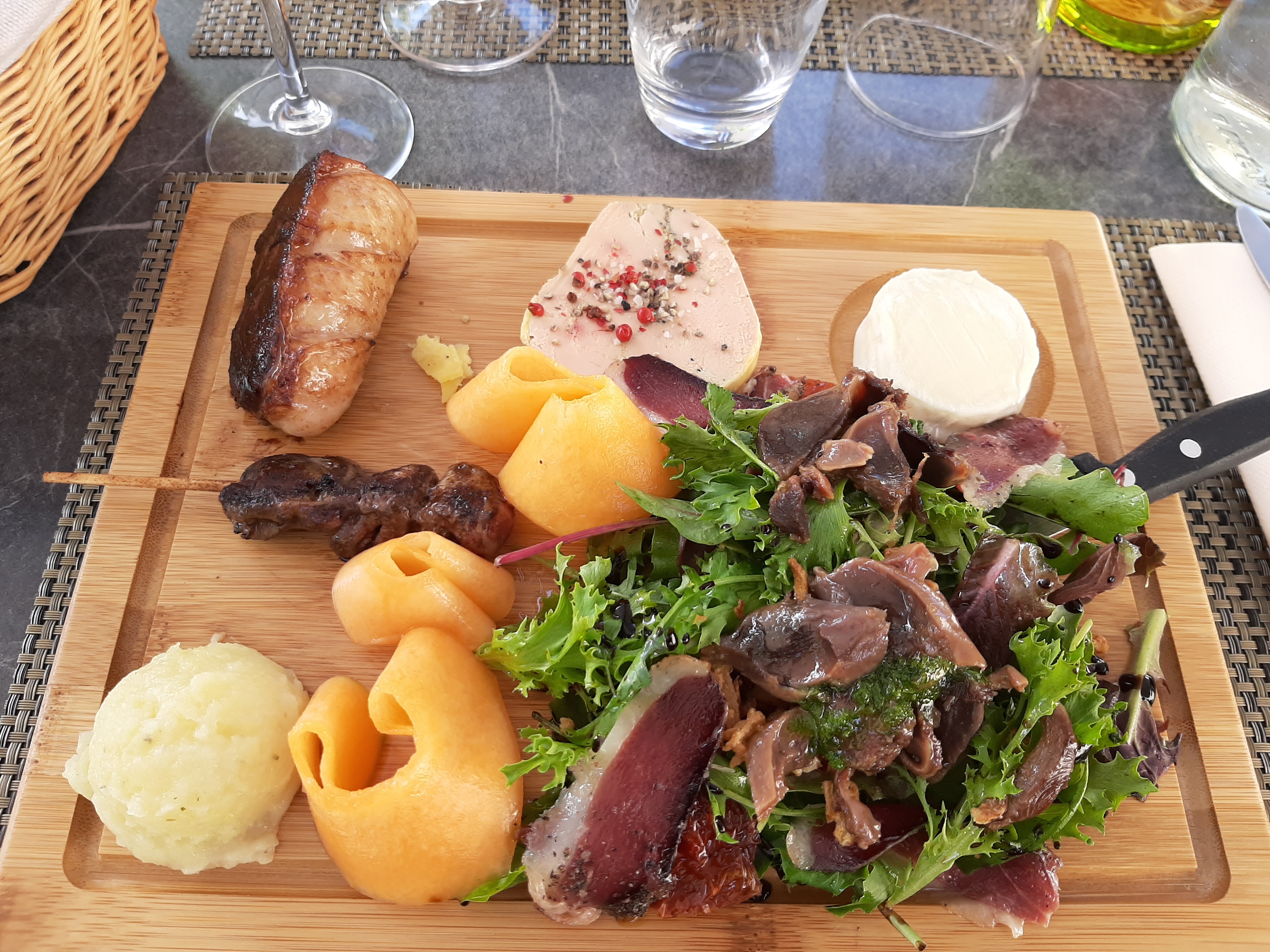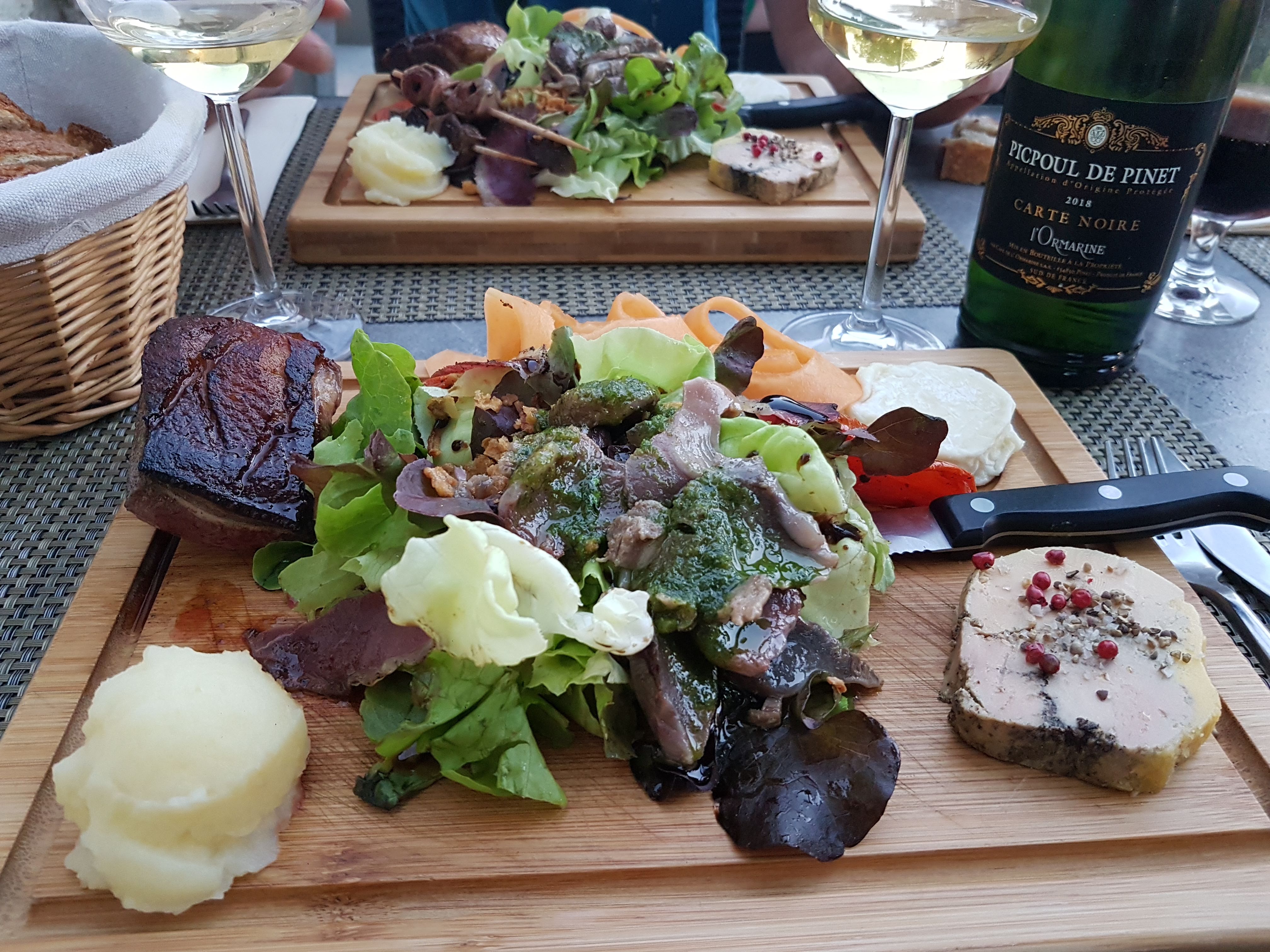 Menu du jour: terrine maison, canard sauce banane..... c'était délicieux ! Les planches tout canard Très copieuse et goûteuse. Les cuissons etaient parfaites. La serveuse est super pro, connaît les vins à la carte, Très bon restaurant. Belle découverte Merci