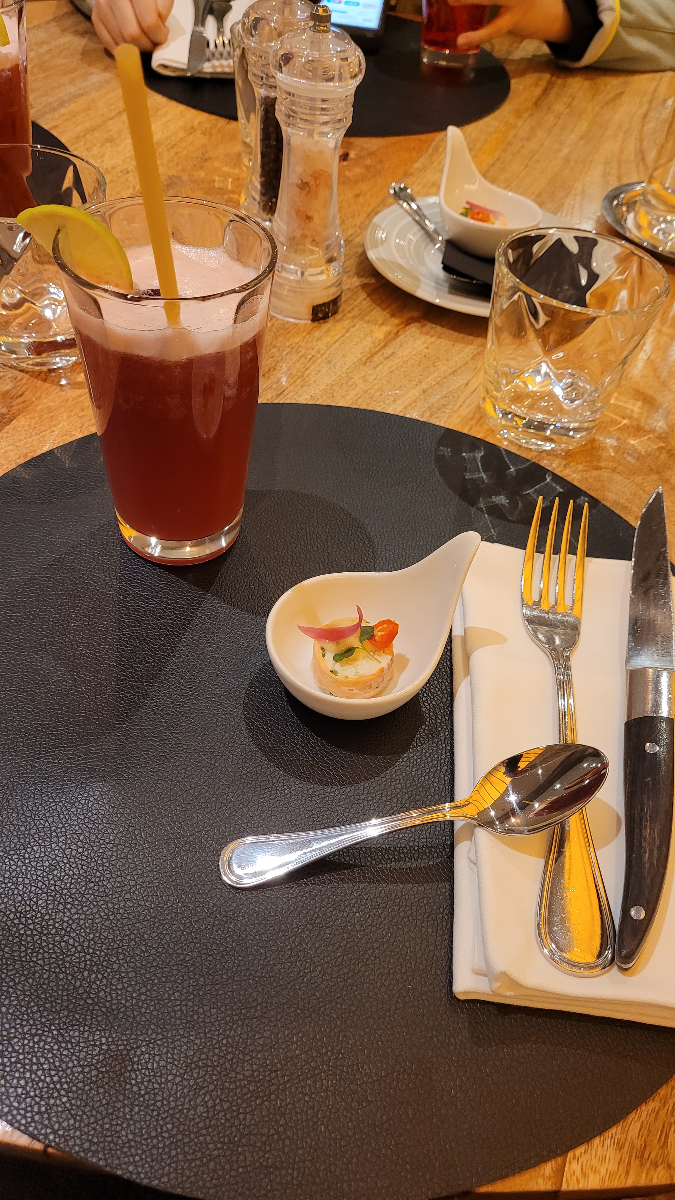 Serveur au bar extrêmement rapide, voir impressionnant, à embaucher. Dylan(serveur en salle) c’est fait engueuler toute la soirée, mais nous on l’aimer bien. Repas parfait. Très bonne adresse lorsqu’on effectue un passage au Mont-Saint-Michel.