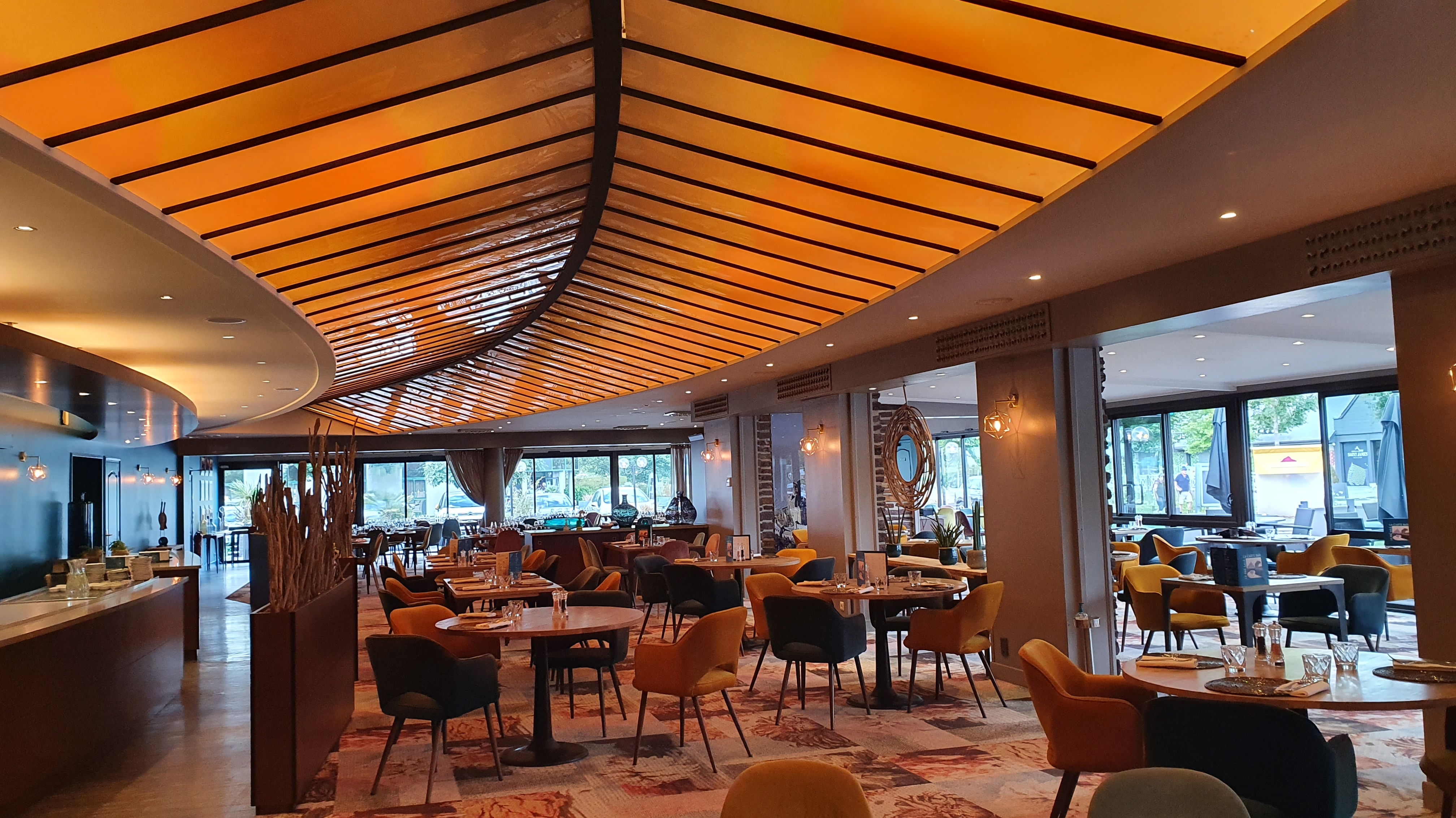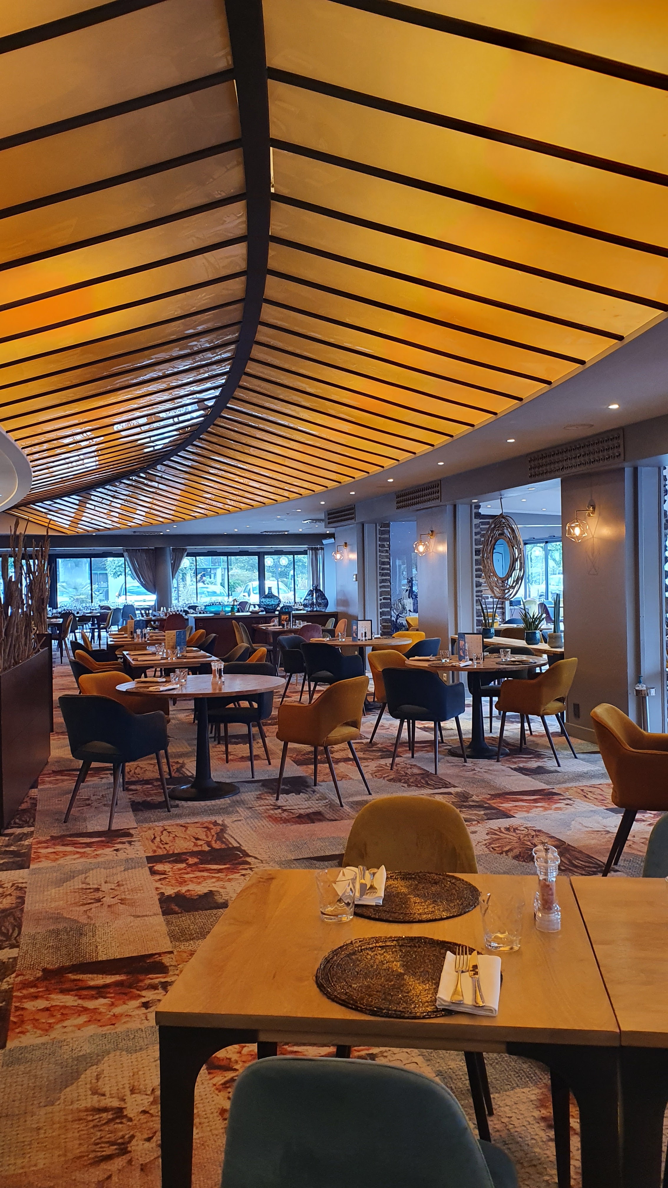 Je n'ai pas mangé au restaurant mais à 19h30 il était complet pour le service du soir. L'endroit est très jolie avec des fauteuils en salle pour boire un verre très confortable et un service digne du complexe. Prix responsable pour le lieu.