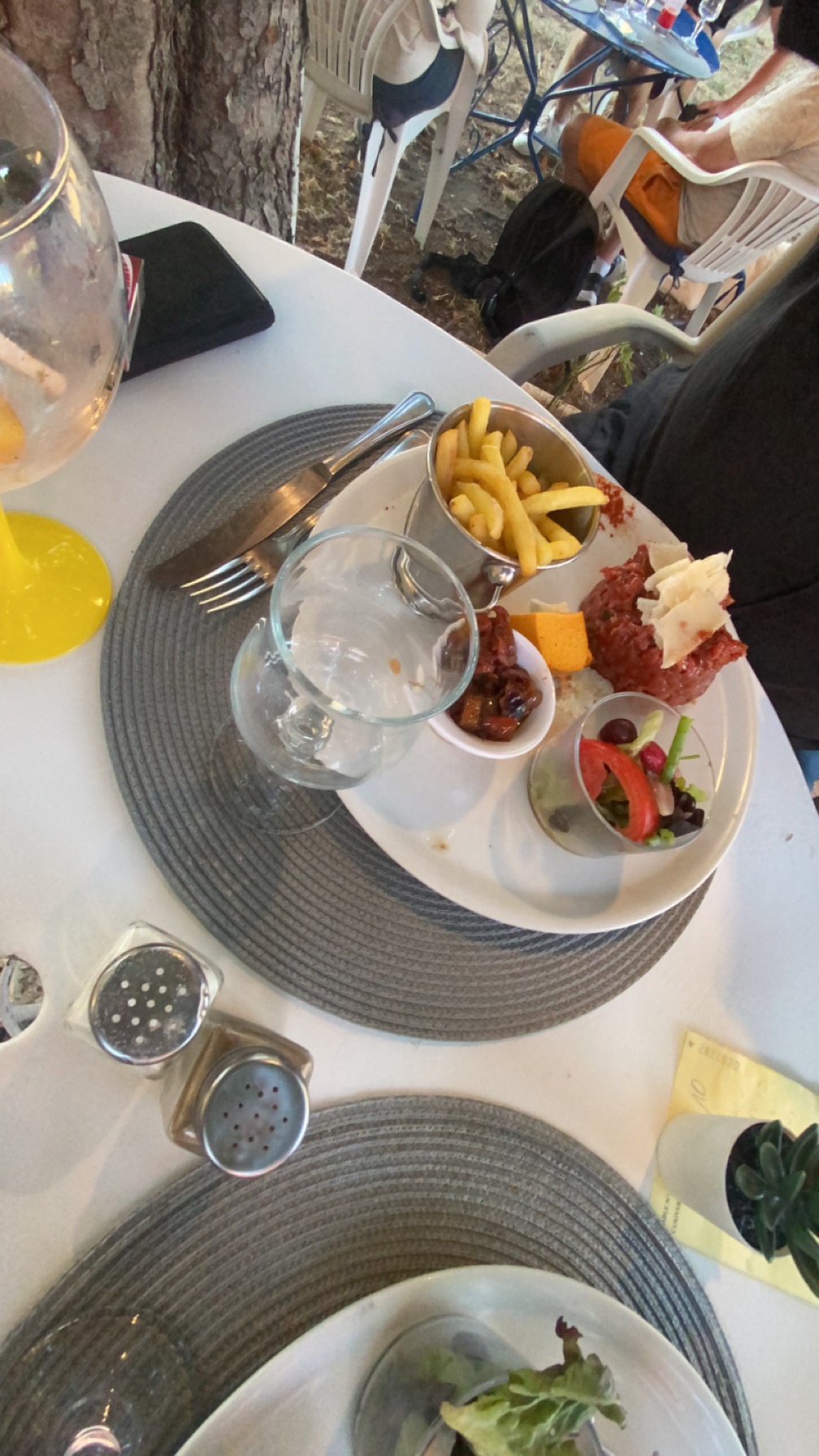 Déjeuner le 14 juillet. Malgré le retard, nous avons quand même pu commander. Personnel très sympathique. De l'eau pour les chiens. Haut! Nous n'avions que de la salade, assez grande et très savoureuse. Bon rapport qualité prix. Nous nous sommes assis confortablement au fond sur la grande pelouse à l'ombre des arbres. Splendide! 🤗