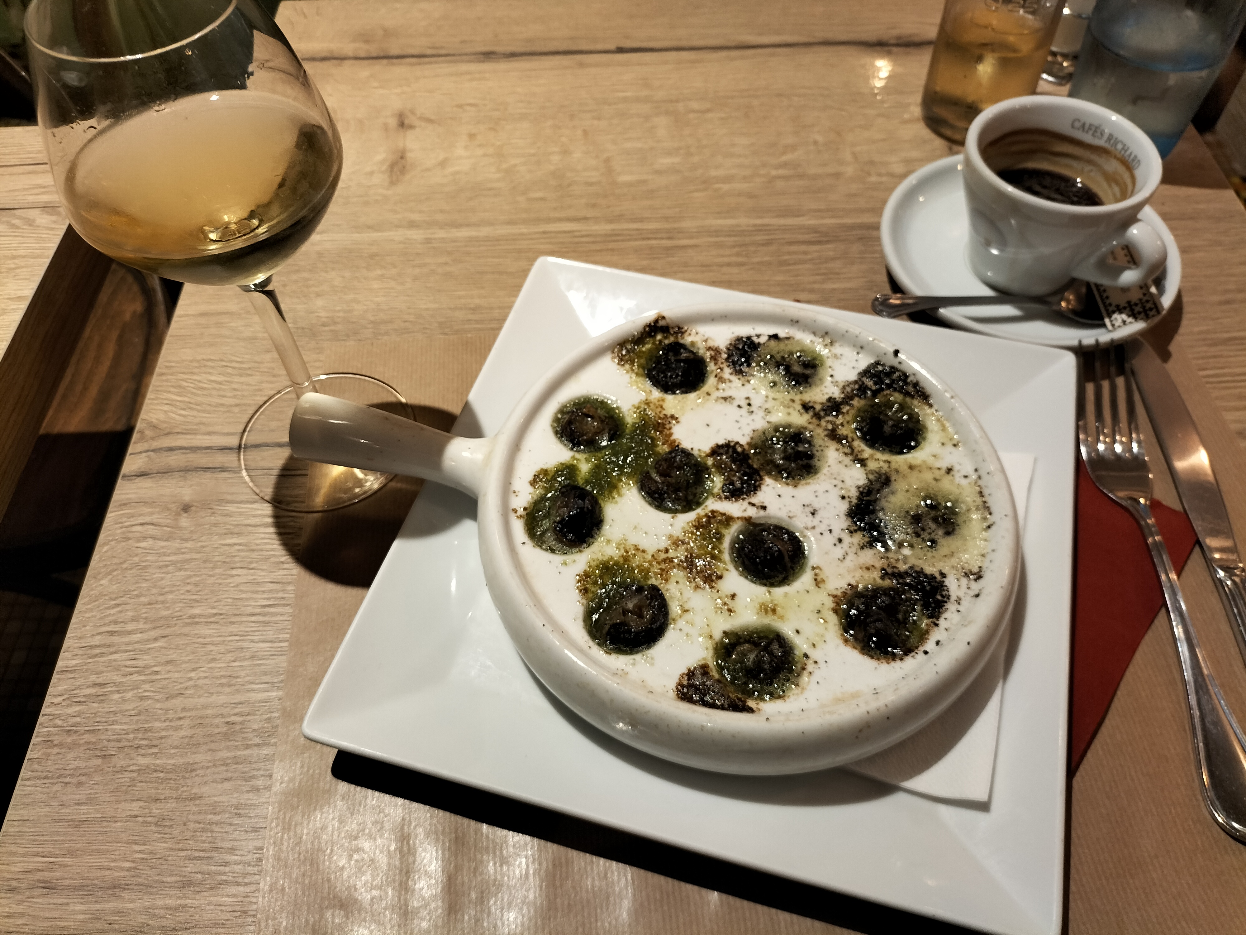 La nourriture est correcte, l'escargot n'avait pas un goût très frais, mais il était de poisson.
