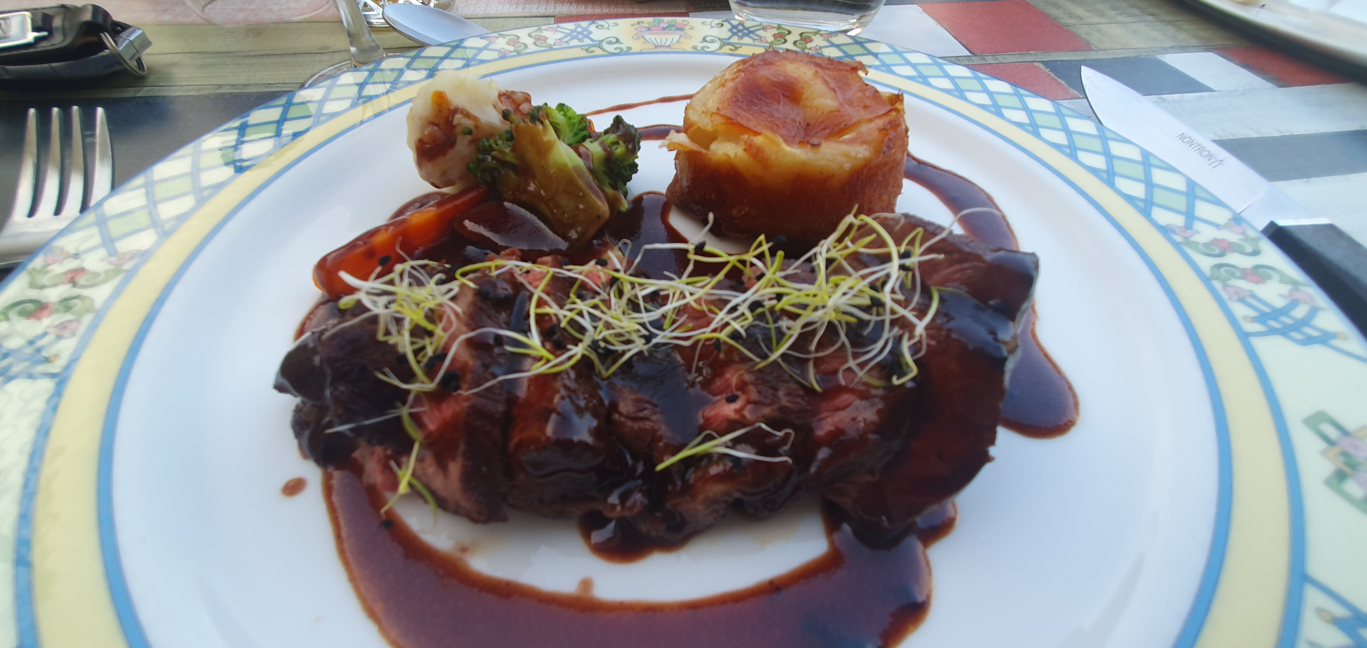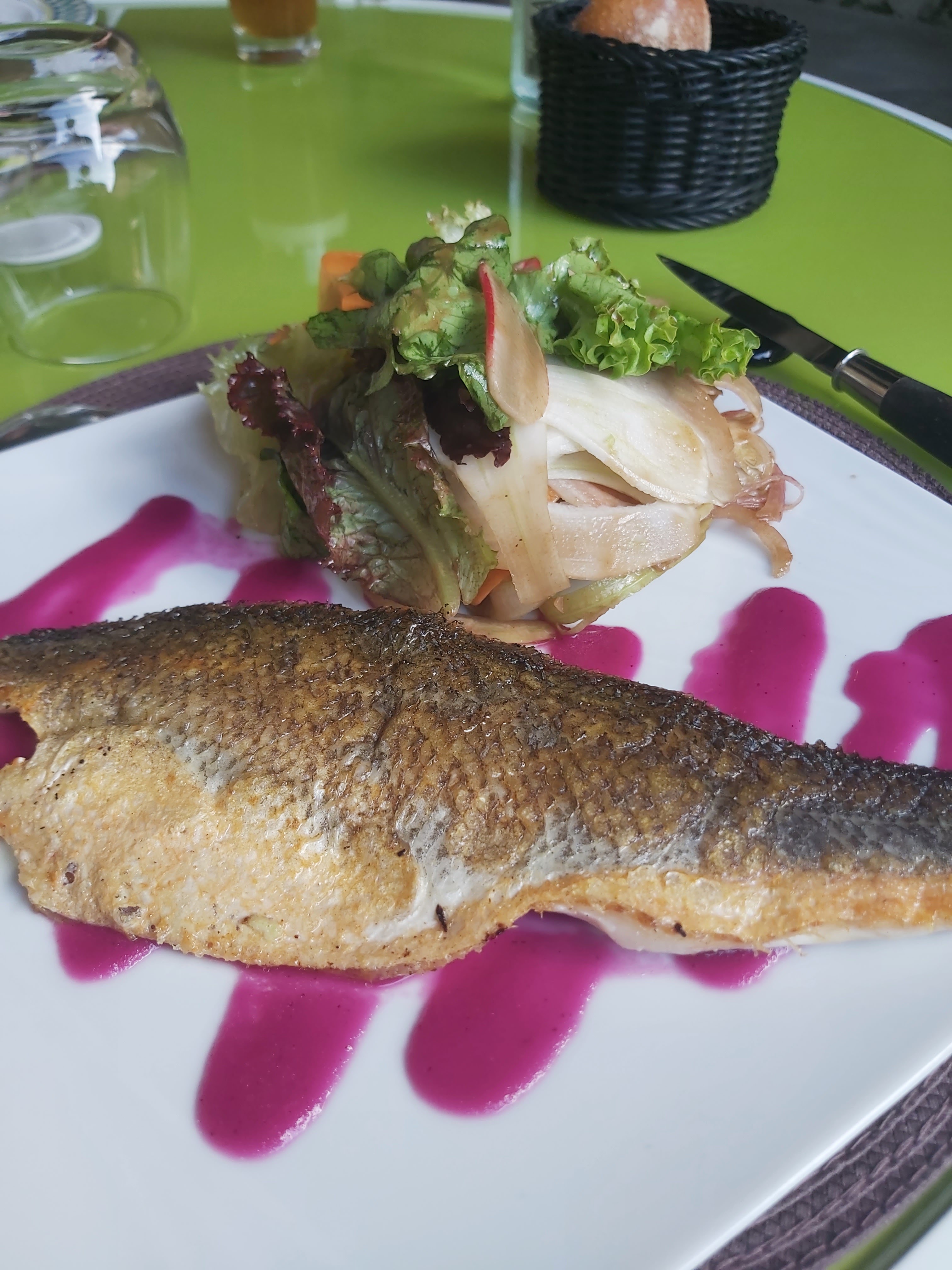 Bonne cuisine Mais il on oublie de mettre des nappes sur les tables et il pourrait changer les couteaux entre les plats
