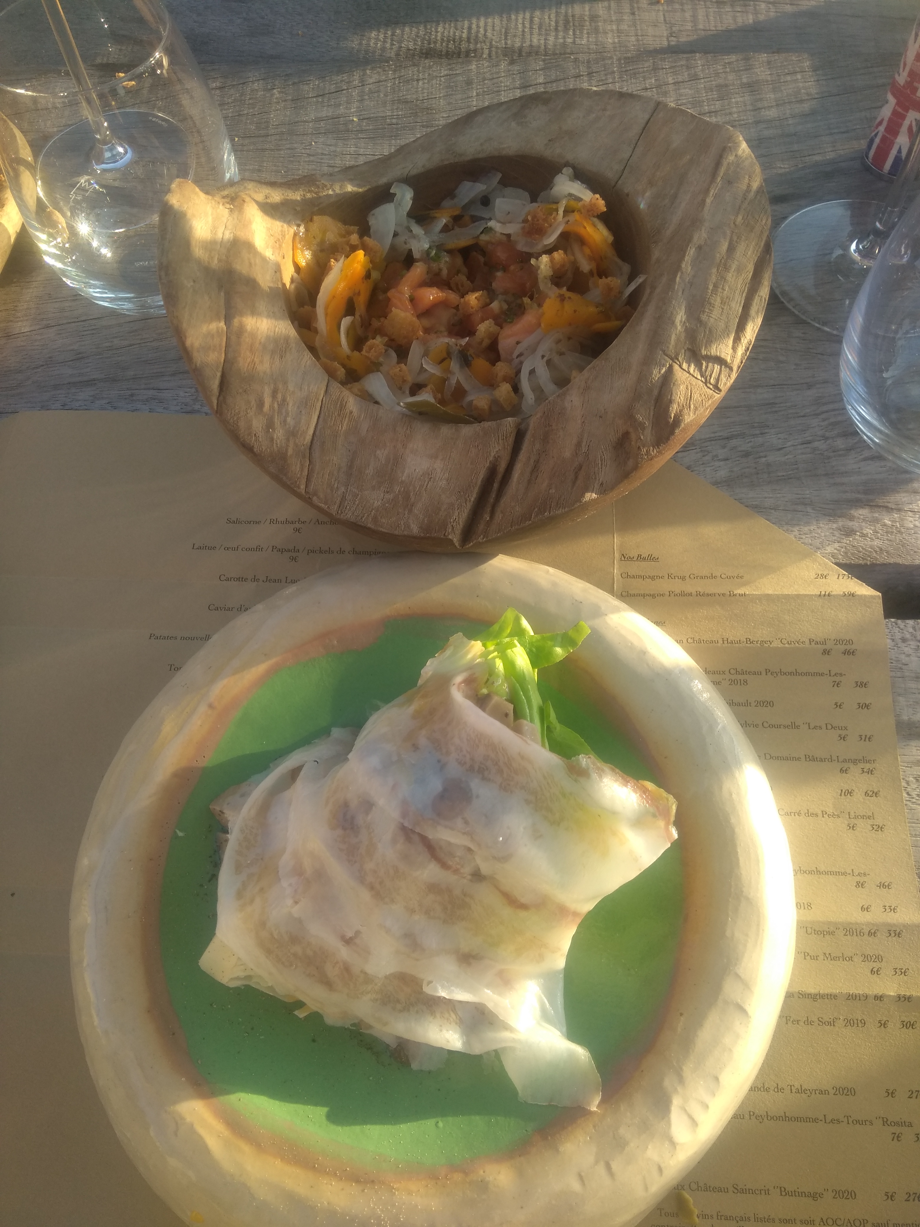 Endroit sympa, début de soirée sur la terrasse couverte très sympathique et choix du menu 5 plats avec accord mets vins en précisant que nous ne voulions pas être déçu (trop déçu par le passé). Vins sans aucune personnalité, avec défaut œnologique protubérant pour les rouges (une honte pour un restaurant de ce « standing »). Après l’avoir signifié au serveur celui ci a tout simplement dit que c’était le « cépage », travaillant dans le milieu la réponse est beaucoup trop bancale et incorrecte. Aucune excuse, rien. Les vins étaient littéralement sans intérêt. Plat correct dont un plat à base de pois chiche obsolète sans intérêt. Au vu du tarif c’est un très mauvais rapport qualité prix étant habituée à d’autres restaurants étoilés. Revoyez votre considération client lorsque l’on vous notifie quelque chose qui ne va pas. Tout peut être entendu avec un minimum de bienséance, ce qui n’a pas été fait.