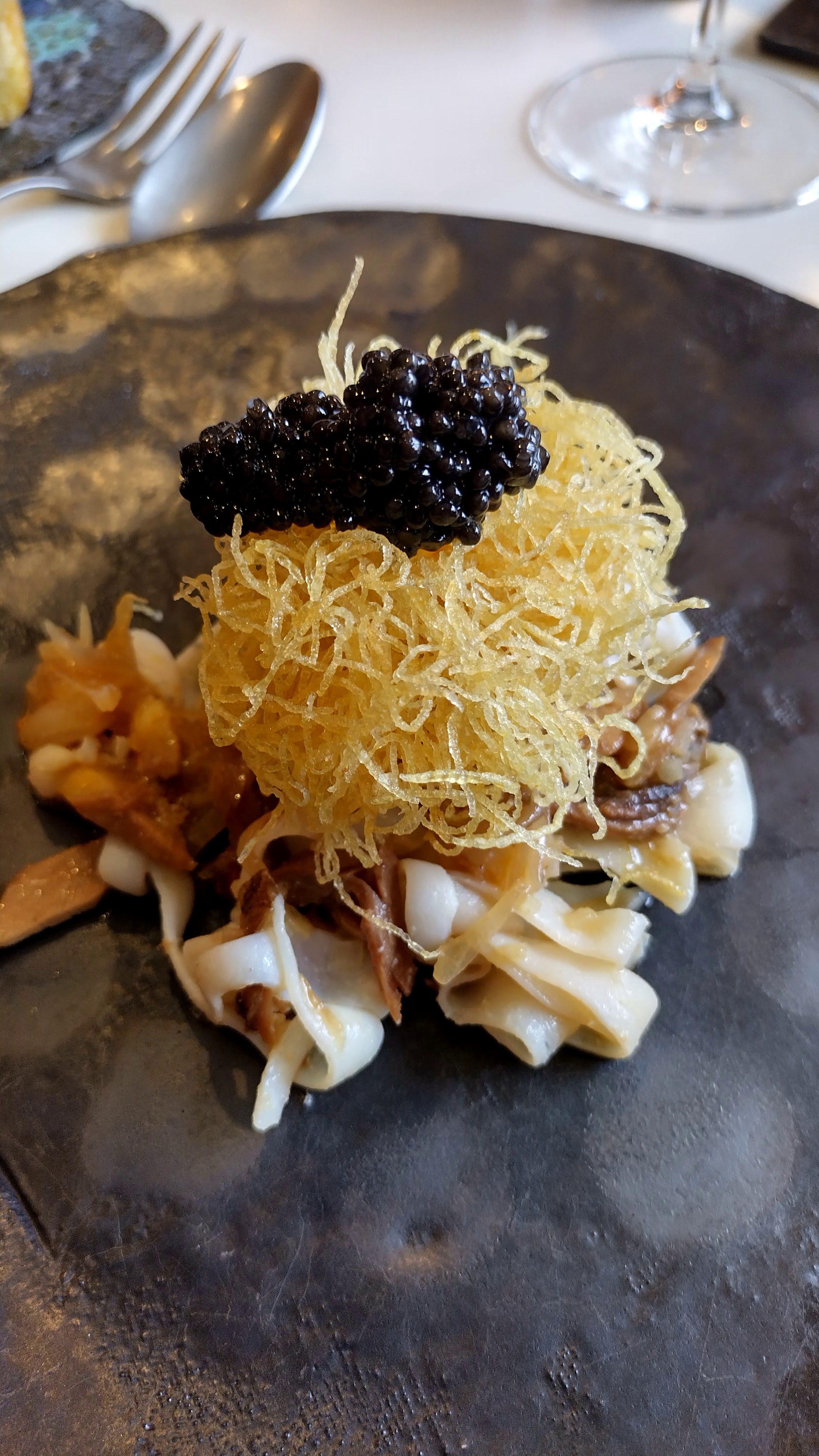 Excellente soirée avec de très belles sélections de vins par le sommelier, des plats raffinés, certains exceptionnels, d’autres avec un manque d’équilibre et d’assaisonnement, pas parfait mais une chouette équipe de service !