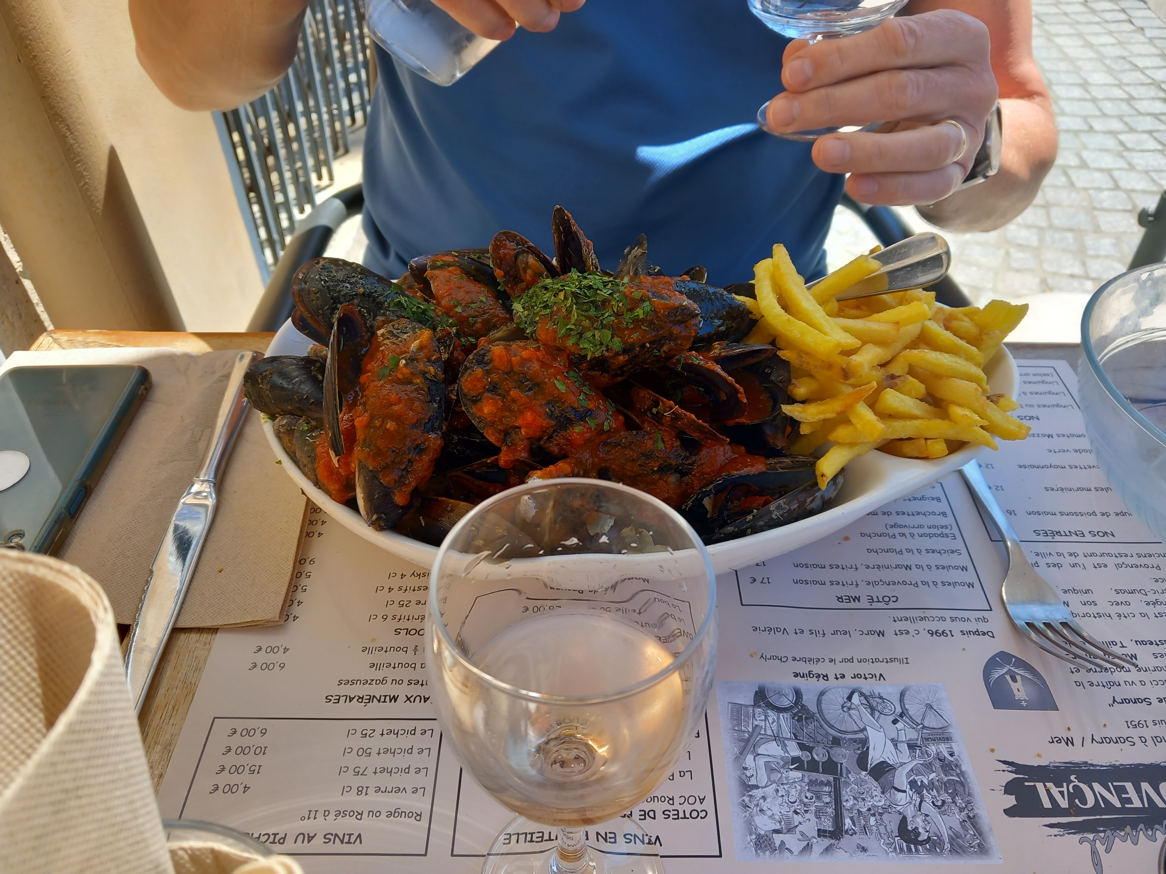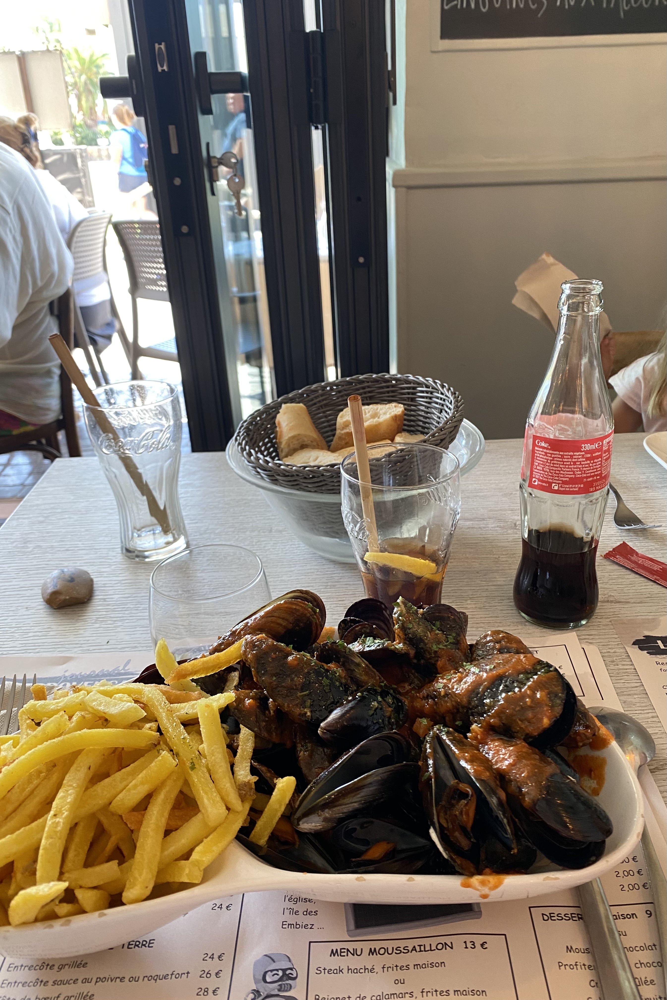 Le restaurant n'est pas forcément au bord de la mer mais il est tout de même dans un endroit au calme, pour ce qui est des moules la quantité était à peine suffisante.