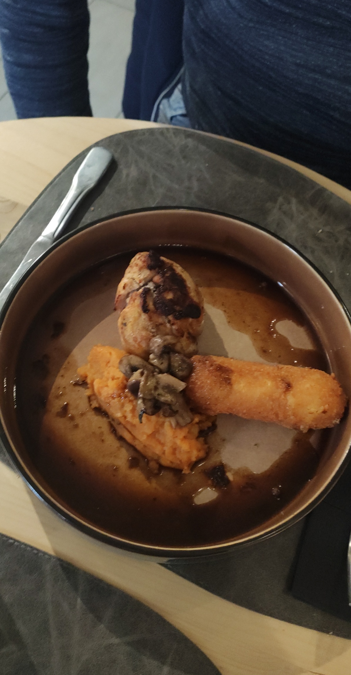 J’ai pris une entrée en plat principal l’ayant bien précisé à la serveuse la moindre des choses aurait été de l’accommoder en fonction. Quand je lui en ai fait part, elle n’a pas accepté mon commentaire et c’est refermée comme une huître. En rapport qualité prix je peux recommander beaucoup d’autres adresses. Cordialement