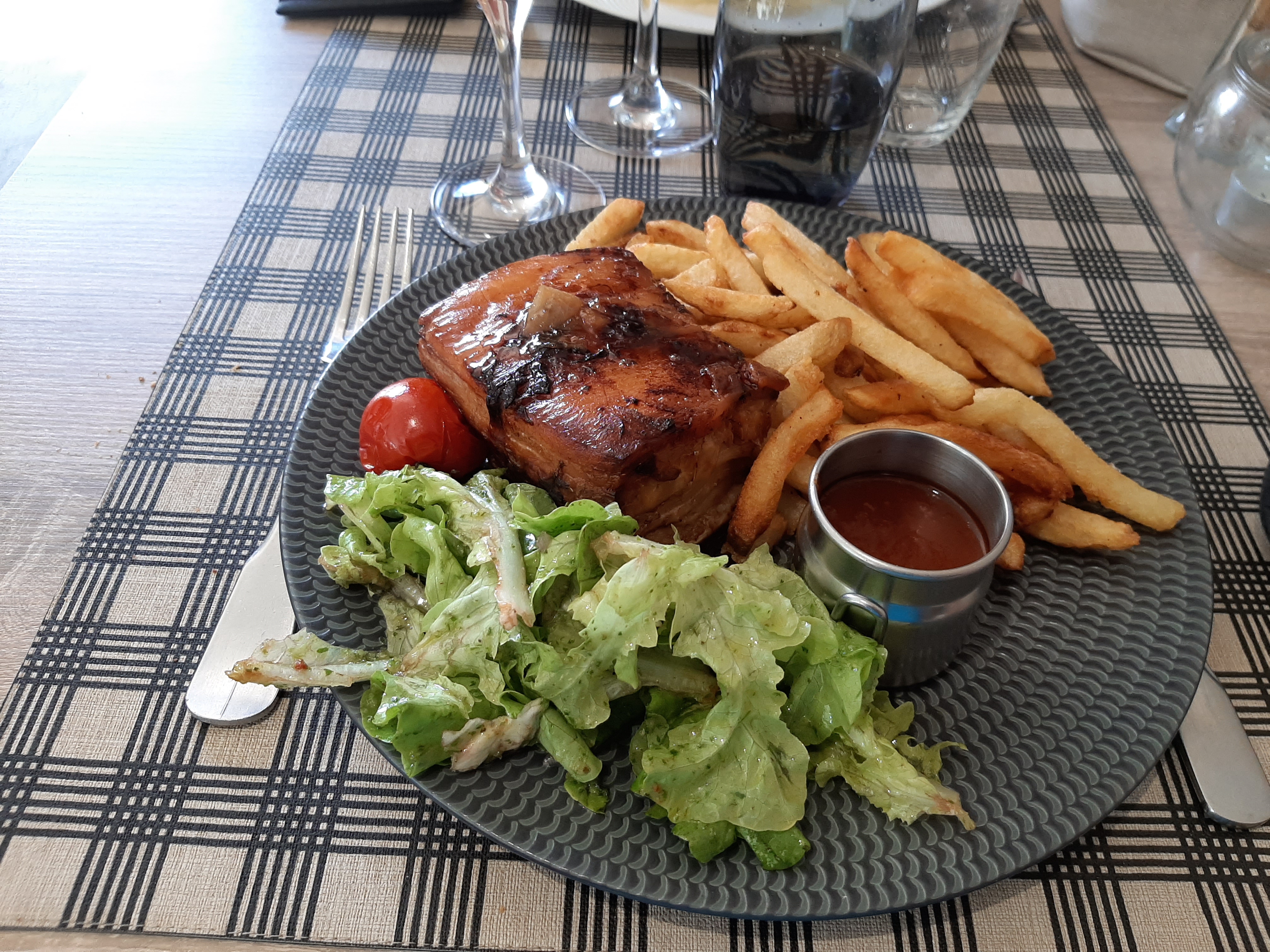 Arrêt improvisé pour un déjeuner en amoureux et belle surprise! Personnel très aimable, très bon rapport qualité/prix, cadre agréable et service rapide! Je recommande vivement. Rien à redire.