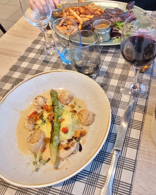 Une bonne adresse sur ce secteur 👍 même si le personnel, un peu débutant, ne semble pas avoir de briefing avant le service car ils ne connaissent pas le contenu des menus ou l’accompagnement, ni la provenance des vins. La cuisine est goûteuse et généreuse. La pièce de viande était parfaitement tendre. Petit bémol sur les soles qui étaient pleines d’arêtes ; il serait préférable d’en mettre une grosse plutôt que deux petites pour éviter ce problème. Le cadre est campagne chic Une bonne adresse