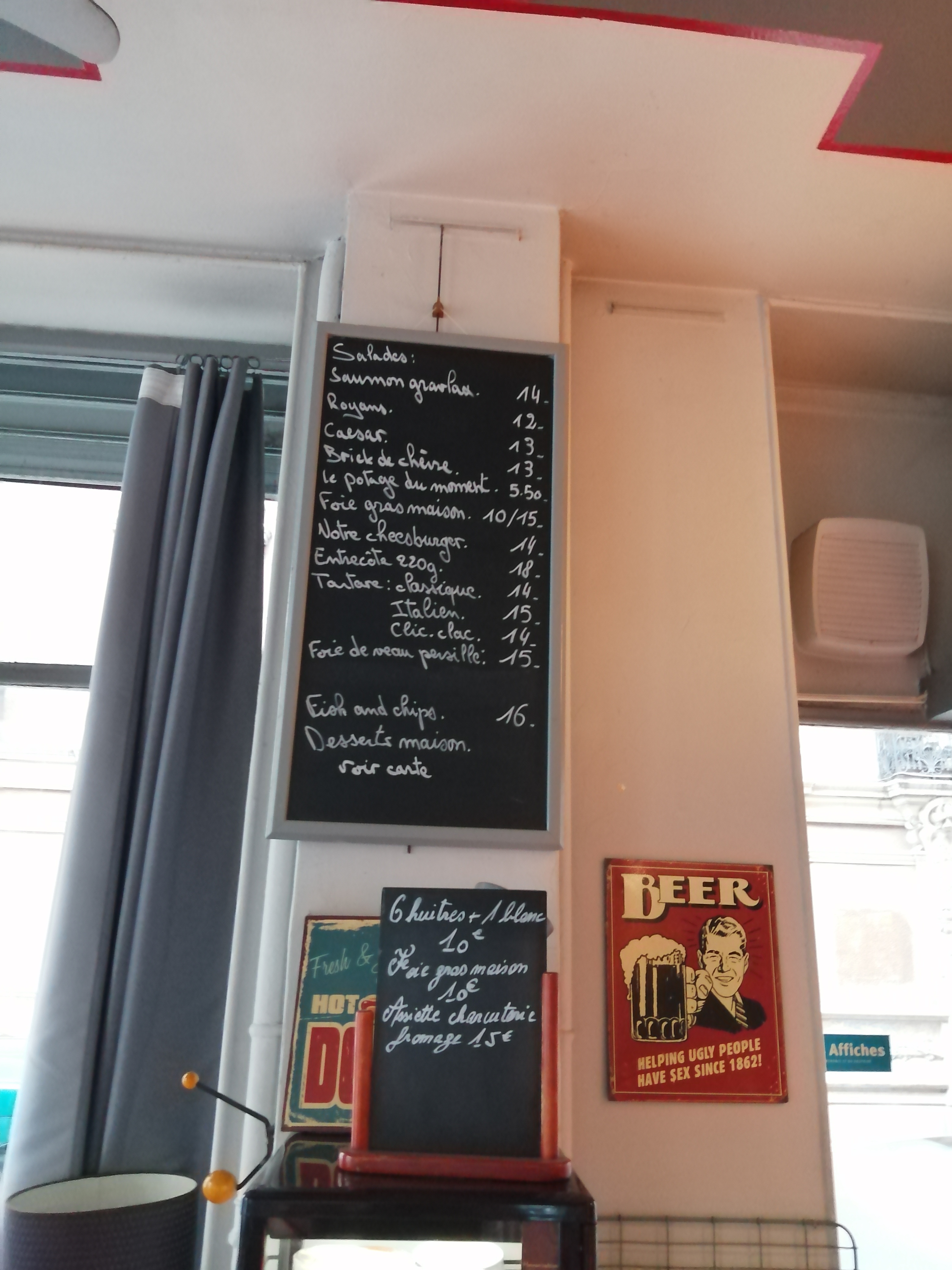 Petite brasserie de quartier avec son plat du jour, sa carte, le vin au verre et en pichet, ... Une ambiance intemporelle. L'accueil est parfait. Les prix sont très raisonnables. Je recommande.