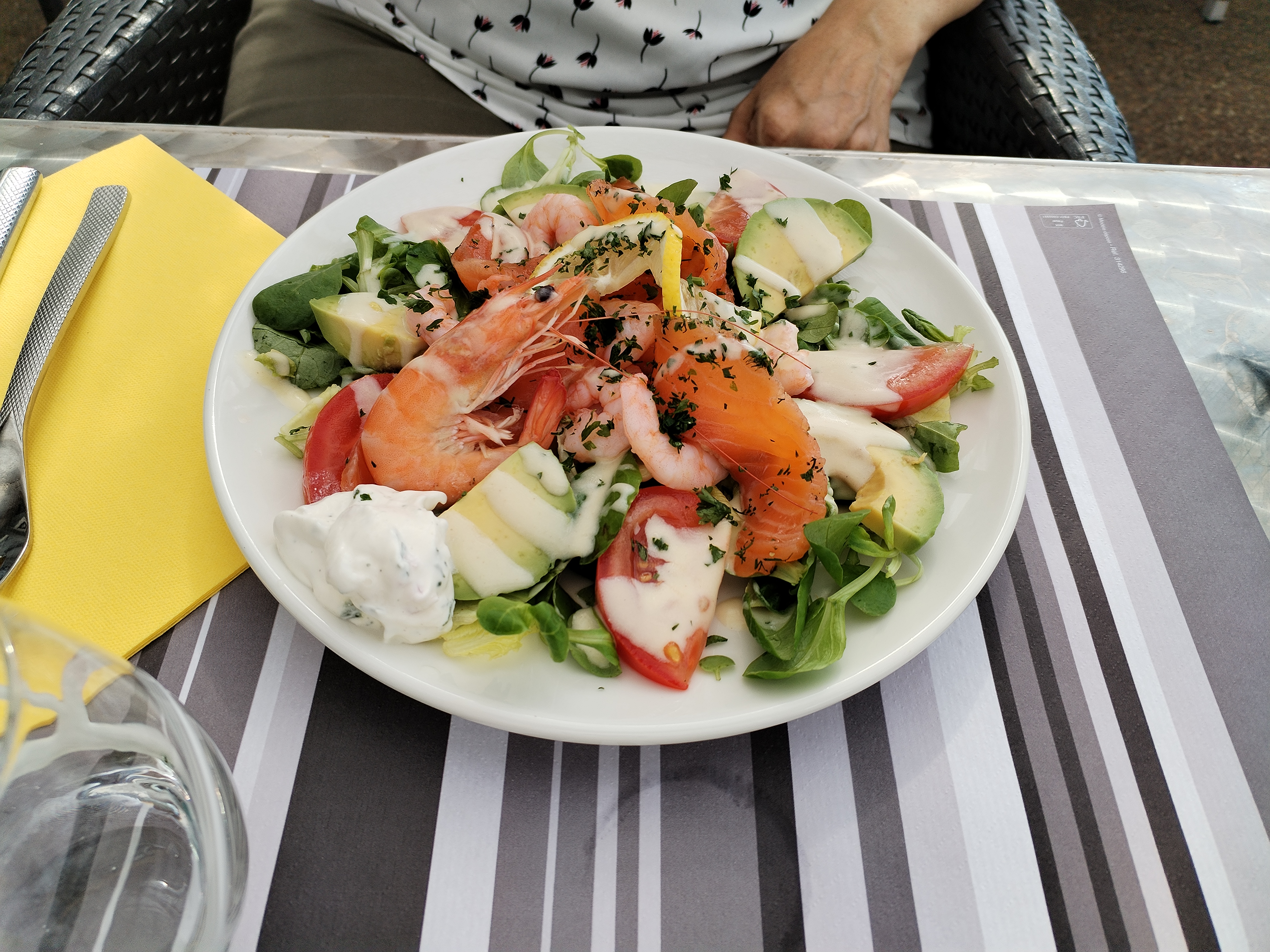 Serveuse un peu froide mais efficace large choix de plat et de très bonne qualité chacun extérieur du restaurant rudimentaire mais confortable et à l'ombre et un intérieur super ! Je recommande !