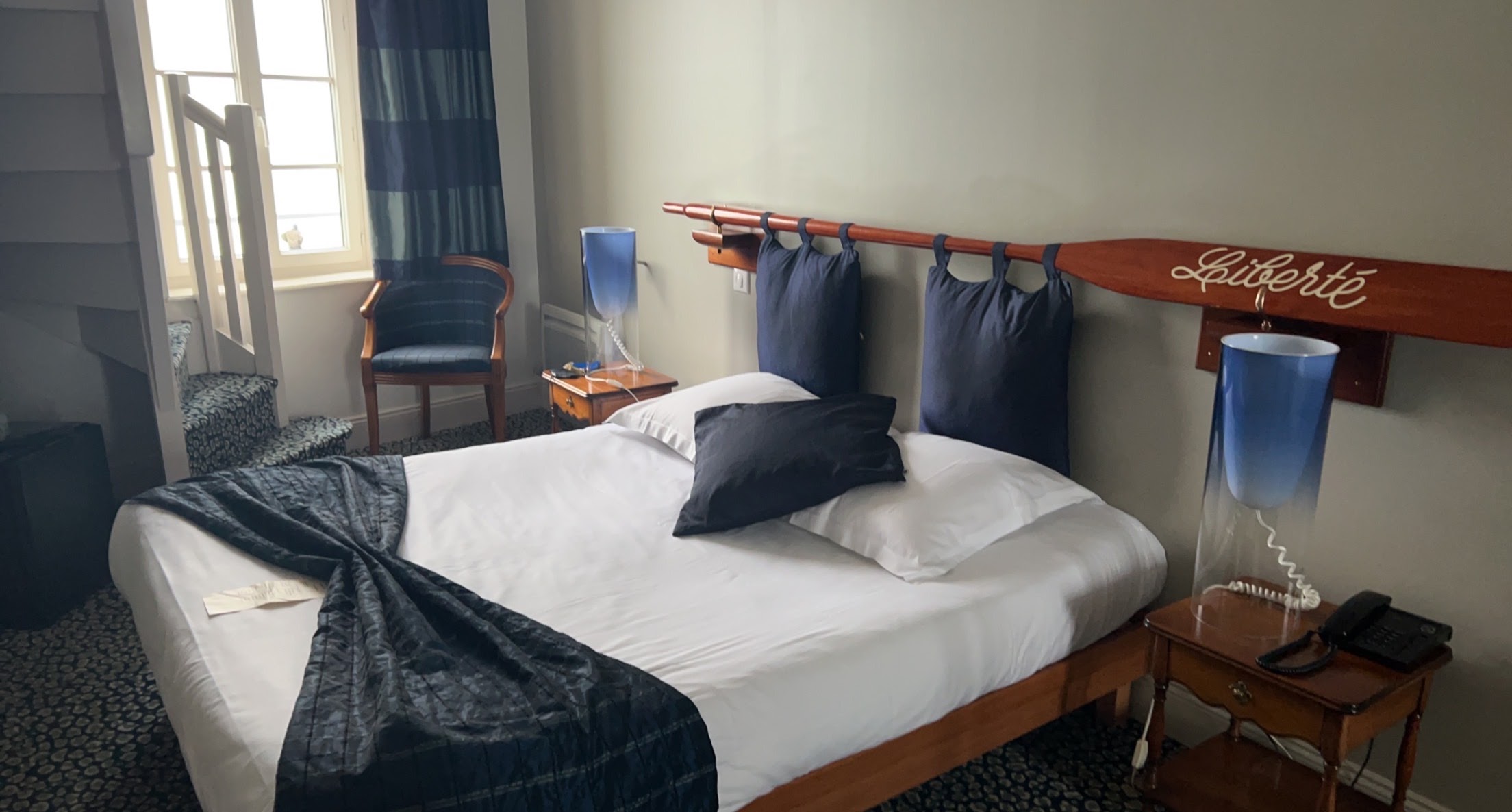 Nous avons réservé une chambre avec vue sur mer, on a juste une fenêtre cachée derrière une maison qui donne sur le parking et la mer, un peu mensonger surtout pour le prix que nous payons pour cette prestation. Literie désastreuse, les lattes sont cassées nous les avons remise mais déjà retombées quand on s'est allongé. Ah oui et aussi un point important la privacité des WC dans la chambre, on entend tout ! En gros je ne reviens pas