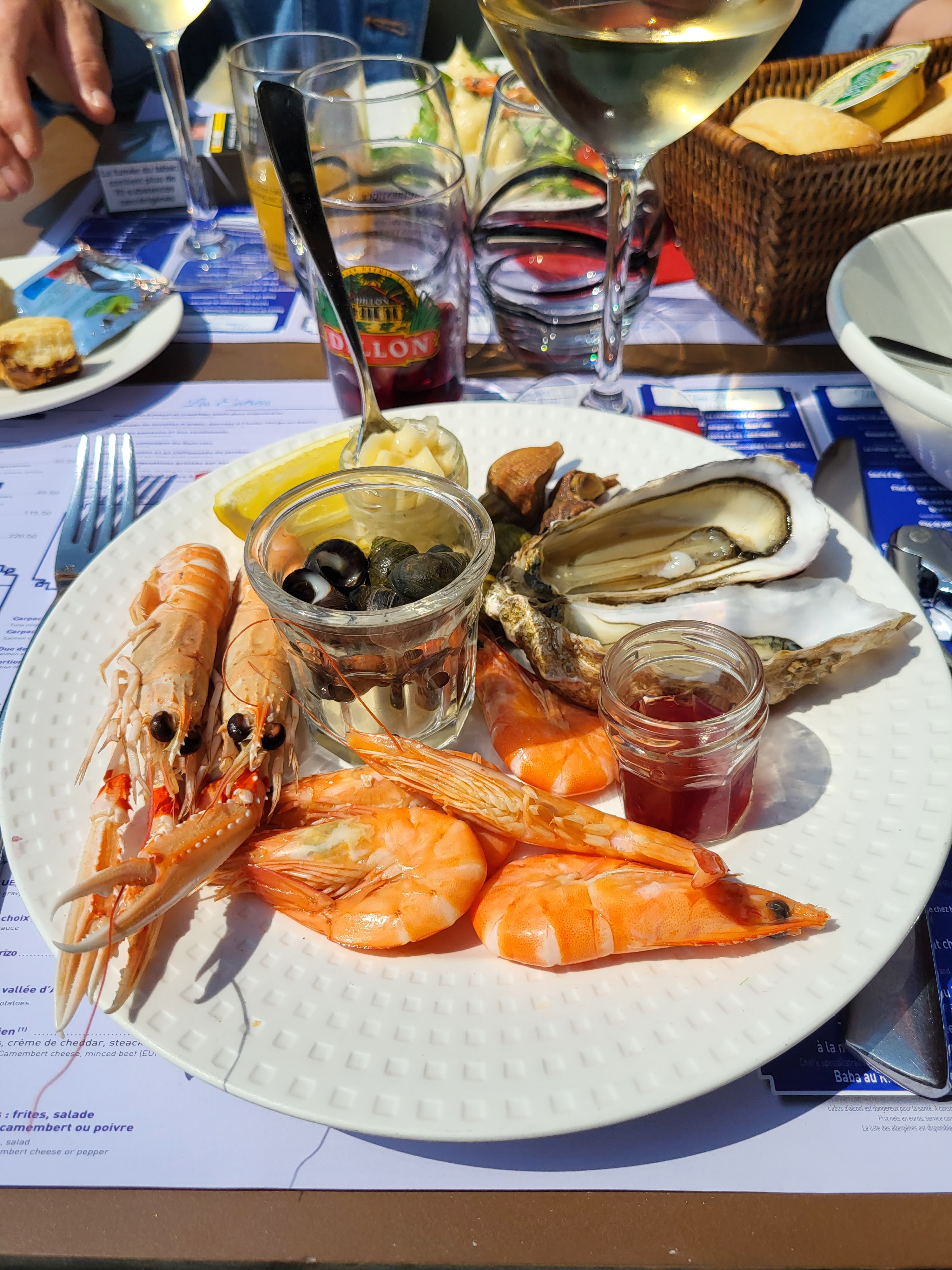 Le plateau de de fruits de mer reste àssez généreux mais sans plus Pour de bons mangeurs comme nous ! Par contre c'est très bon ainsi que le dessert . Le petit bémol c'est qu'il faisait extrêmement froid nous n'avons pas eu le choix ni les autres personnes d'ailleurs ..... parce que j'ai regardé et tout le monde avait son écharpe ( Nos voisin de table mangeaient avec leur manteau ) Je reconnais que dehors il faisait très froid et qu'il y a aussi le respect de la planète mais c'est quand même difficile de manger aisément quand on est trop couvert🤔 Donc un bon conseil allez-y quand il fait beau😉