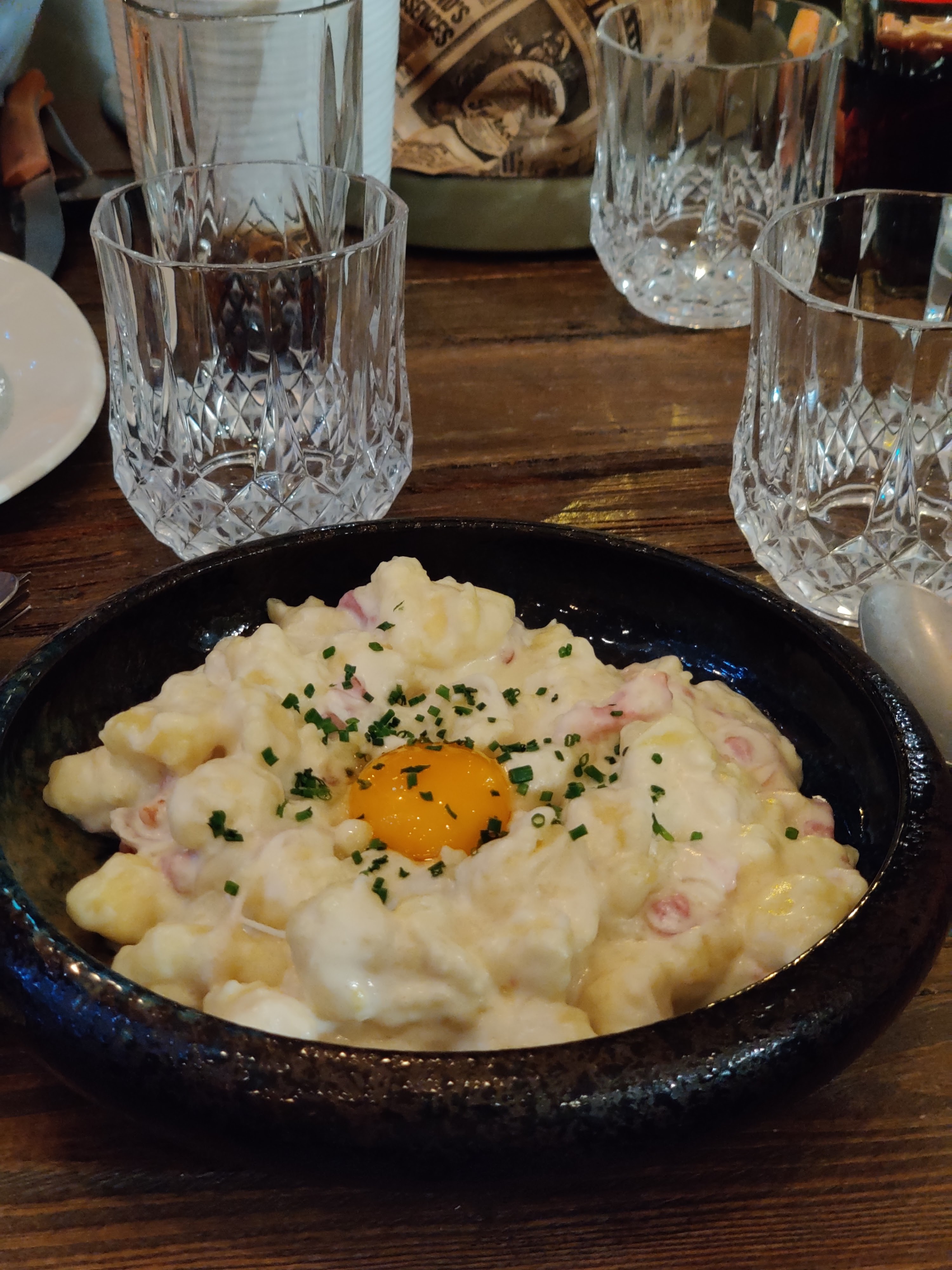 Les gnocchis carbonara morilles sont excellents et plutôt copieux. Dommage pour la coquille d'oeuf retrouvée.
