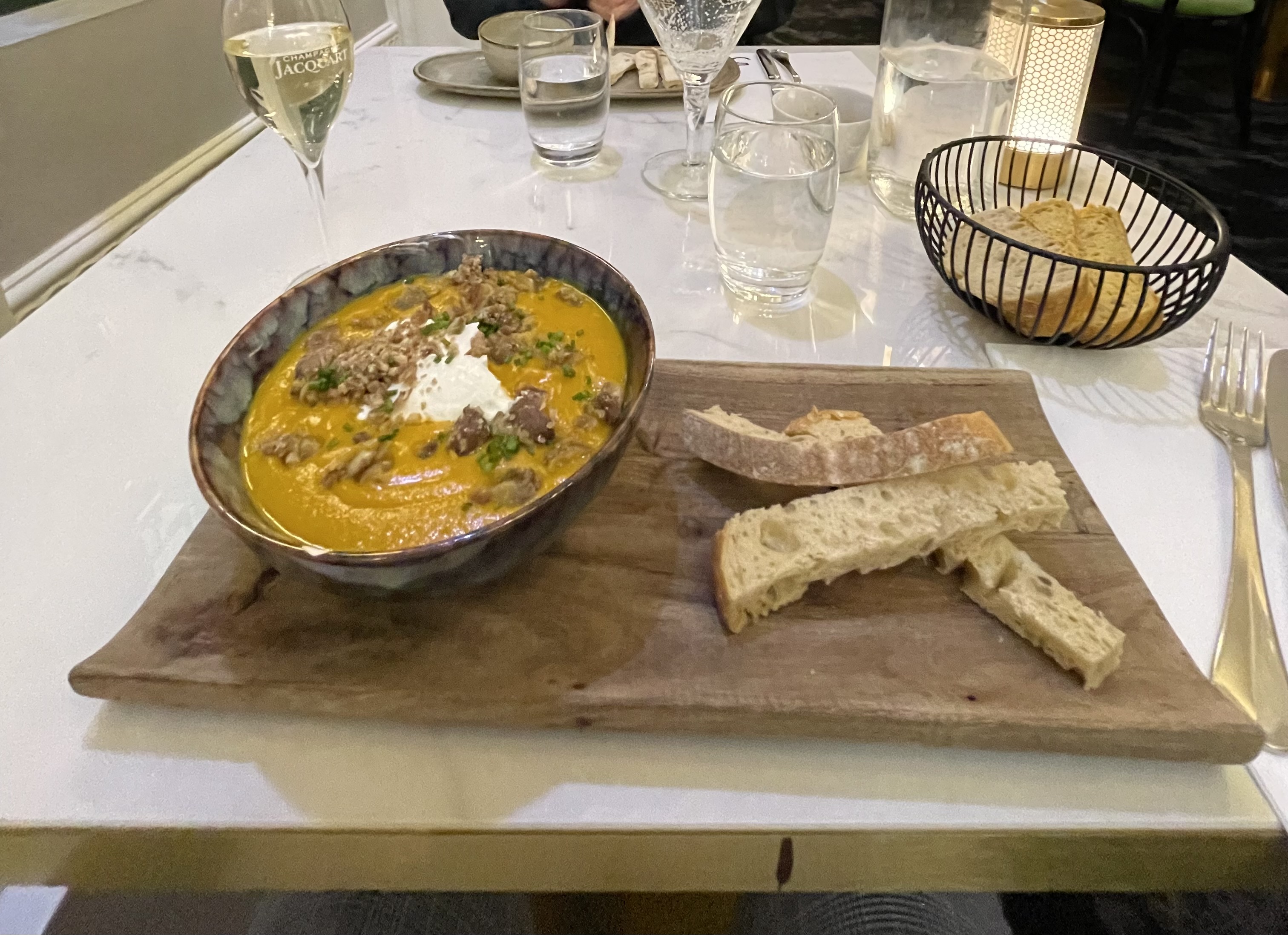 Nous avons passé un excellent moment, petits bémols sur quelques petites choses niveau dessert mais pour le reste formidable et superbe découverte pour l'entrée Saint Marcellin rôti vraiment excellent et généreux sur la truffe. Je recommande malgré la déception du millefeuille