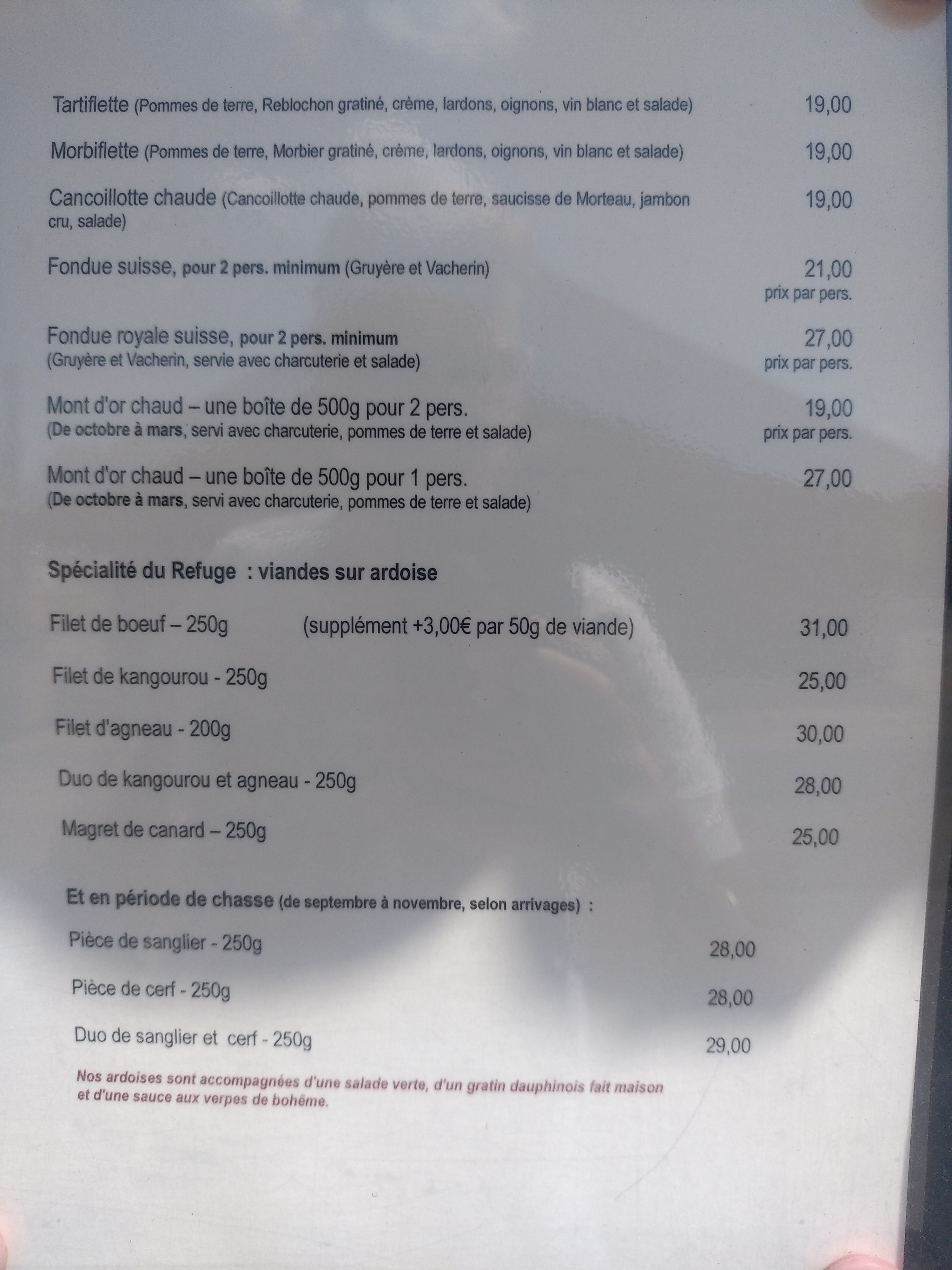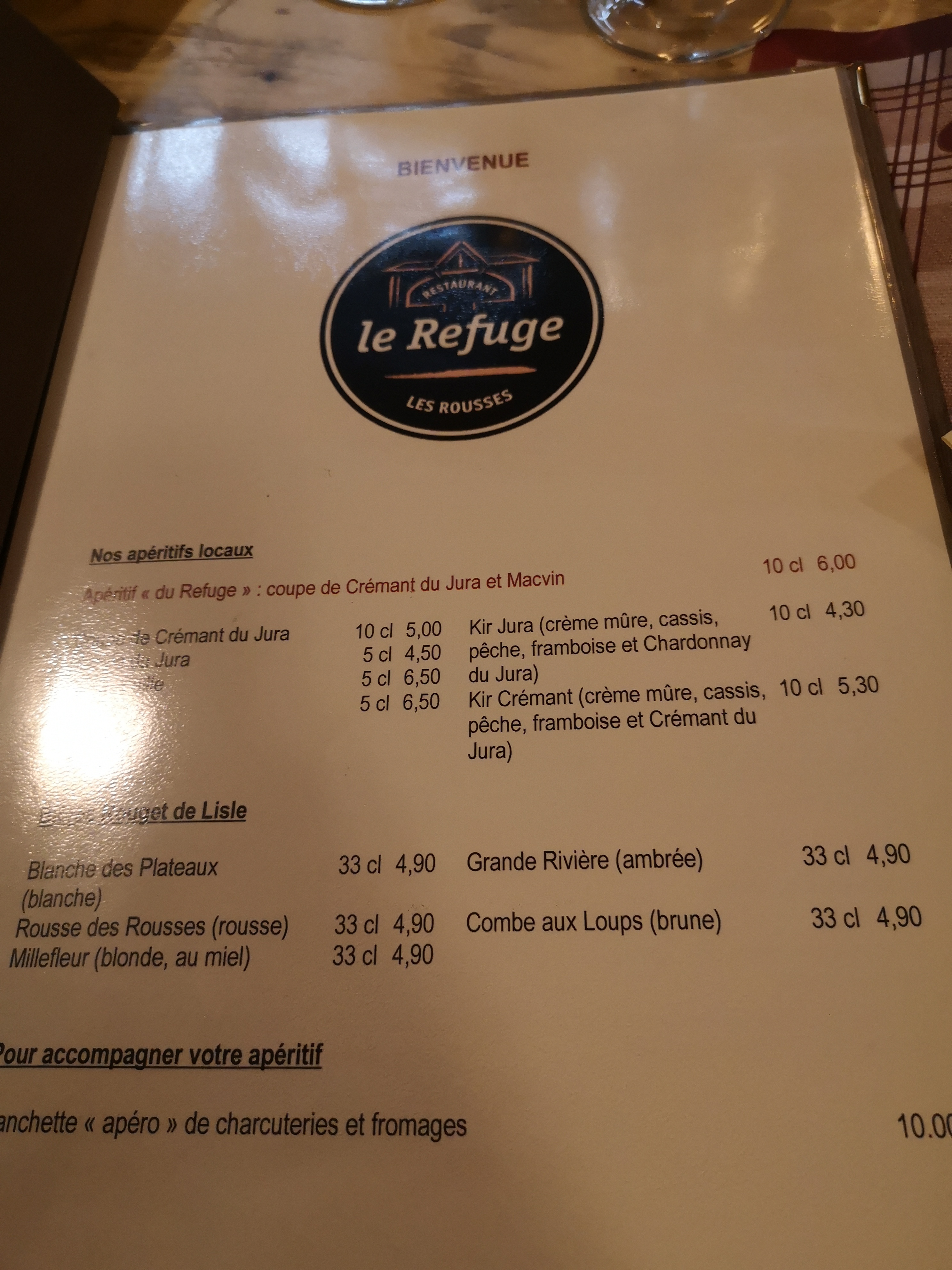 Restaurant à recommander, le duo kangourou/agneau exceptionnel et copieux. Le poisson du jour à ne pas ignorer... Les desserts finissent le repas. Le tout accompagné avec un Arbois rouge. Déjeuner parfait. Le cadre du Refuge très agréable et convivial, comme le personnel.... Bonne adresse.