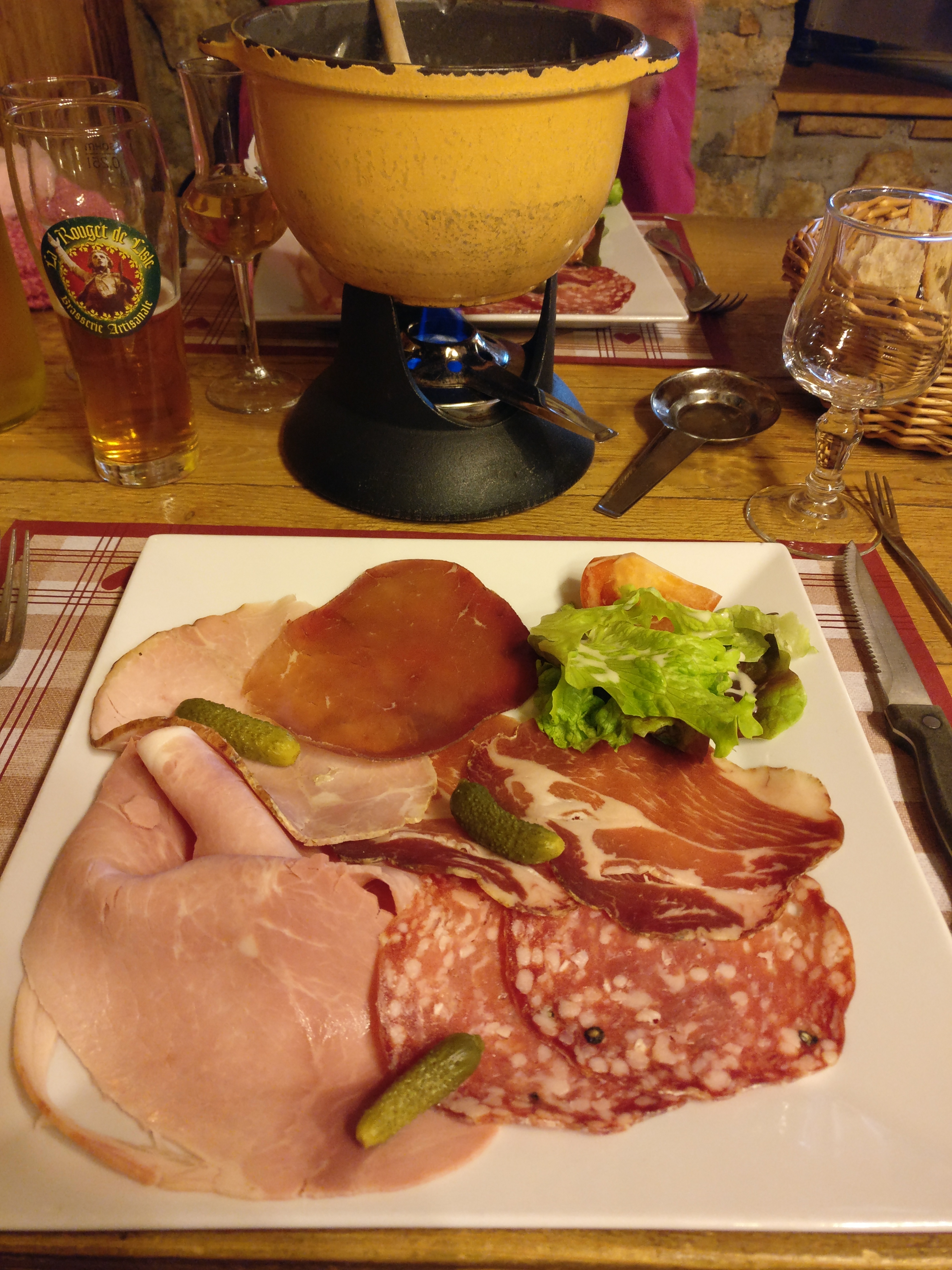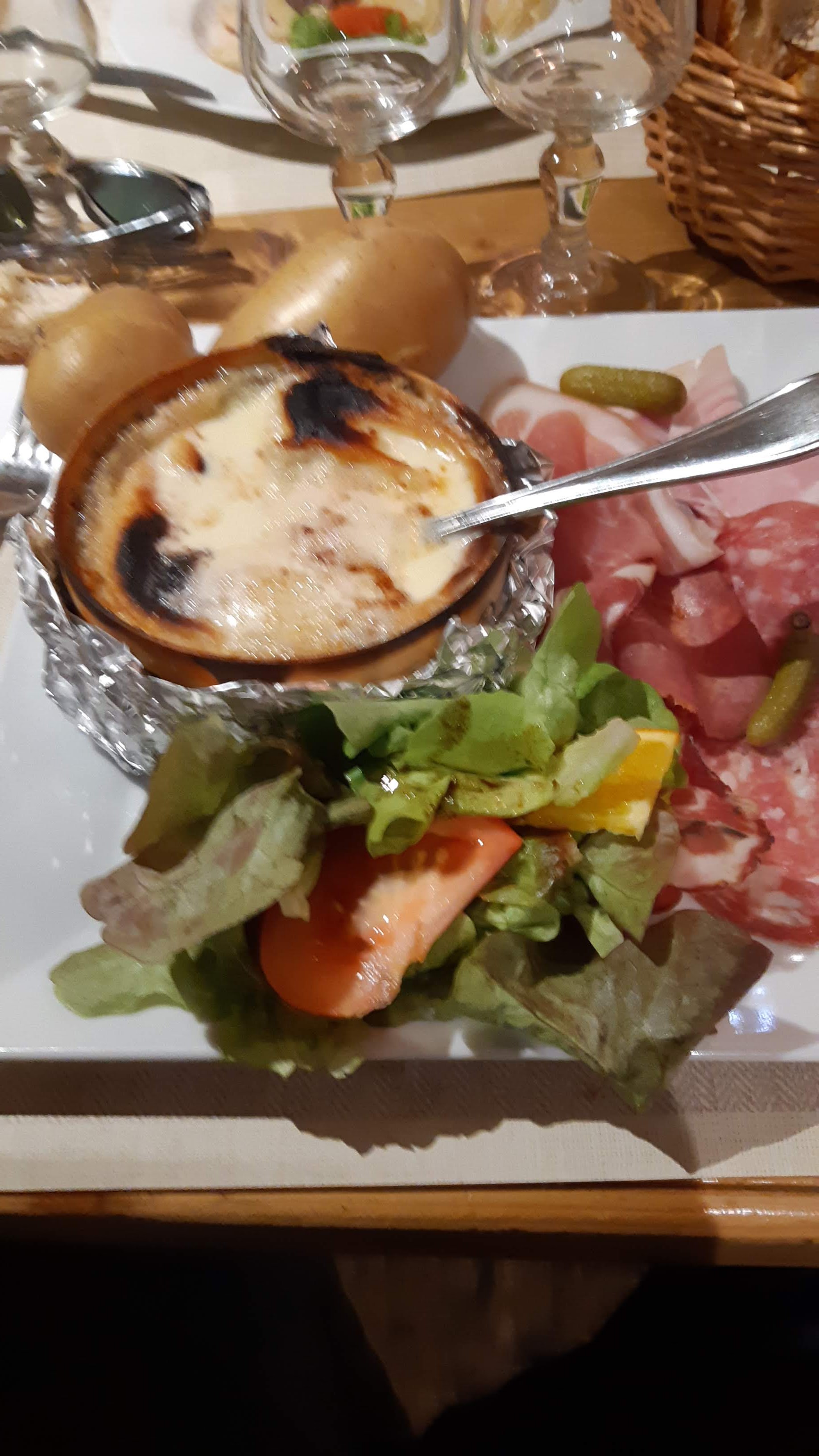Fondue royale très bonne: petit bémol sur la charcuterie qui pourrait être plus élaborée. Service sympathique et chaleureux. Desserts très bons. Je recommande