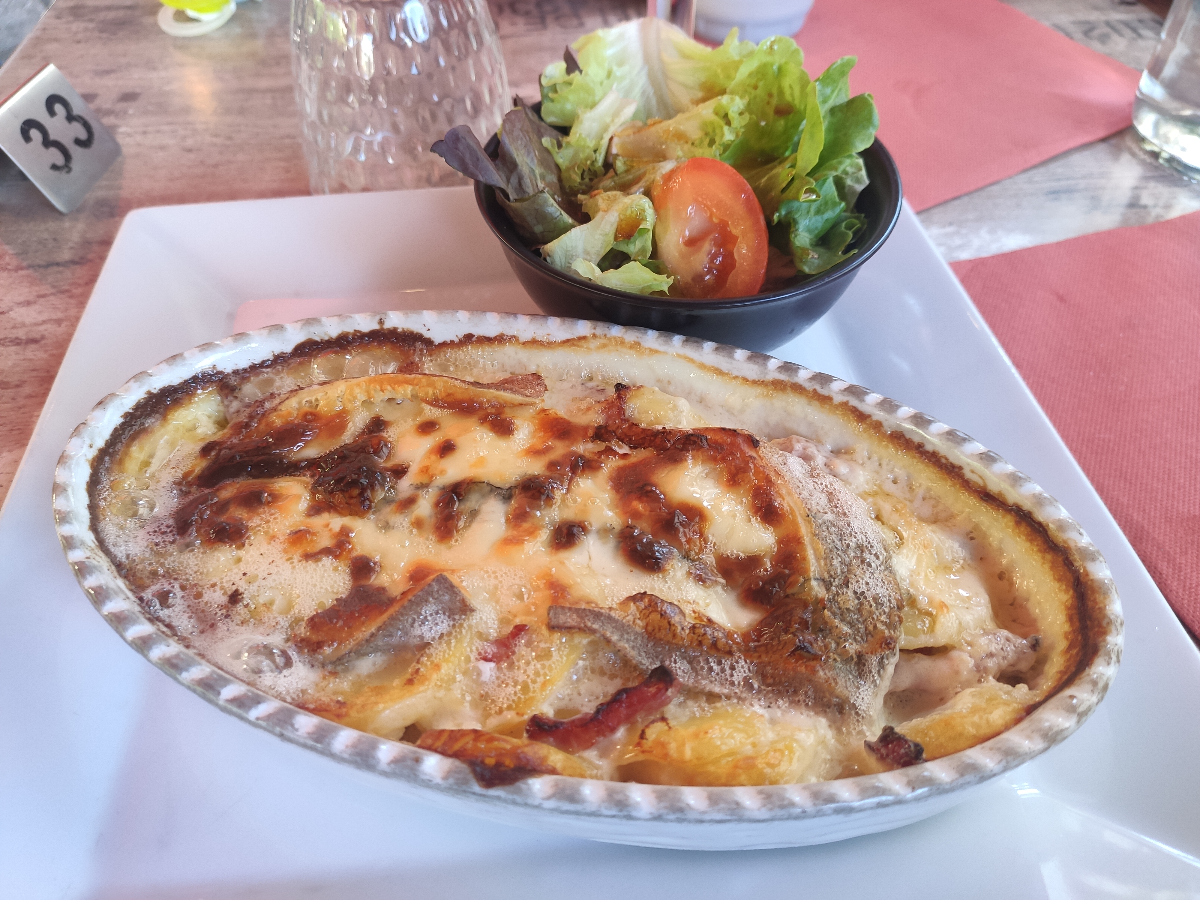 Bonjour, La tartiflette ne correspond pas au cadre du restaurant. Déçu pas la qualité et le goût, on dirait un plat préparé en avance un plat réchauffé industriel. La morbiflette c'est pareil... Justement j'ai choisi cette endroit pour le style décor montage et sa cuisine traditionnelle jurassienne. Je ne suis pas cuisinier, mais je ne pourrai pas présenter des plats comme ça à mes clients. Soyez généreux plus de lardons Plus de goût au fromage, plus en quantité on ne risque pas de grossir. On évite les pommes de terre sans goût. J'ajoute les desserts des boules de glace, bien... Bon accueil, bien placé... C'est dommage de baisser la qualité des plats surtout pour le plaisir de la gastronomie de la région. Très agréable chalet... Cordialement,