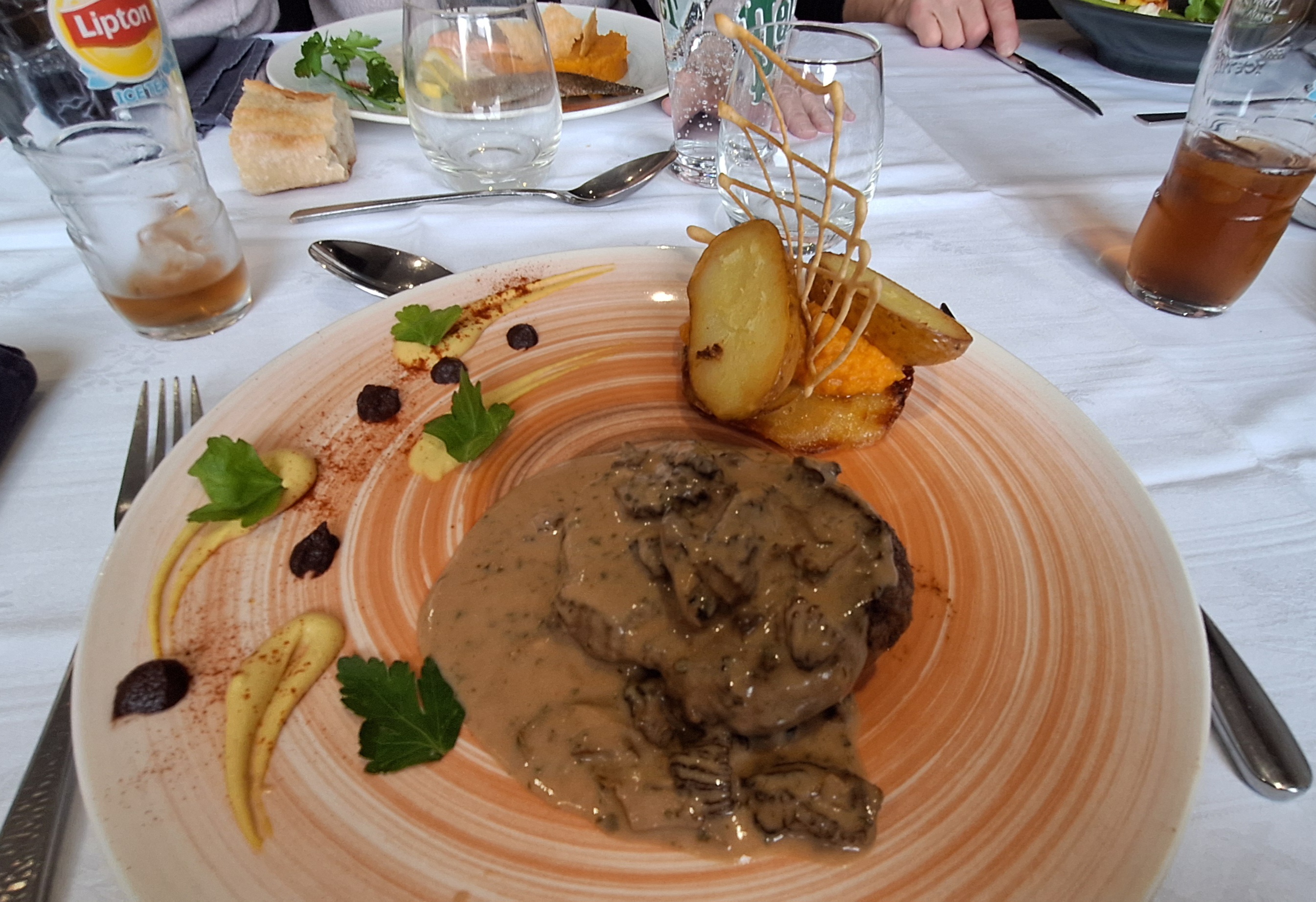 Euh ! Comment dire, des pommes de terres sentent le réchauffé, manques de saveurs, une poitrine caoutchouc! un mille feuille sans saveurs! Sincèrement j’ai mangé bien meilleur pour moins cher. Et une étoile pour tenter de rétablir la vérité! Vraiment déçu, sans oublié que la réservation pour 4, avait semble-t-il été oubliée puisque seule une table préparée pour 3 restait dispo! Il faut revoir beaucoup de chose!
