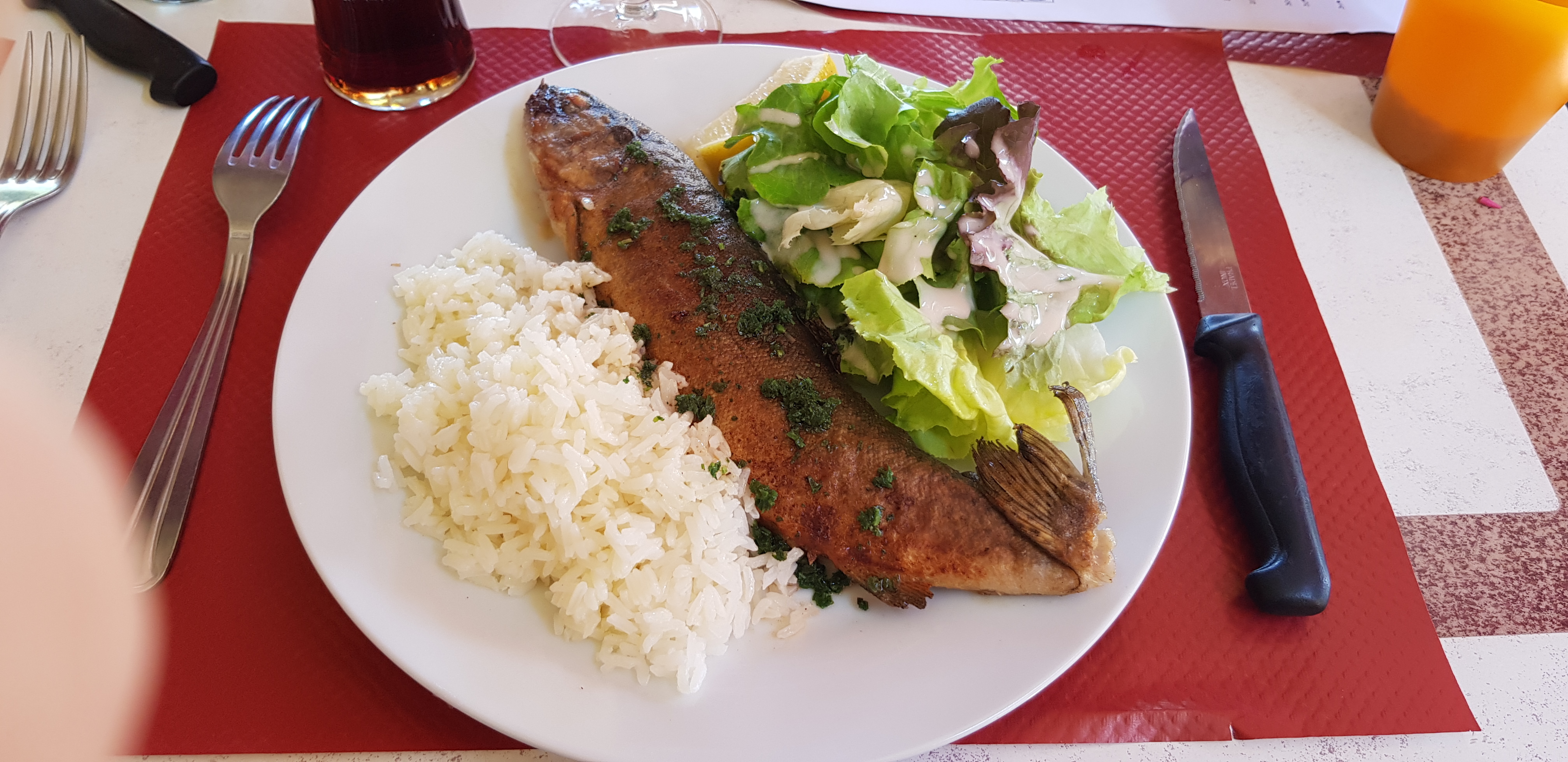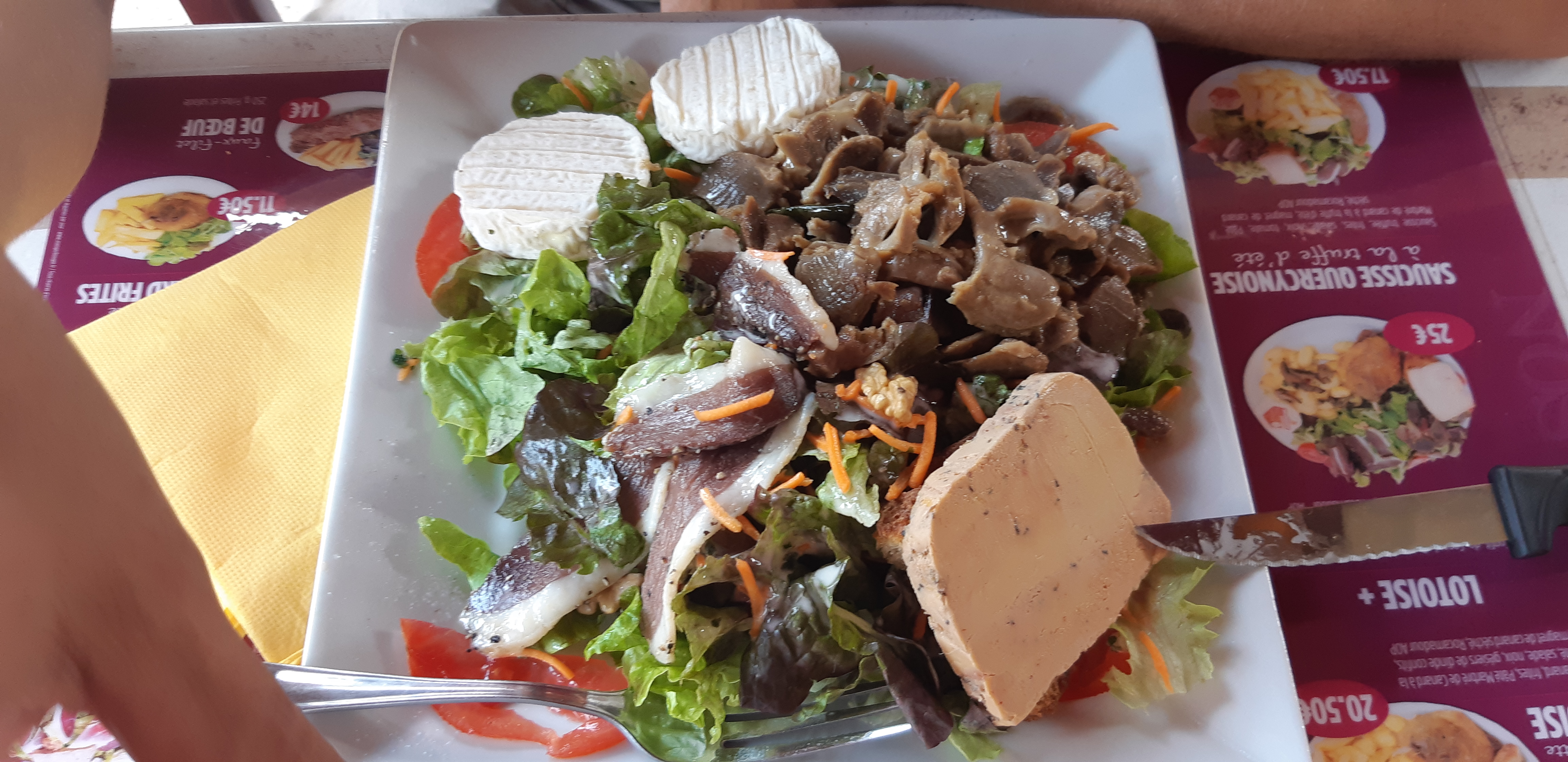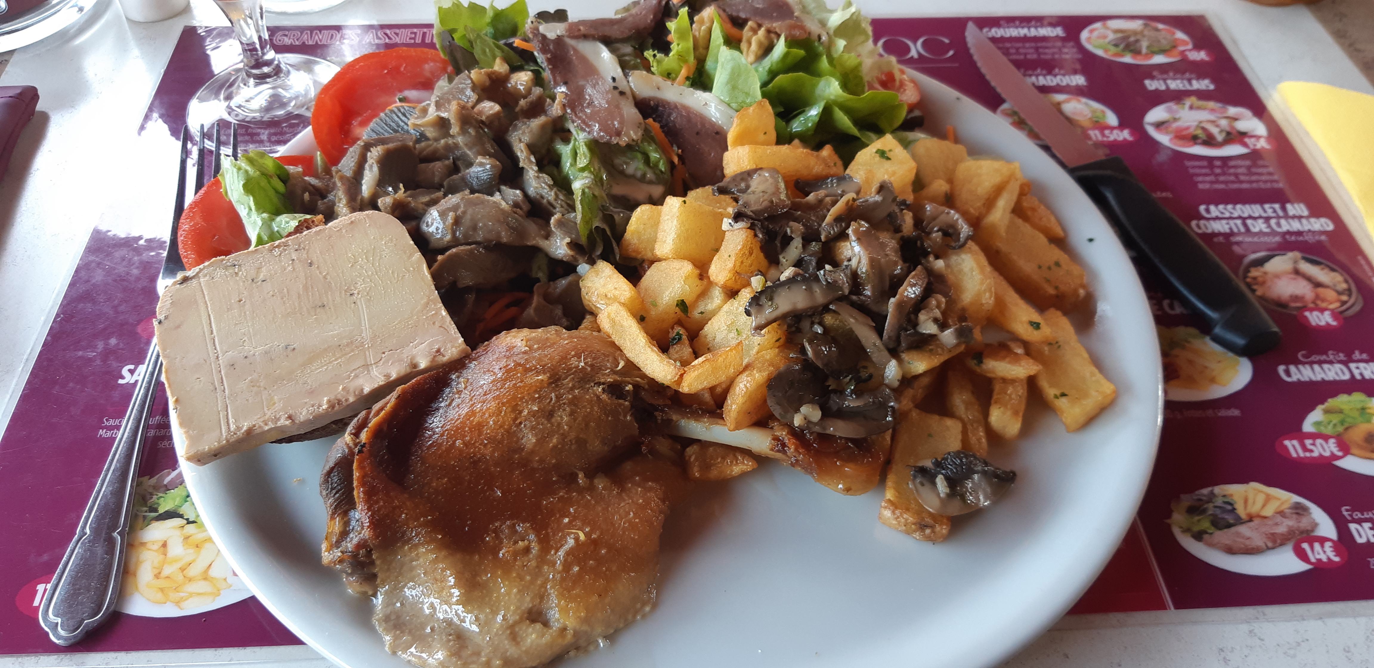 Repas délicieux, nous avions pris qu une grande assiette perigourdine à 22 euros très copieux,la terrasse est spacieuse et ombragé ,passe sanitaire obligatoire mieux vaut réserver