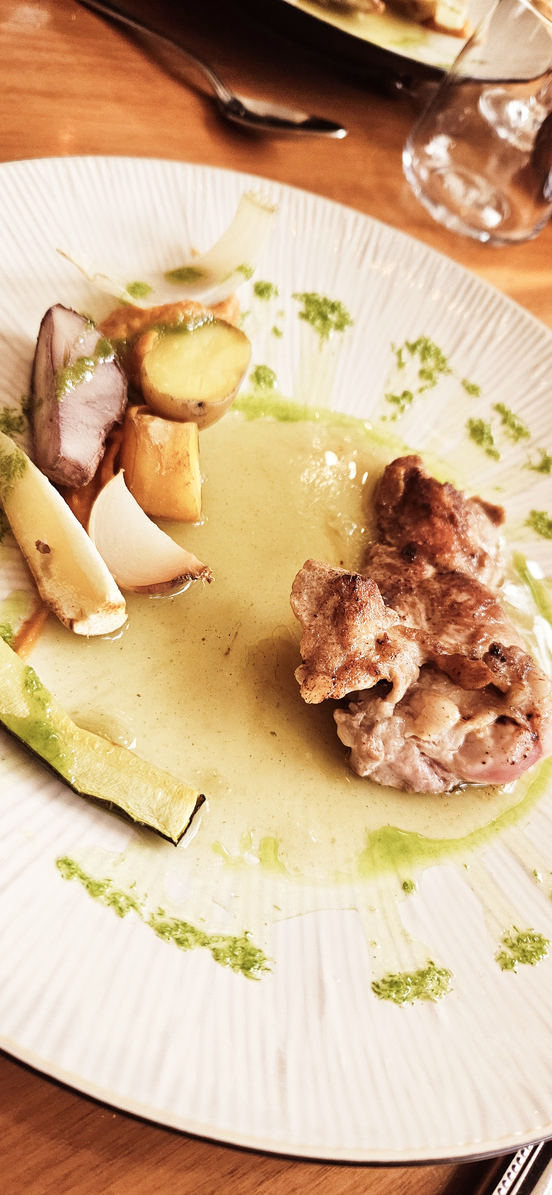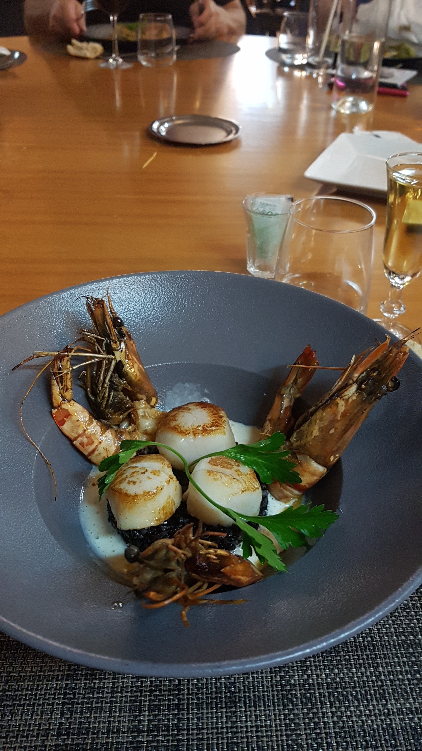 Parfait : cuisine fine et recherchée. Assiette bien présentée et suffisamment copieuse. Personnel très agréable et discret à la fois. Cadre accueillant. Bref très bonne adresse que je recommande.