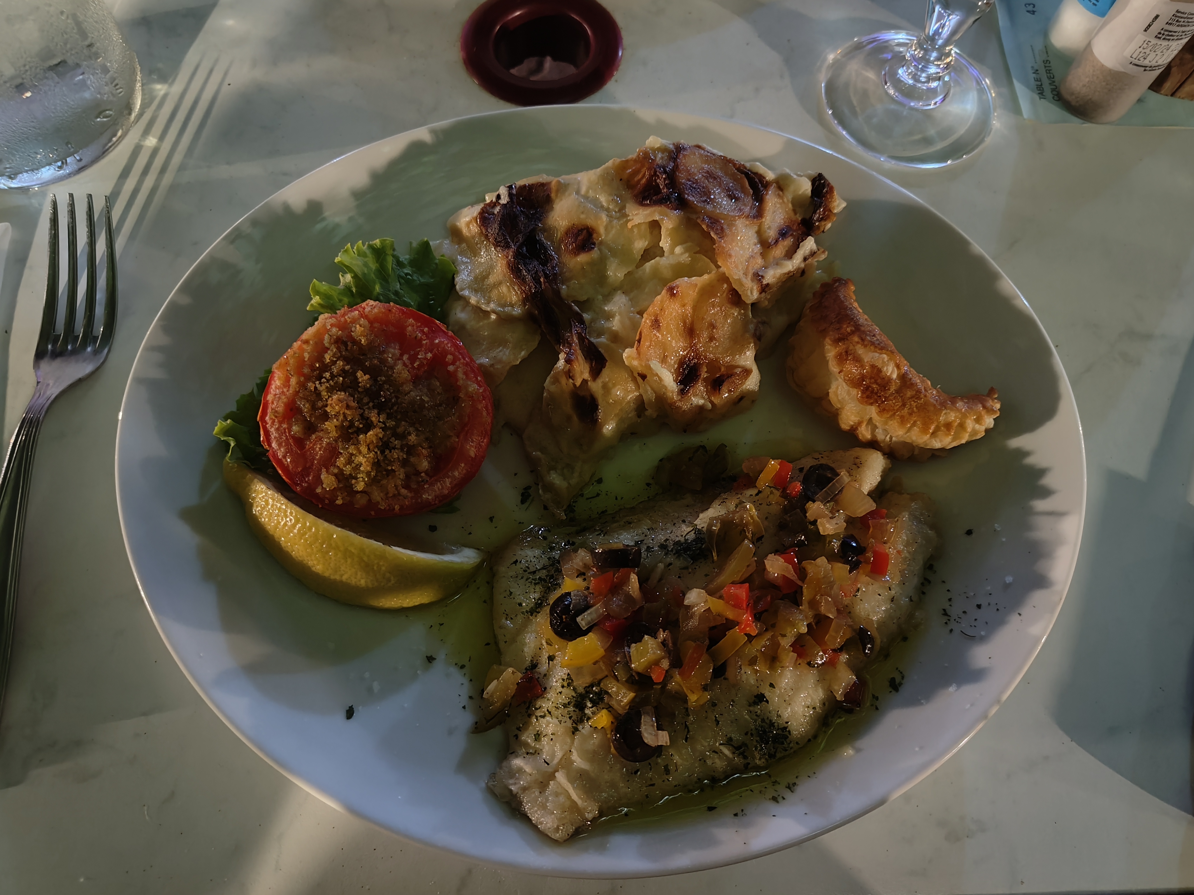 Très bon accueil , personnel serviable , cadre agréable . Les plats bien présentés . En plus , ils demandent si on en veut à nouveau . Nous étions un groupe de 40 personnes . Le menu était compris dans le pack-voyage , mais ils m'ont échangé un plat que je ne mangeais pas sans problème . À retourner .