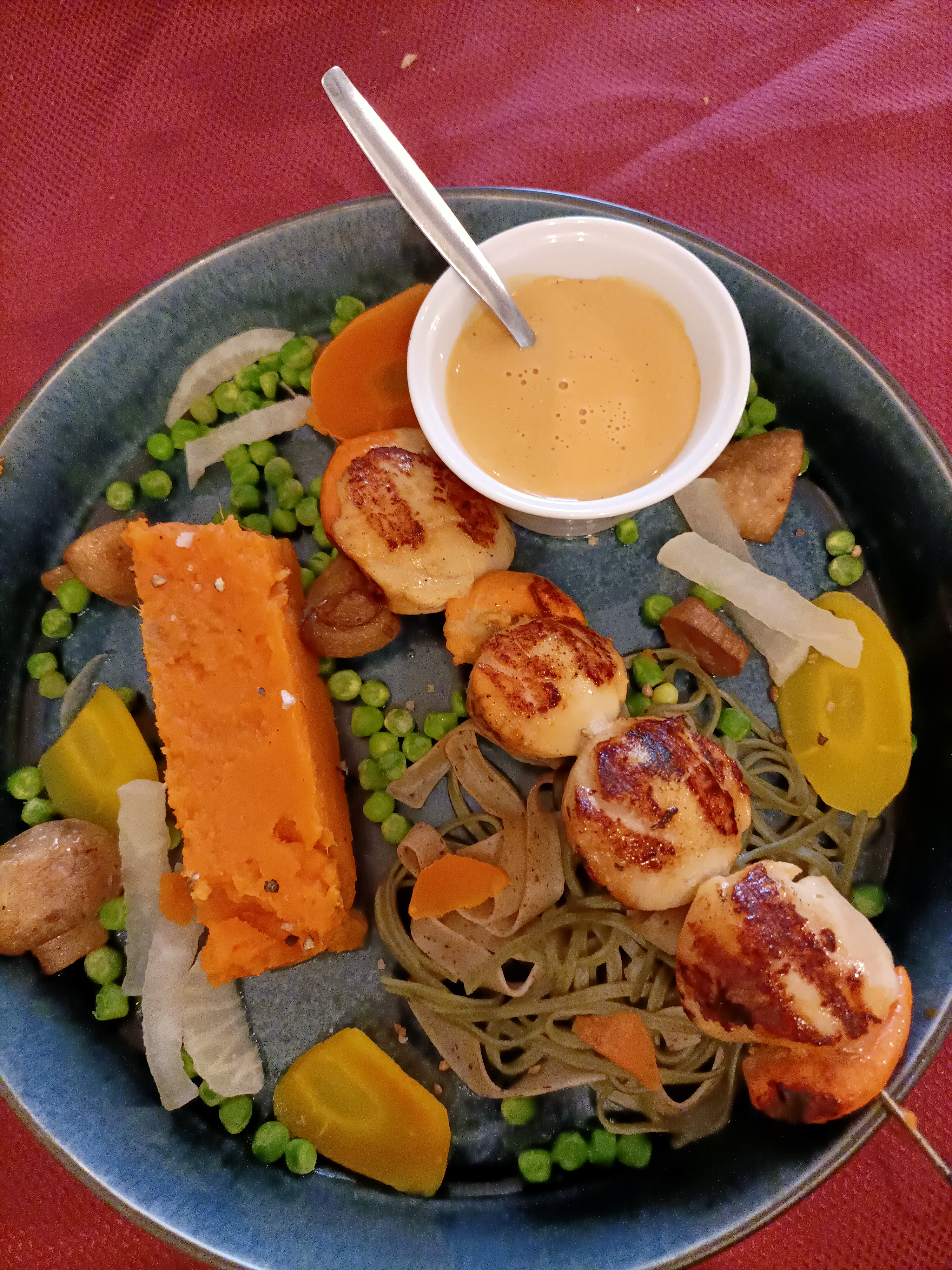 Nous avons mangé en famille dans ce charmant petit restaurant très agréable. La cuisine était raffinée et les st Jacques sont fraîches et très bonne. Le personnel est à nos petits soins.