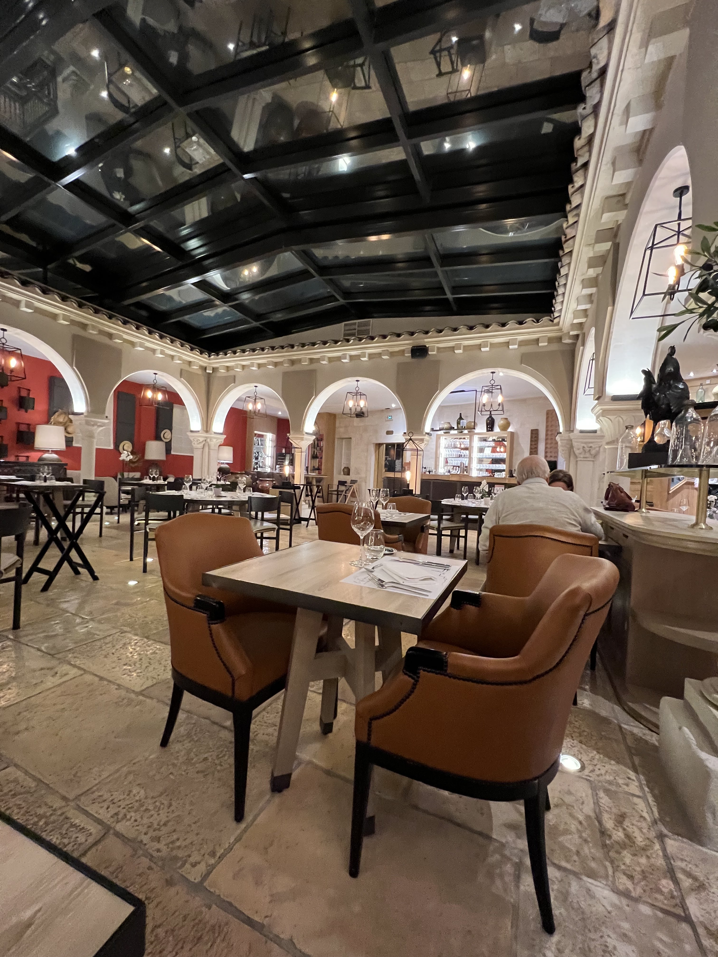 Le restaurant le rempart est dans un cadre magnifique sous une verrière et une belle deco, nous y avons mangé le soir du 23 septembre 2023, nous étions gelées, un froid nous tombait dessus et nous avons été dans l'obligation de manger avec nos anorak toutes les cinq, et comment apprecie un repas quand vous êtes gelée : impossible, après renseignement auprès d'une serveuse c'est a cause de la verrières une autre il n'y a pas de clim et comment expliquer cet air froid qui nous descend dessus ????une autre en me déplaçant vers le boîtier de la climatisation me dit elle est réglé a 32 degre et je suis passée devant l' accueil pour aller au WC et en passant je lui ai dit vous avez de la chance il fait chaud chez vous et en discutant elle me dit qu'ils ont un problème de climatisation ......on progresse....bref manger dans le froid est insupportable et le service n'est pas à la hauteur, quand aux plats rien de raffiné ou qui sorte des sentiers battus avec des saveurs qui vous donne envie de revenir, Pascale