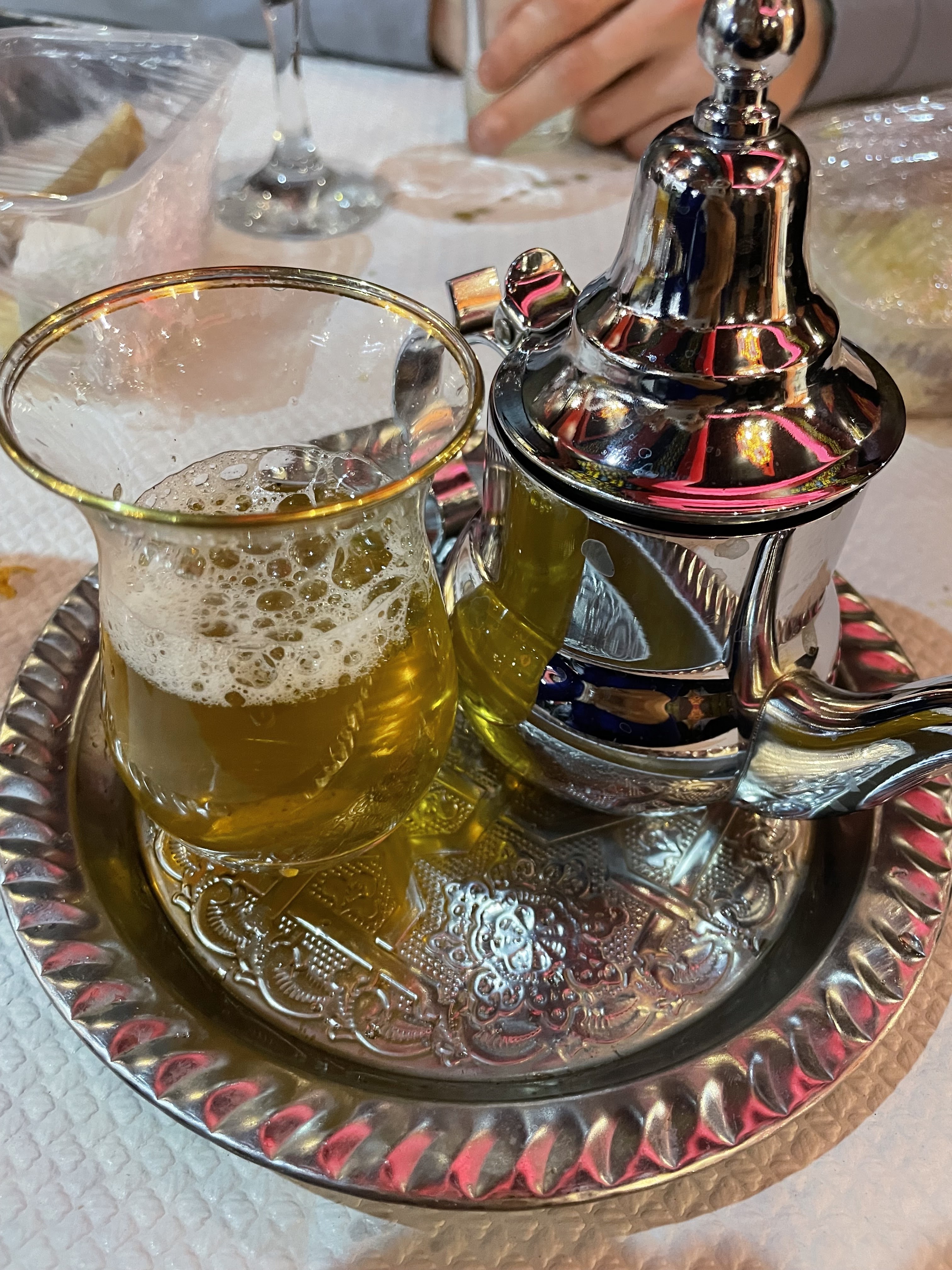 Un accueil chaleureux Musique et décor sont bien présents pour nous faire voyager le temps d'un repas typique copieux et succulent Et pour finaliser un thé Préparé devant vous et servis dans la plus pure tradition Je recommande fortement
