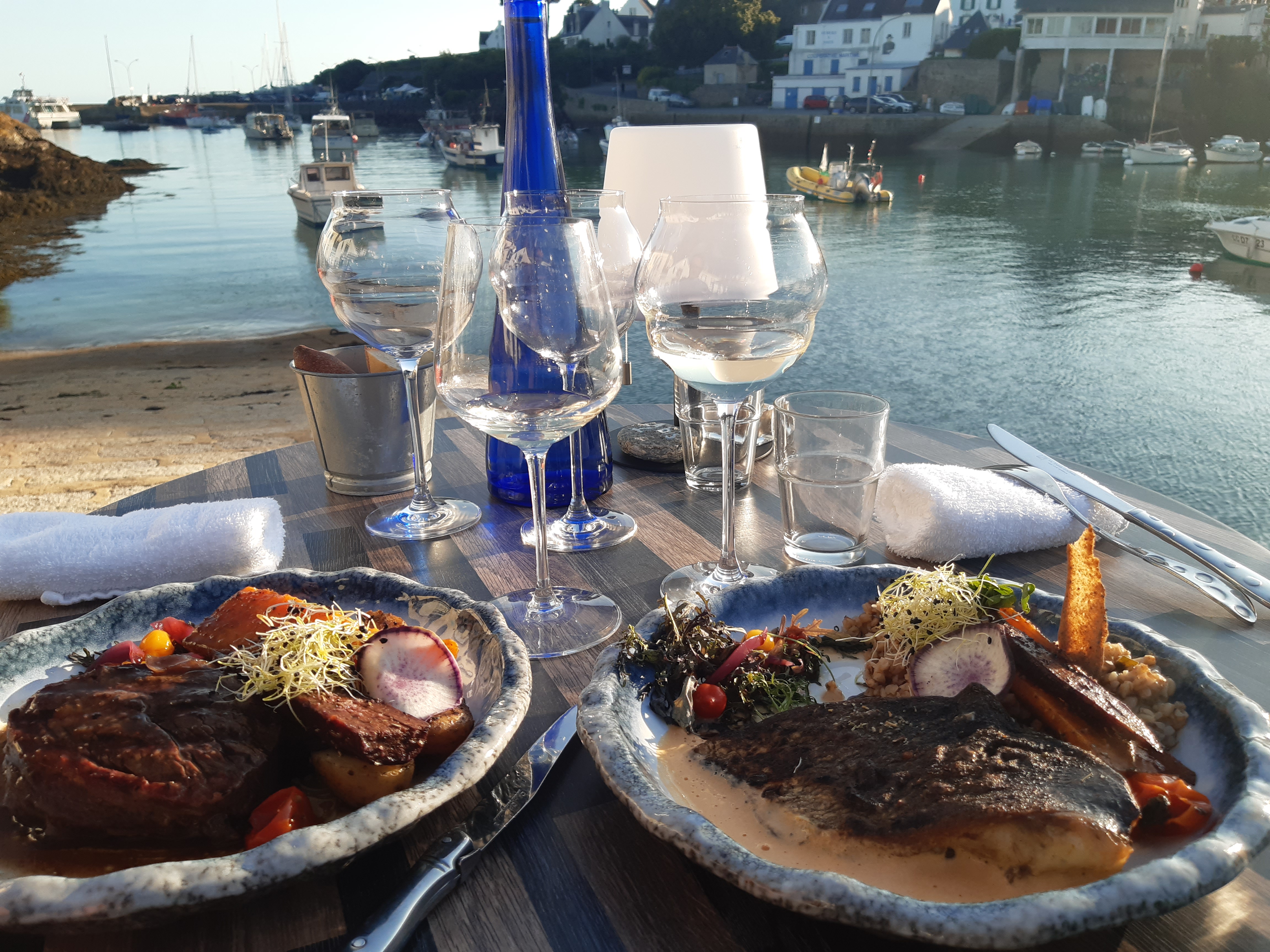 Une cuisine fine, parfumée, élégante et délicieuse. Même le bœuf à point/bien cuit, réussi de main de maître. Une vue imprenable au soleil couchant sur le port de Doëlan. Un service souriant, authentique et attentionné, les allergies prises au sérieux dès l'amuse-bouche -et que nous n'oublierons plus de signaler dès la réservation. Bref un moment gourmand de qualité que nous recommandons.