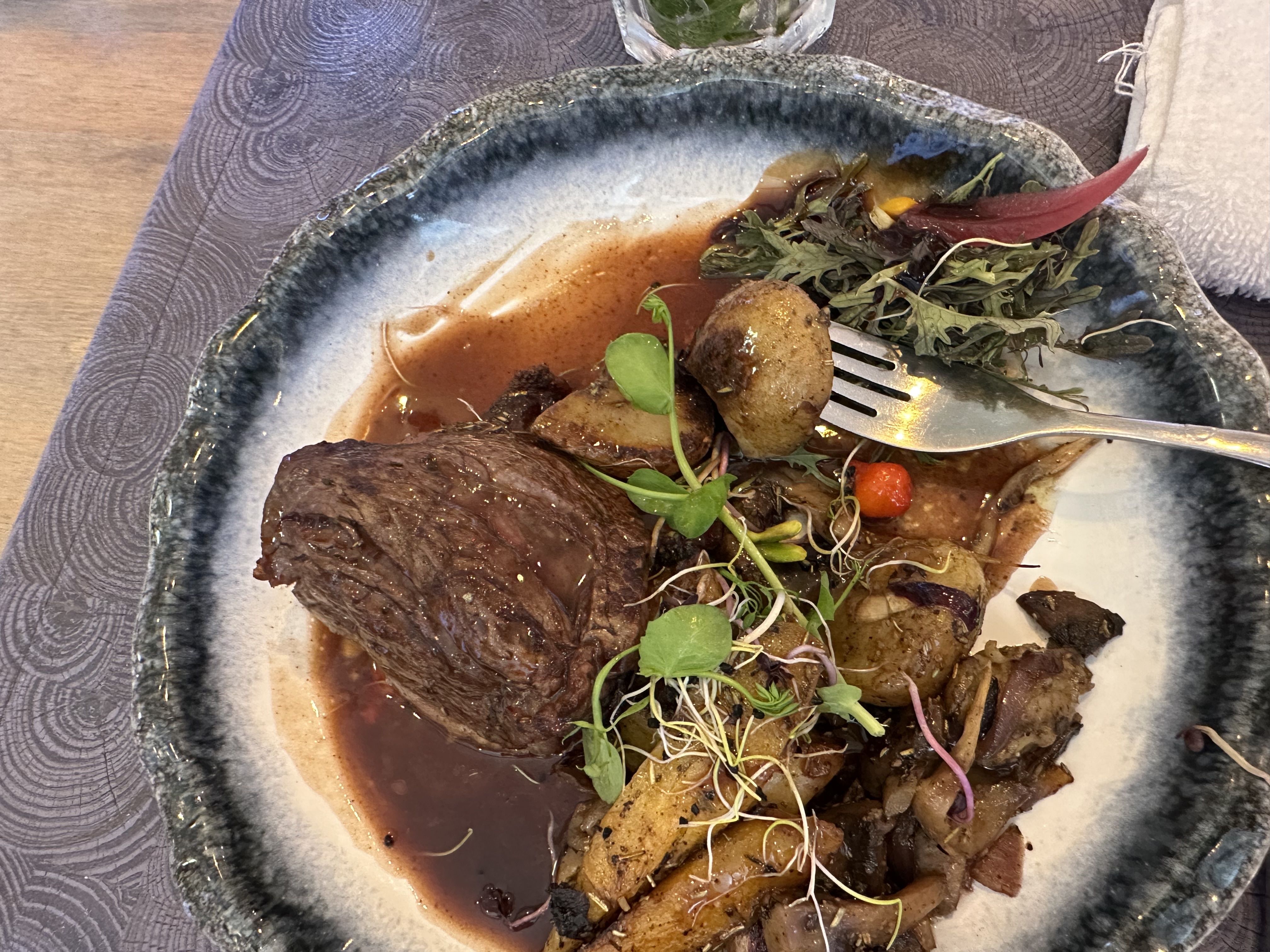 Délicieux et service très sympathique. La viande de qualité et bien cuite, l'assiette végétarienne savoureuse et originale!