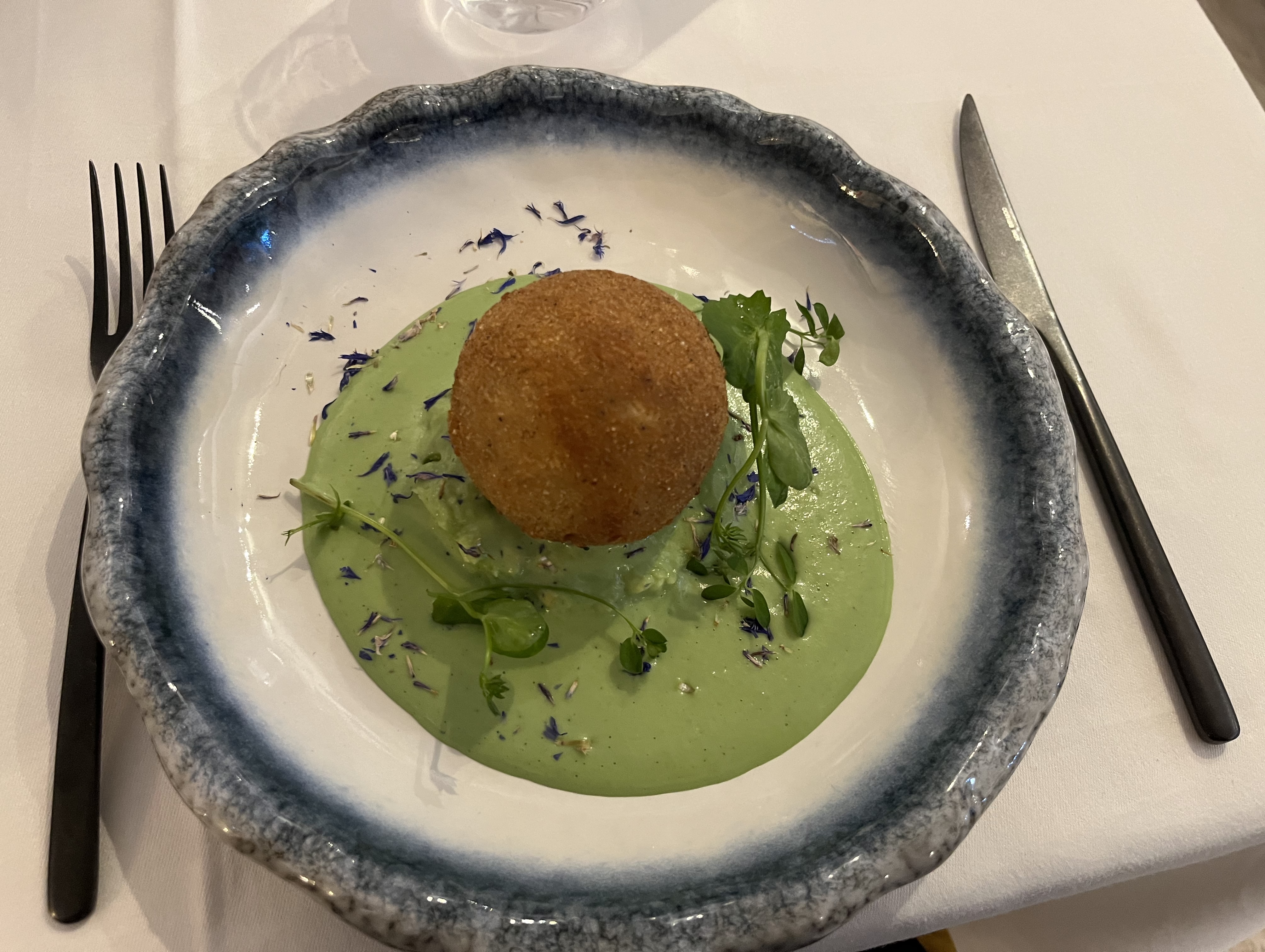 Les mise en bouche sont très bonnes surtout la purée de pommes de terre au roquefort. Les pieds de porcs croustillants très bons également. J'ai pris de la tête de veau sauce gribiche excellente., beaucoup moins craqué sur les desserts...