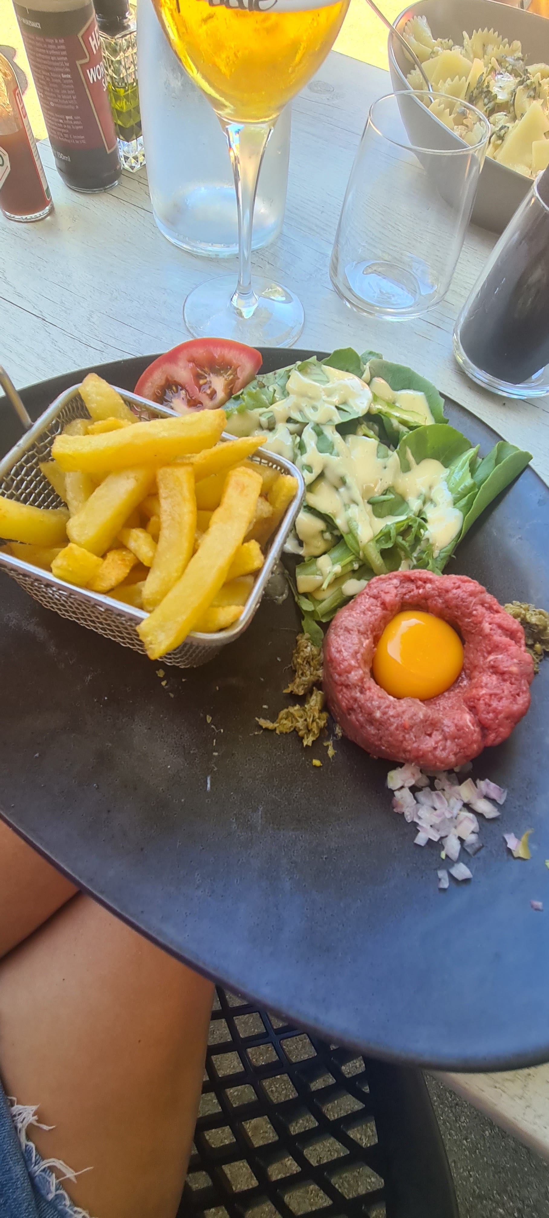 Très agréable (intérieur) avec un service irréprochable et une carte variée. Les plats sont délicieux et personnalisés (tartare).